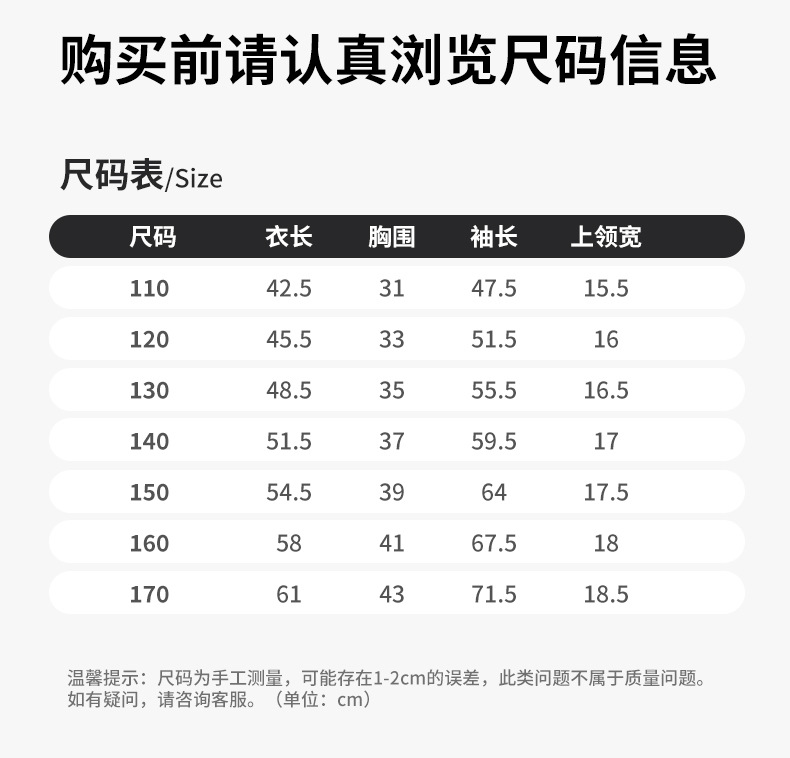 120cm; 130cm; 140cm; 150cm; 160cm; 170cm; 110cm