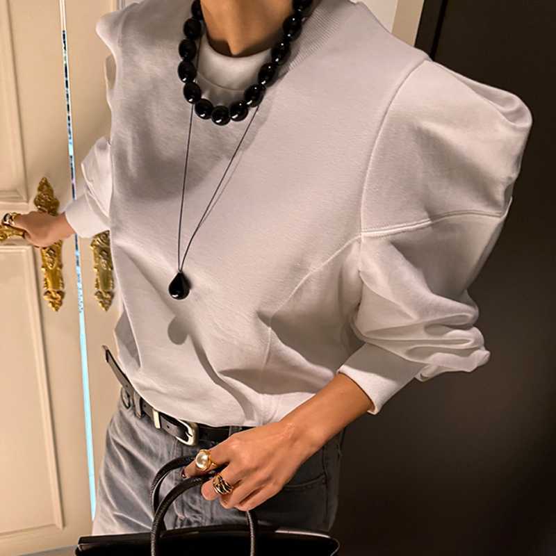 颜色: 白色 黑色 灰色 面料: 100%棉 尺寸 均码: 肩宽35/55含泡芙袖 胸围104 袖长60 衣长60 (手工测量存在1-3CM误差,请悉知)
