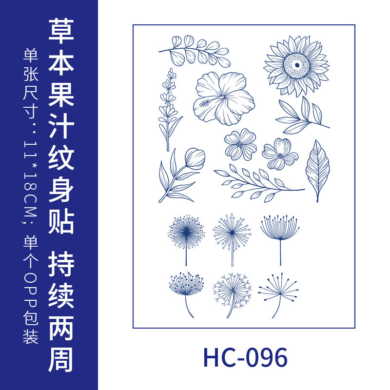 Трансграничная травянистая наклейка для тела Сок полупостоянный высокий смысл цветочный рукав водонепроницаемый цветок дерево мужская стойкая наклейка ins ветер женщина
