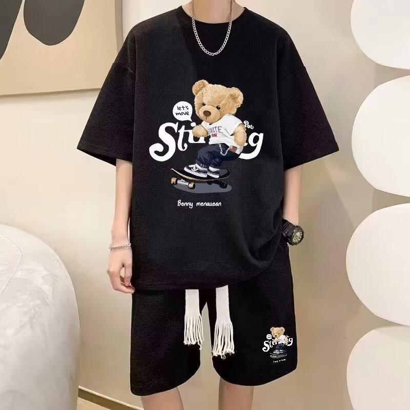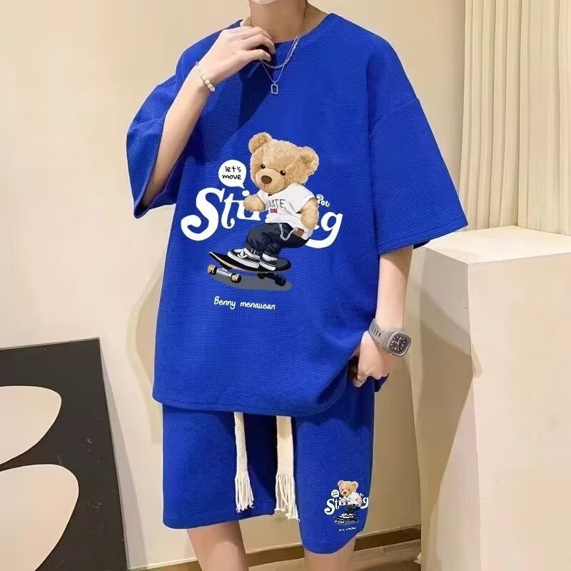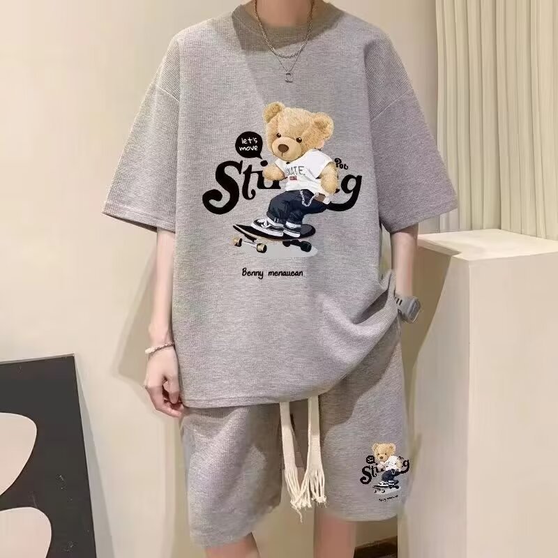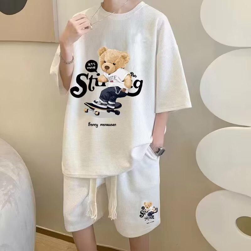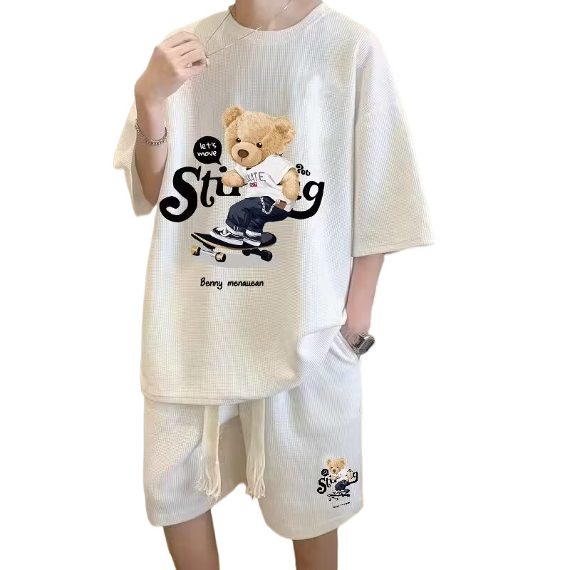 Американский набор вафли мужской летний новый стиль прилива с короткими рукавами в стиле Гонконга