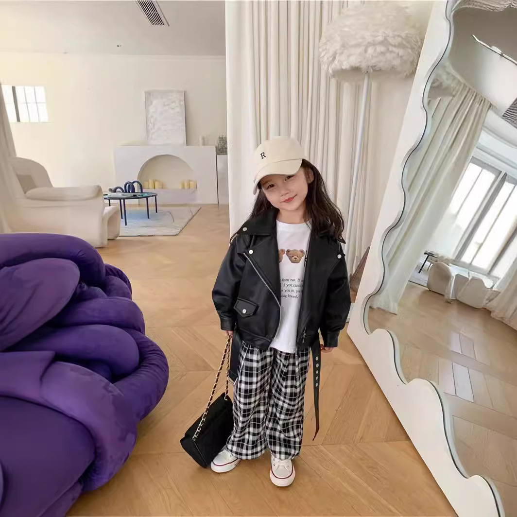 Весна и осень 2024, новые детские короткие куртки из искусственной кожи для мальчиков и девочек, уличные модные брендовые кожаные куртки, детские кожаные куртки с лацканами