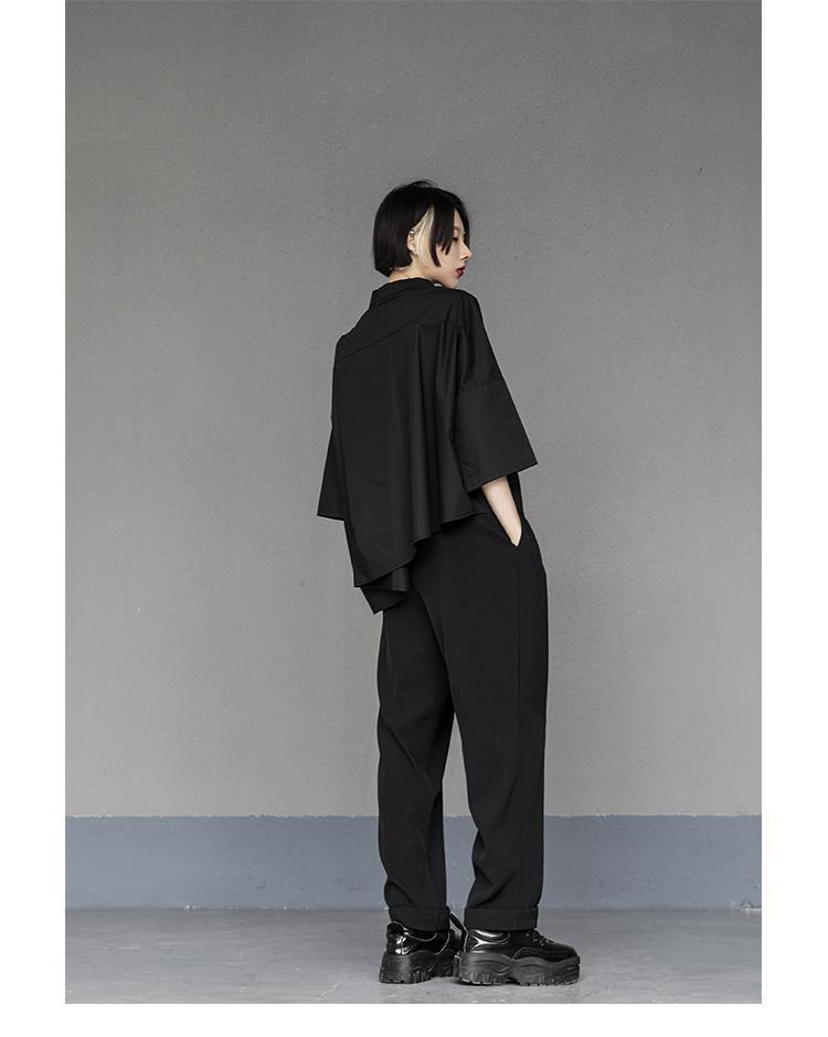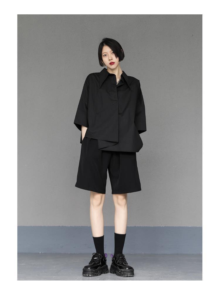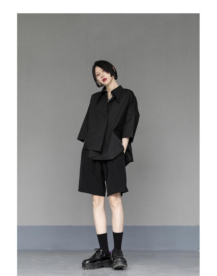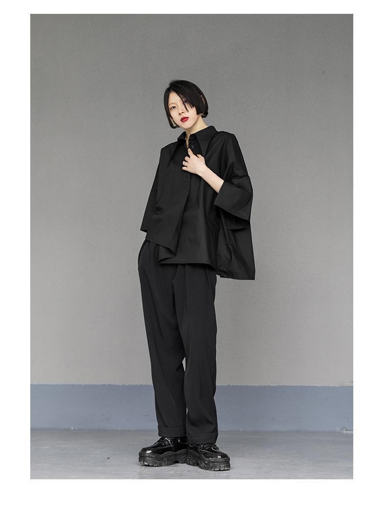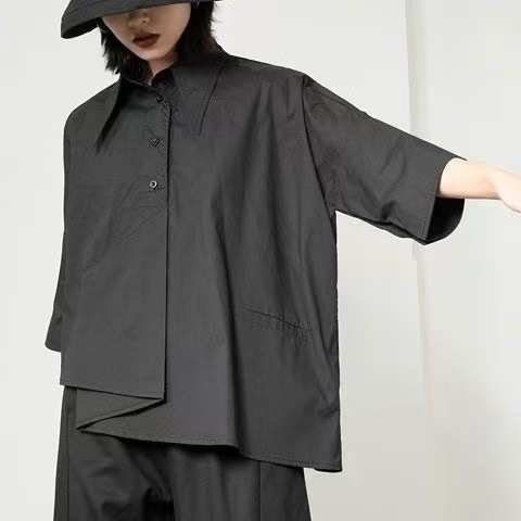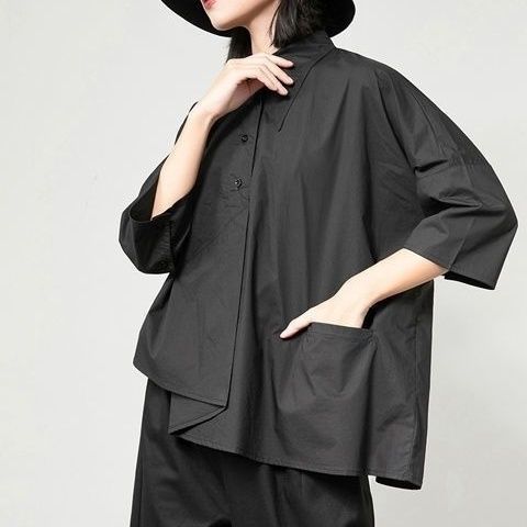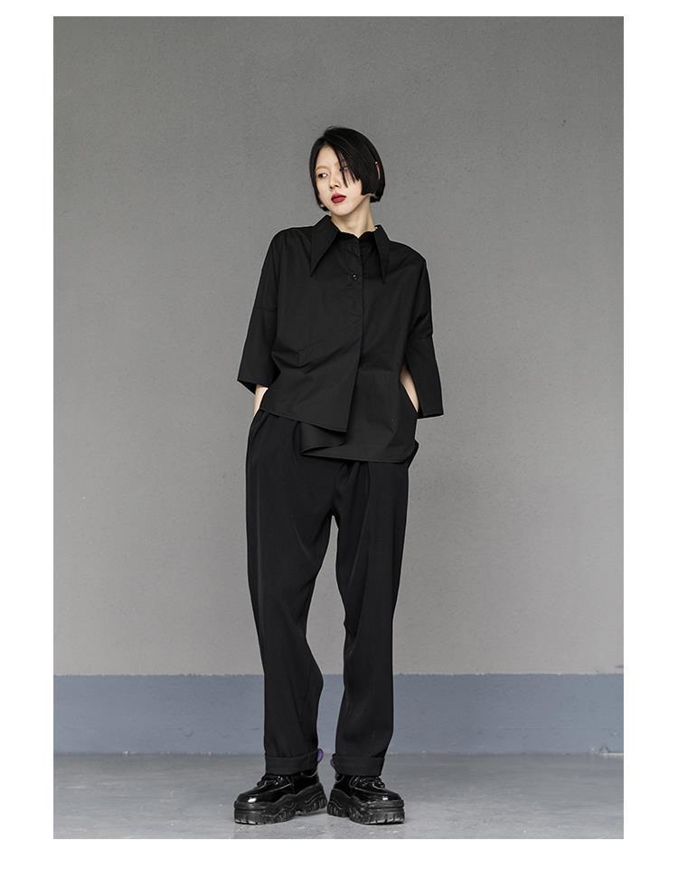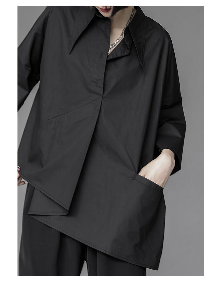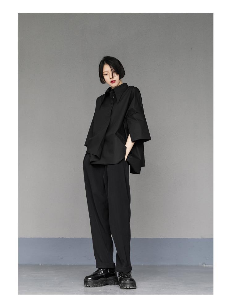 Весенний и летний новый нерегулярный тяжелый рабочий женский лацканный рукав рубашка с семью рукавами тонкий топ темно-bf ветровая рубашка