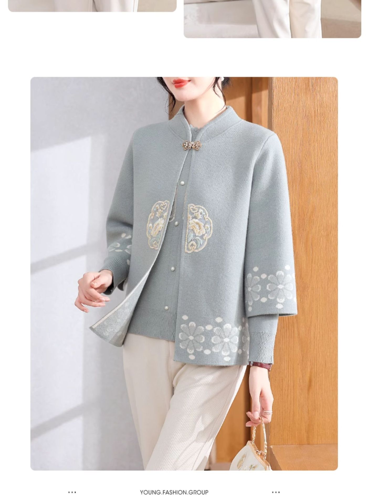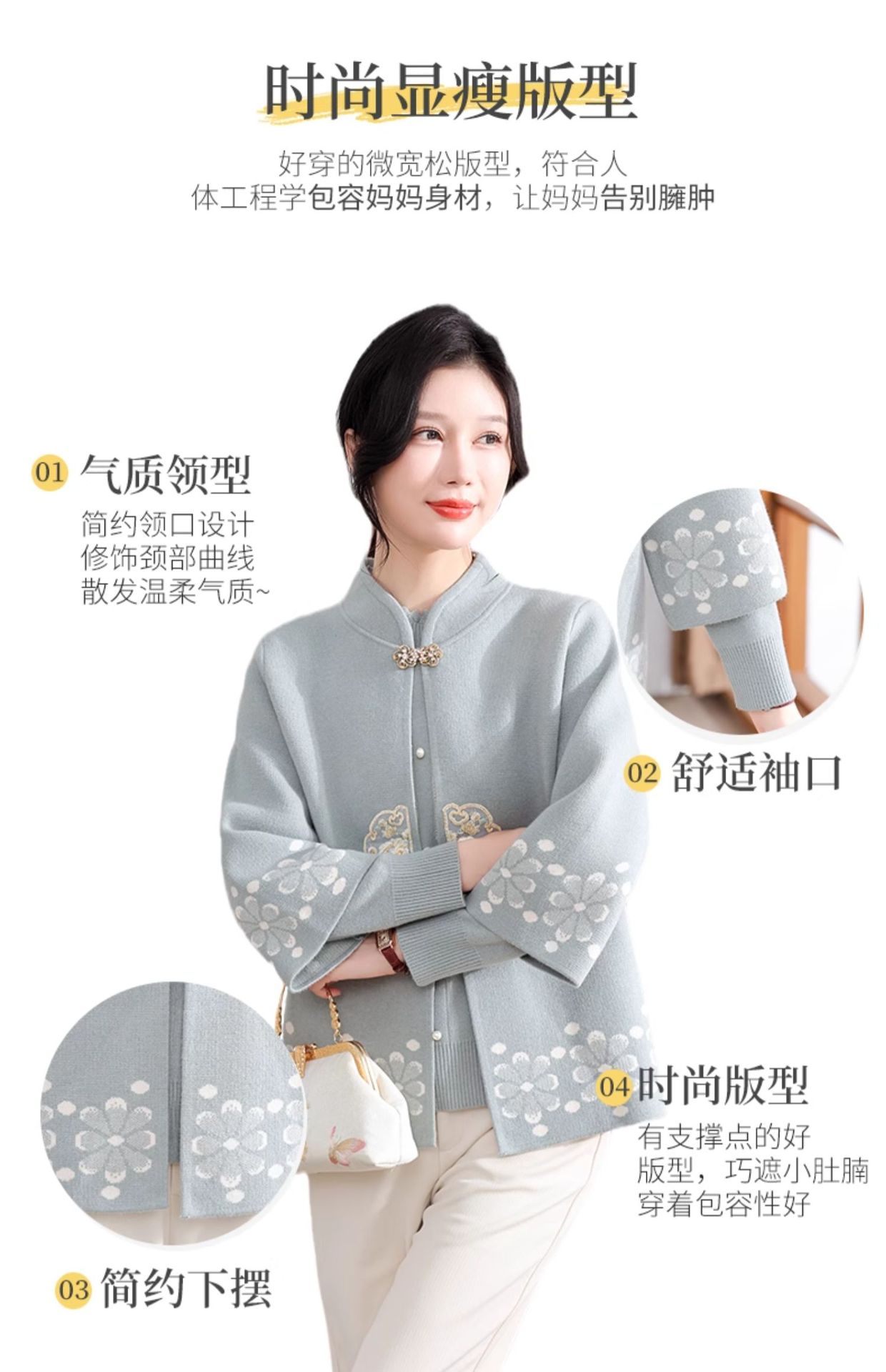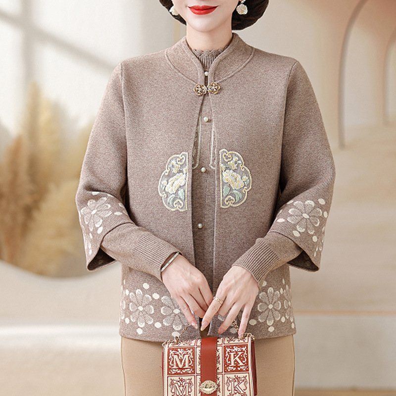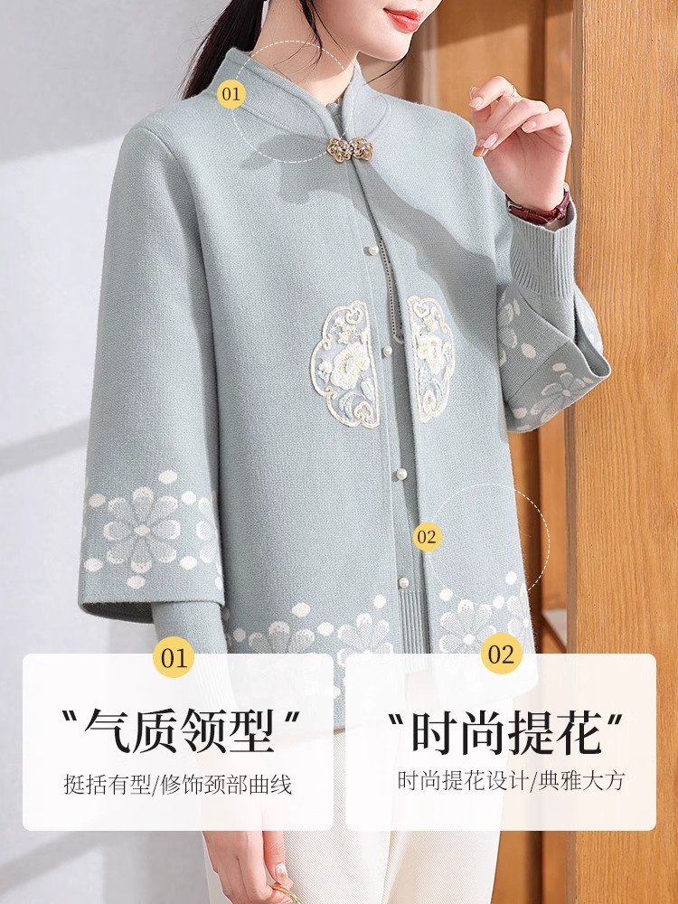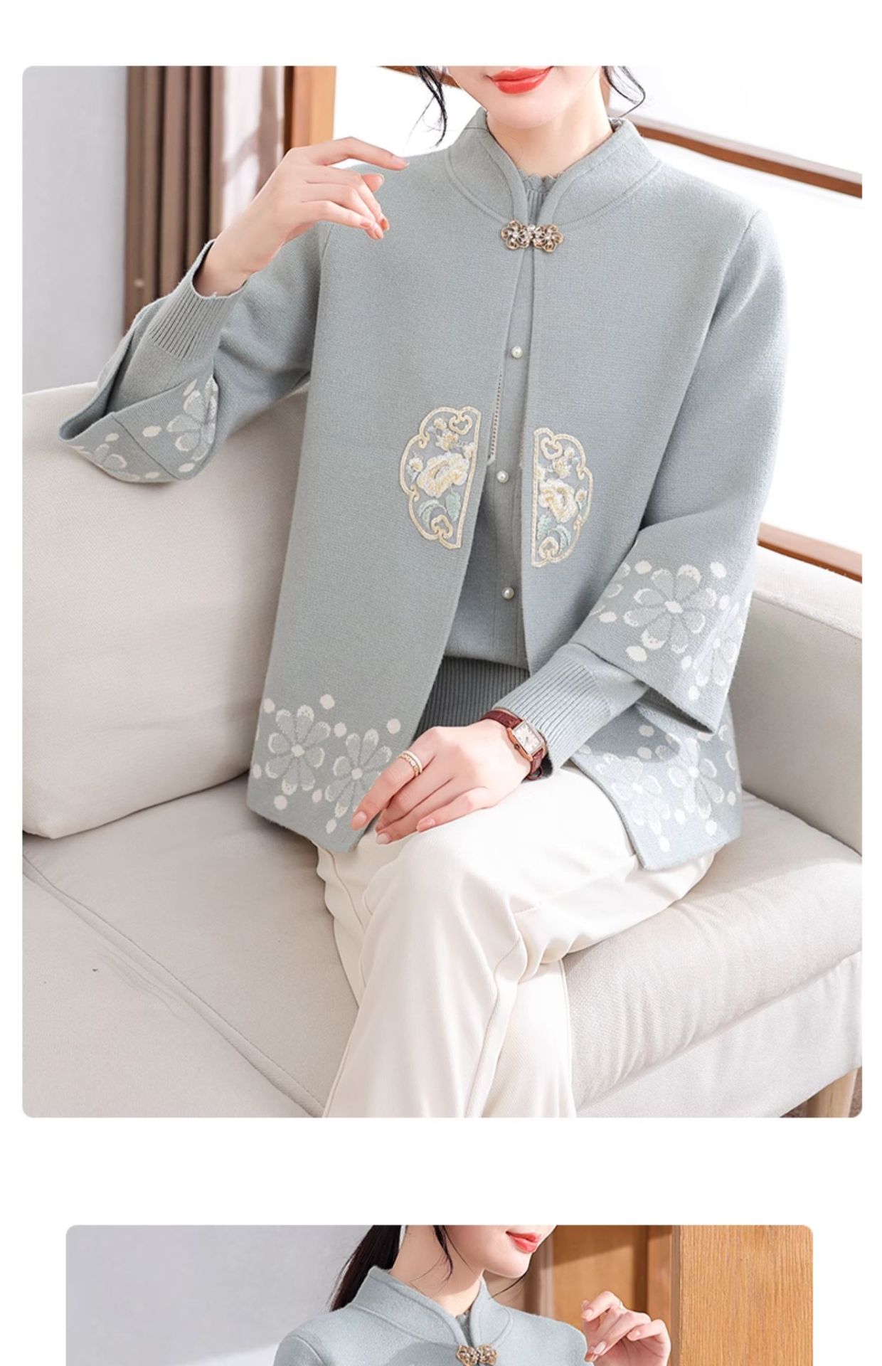 Комплект женской одежды для женщин среднего возраста: вязаный свитер и пальто на весну и осень, новый китайский стиль, национальный модный комплект из двух предметов для женщин среднего и старшего возраста.