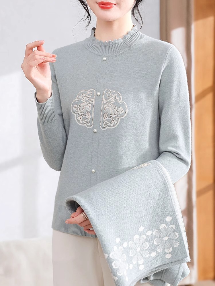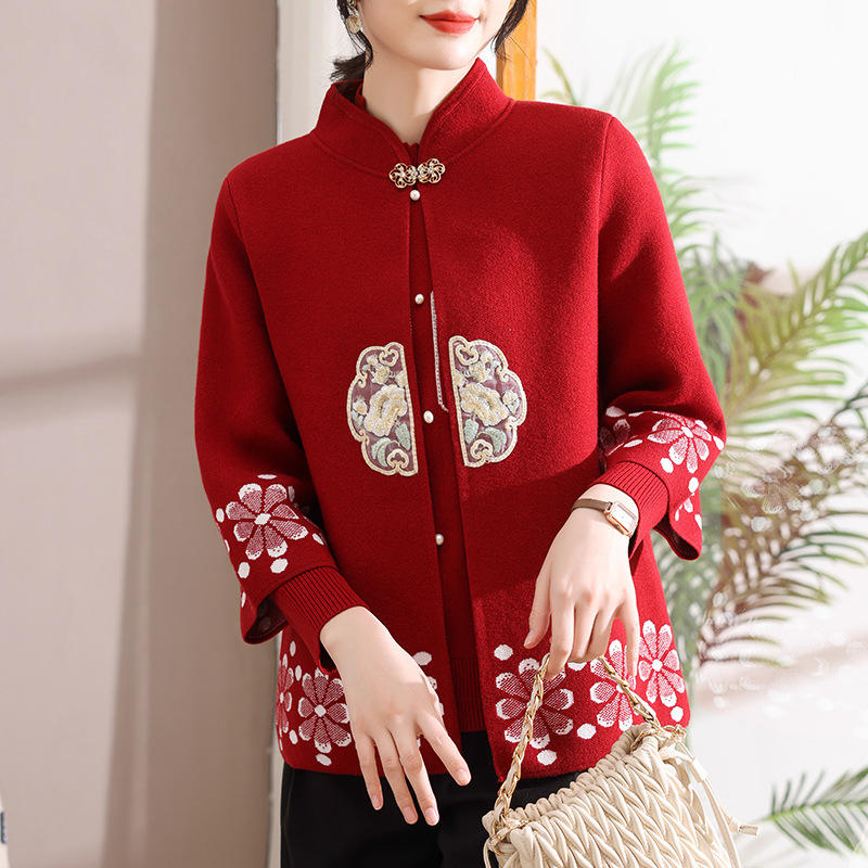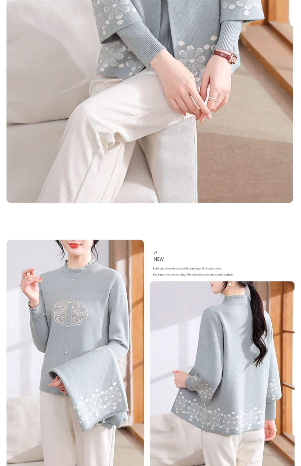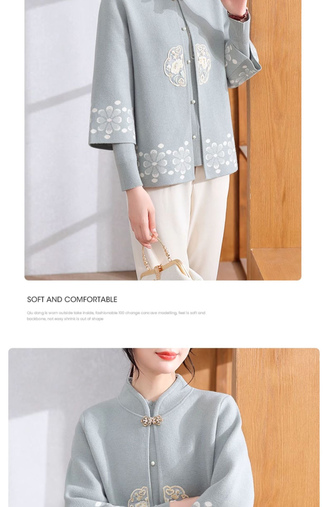 Комплект женской одежды для женщин среднего возраста: вязаный свитер и пальто на весну и осень, новый китайский стиль, национальный модный комплект из двух предметов для женщин среднего и старшего возраста.