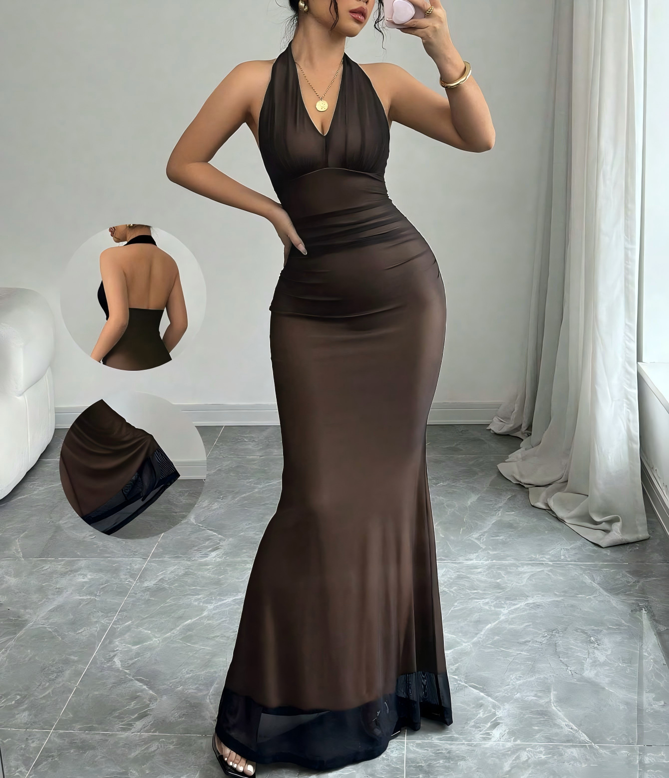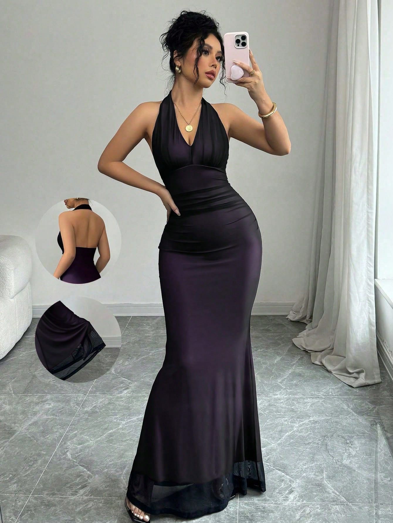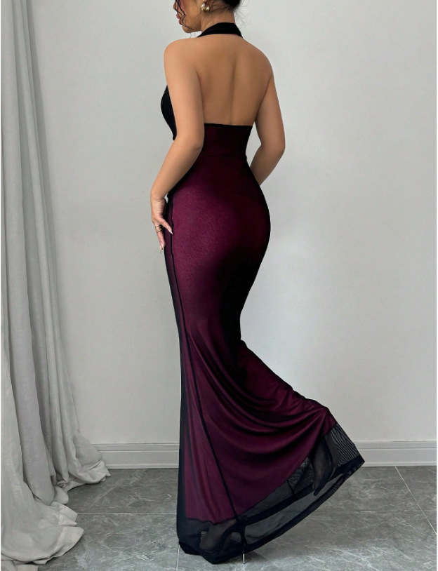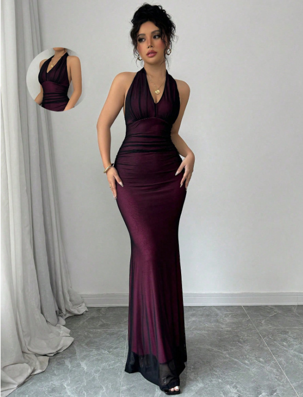 Европейские и американские трансграничные сексуальные элегантные платья с шеей тонкие бедра