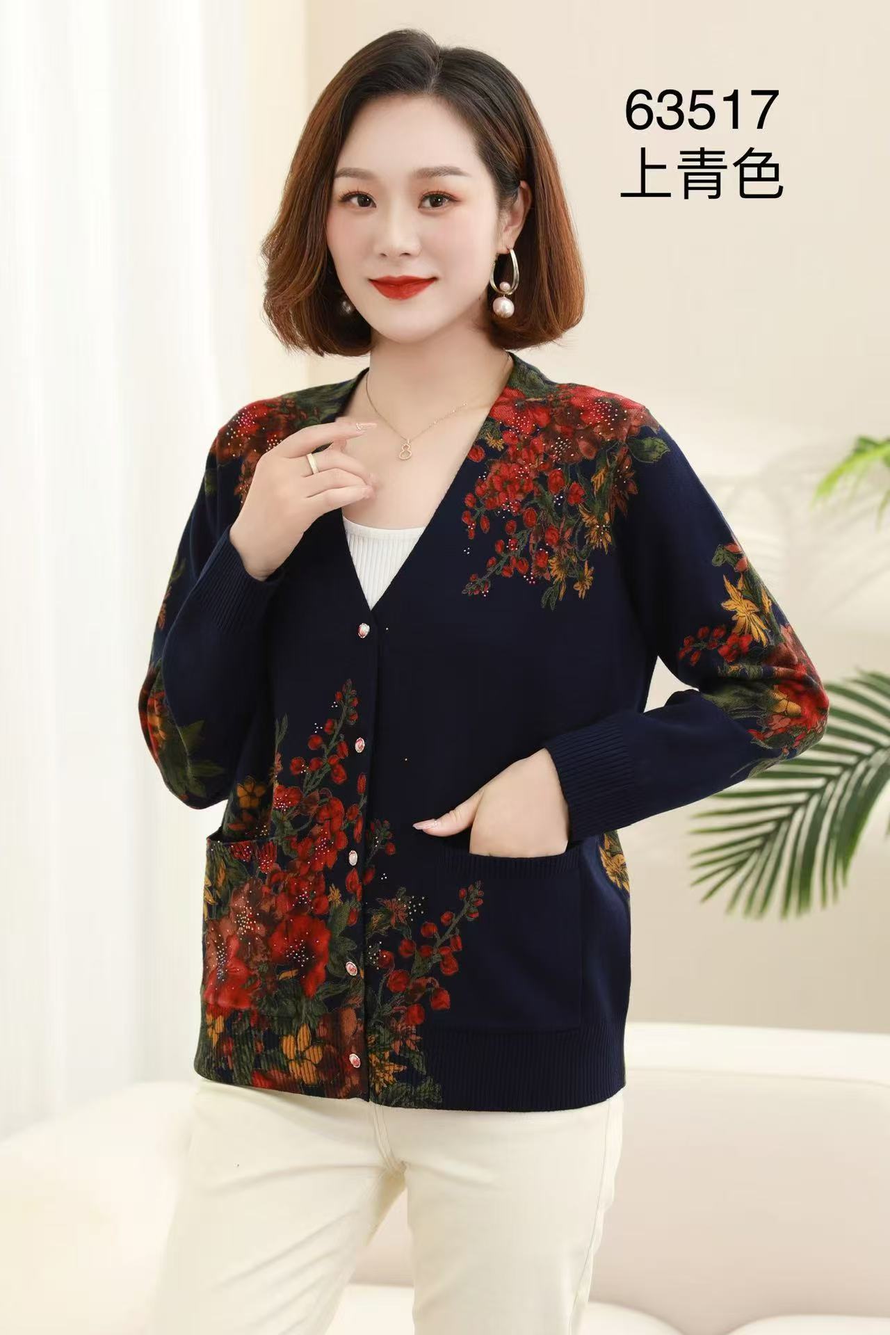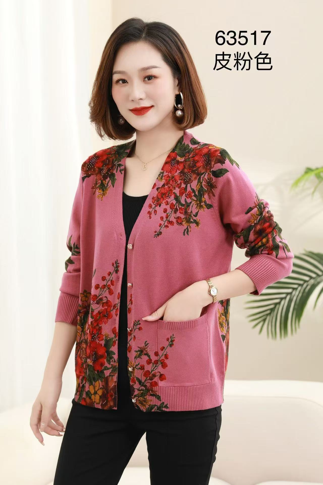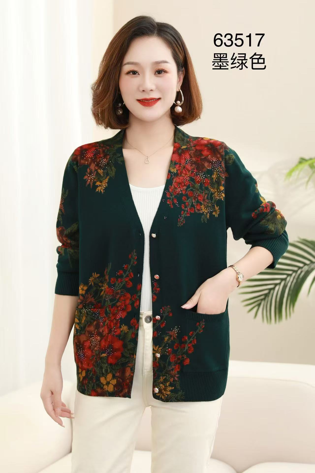 2025 весна новый тонкий трикотажный цифровой принт трикотажный свитер кардиган среднего и пожилого возраста кардиган с v-образным вырезом моды 100