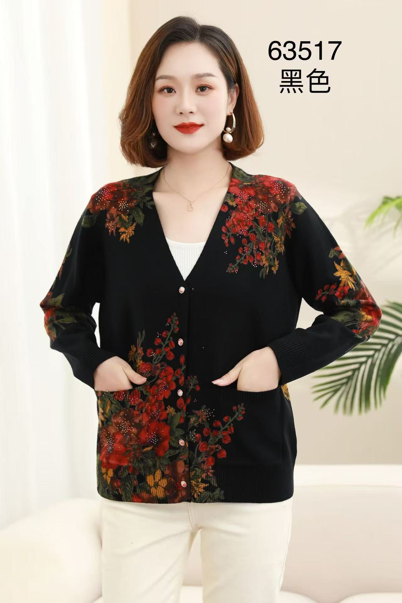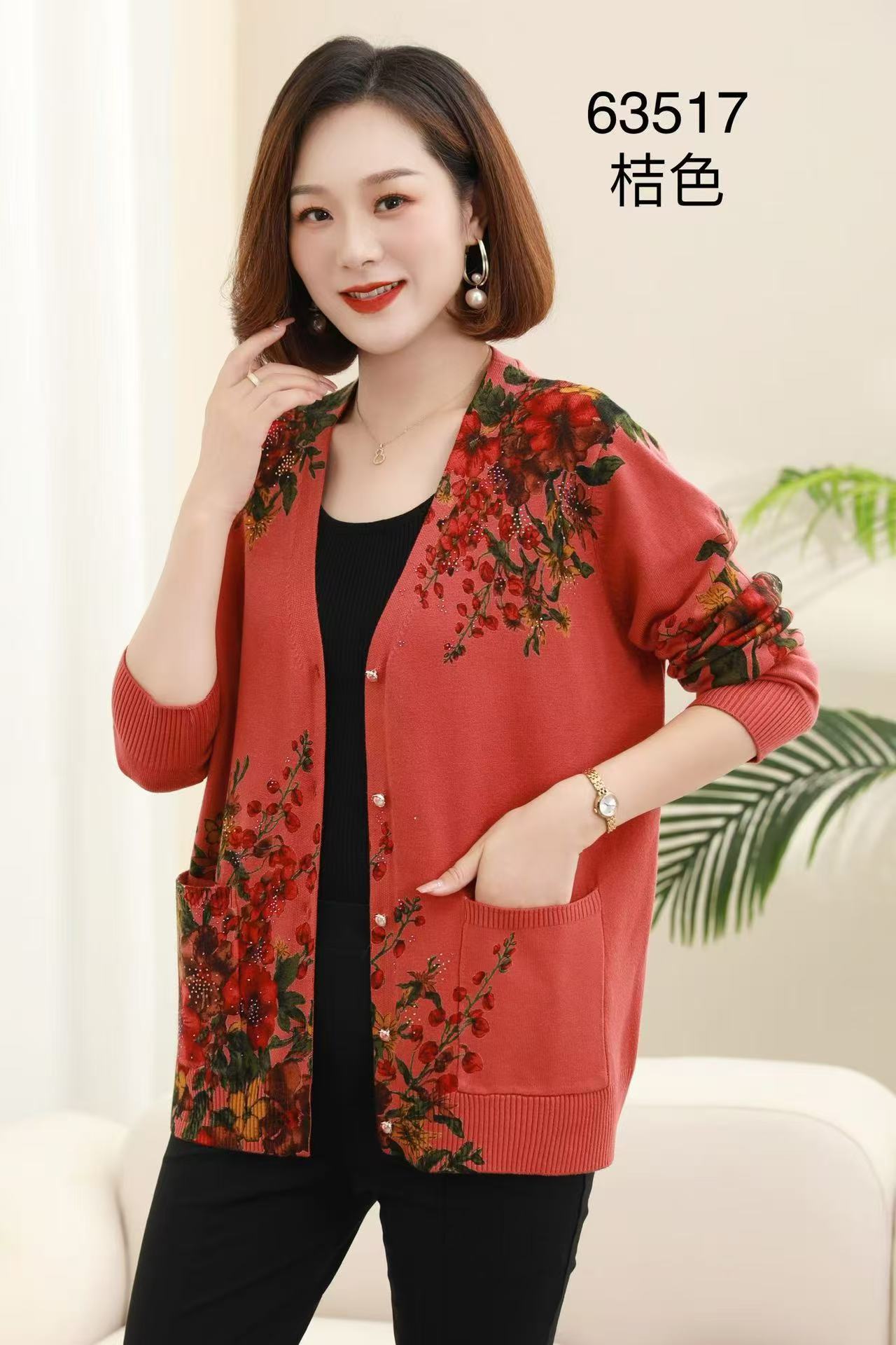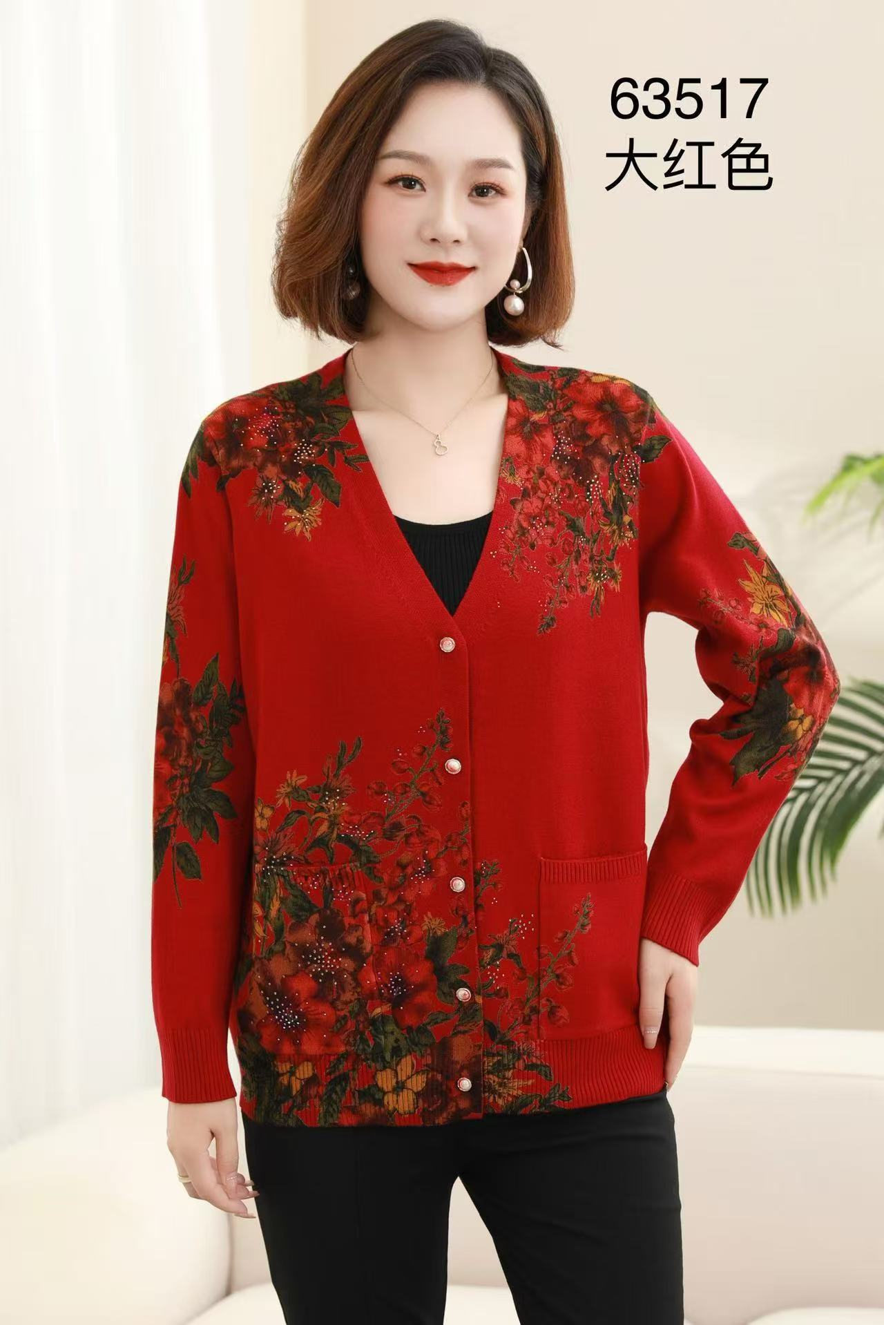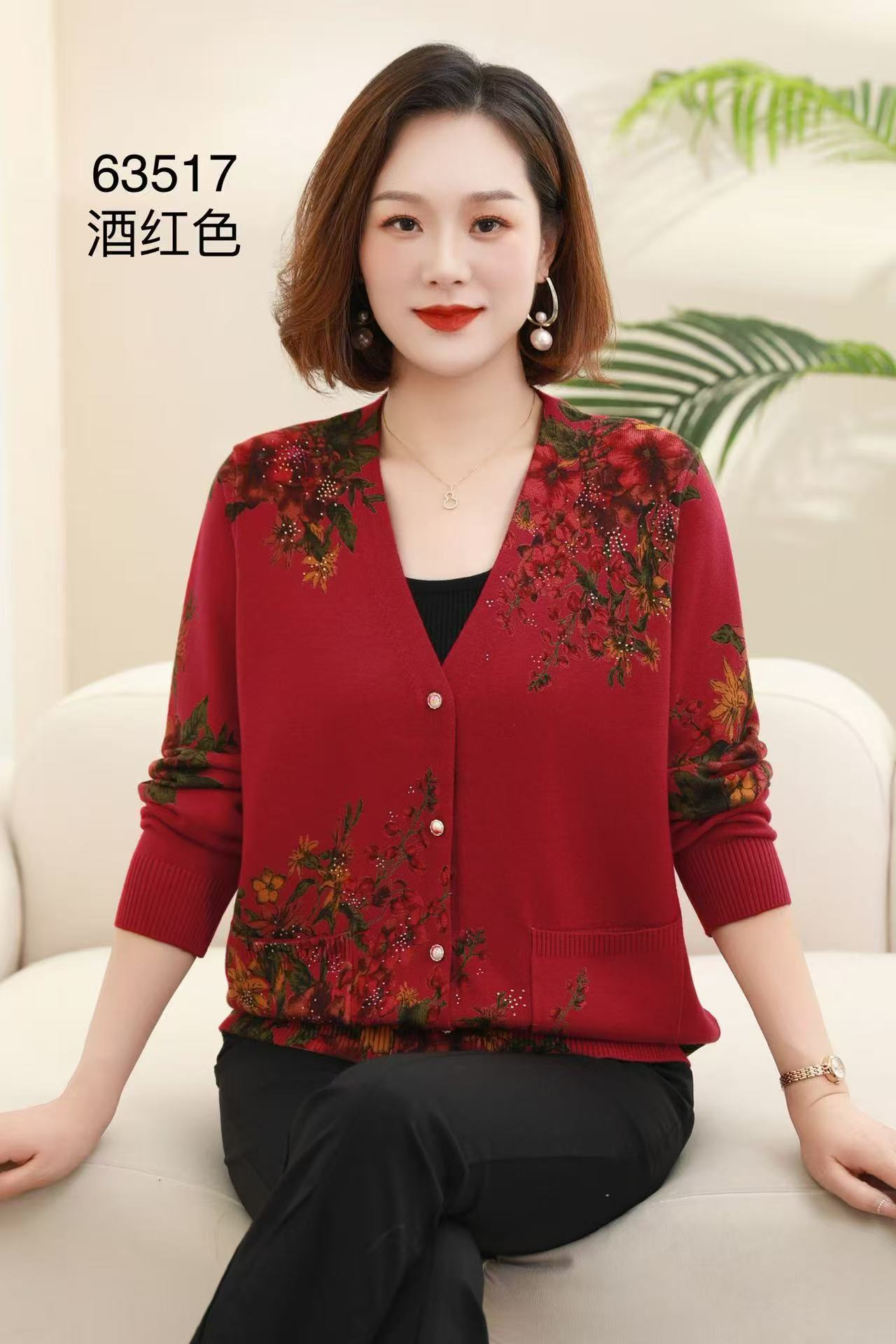 2025 весна новый тонкий трикотажный цифровой принт трикотажный свитер кардиган среднего и пожилого возраста кардиган с v-образным вырезом моды 100