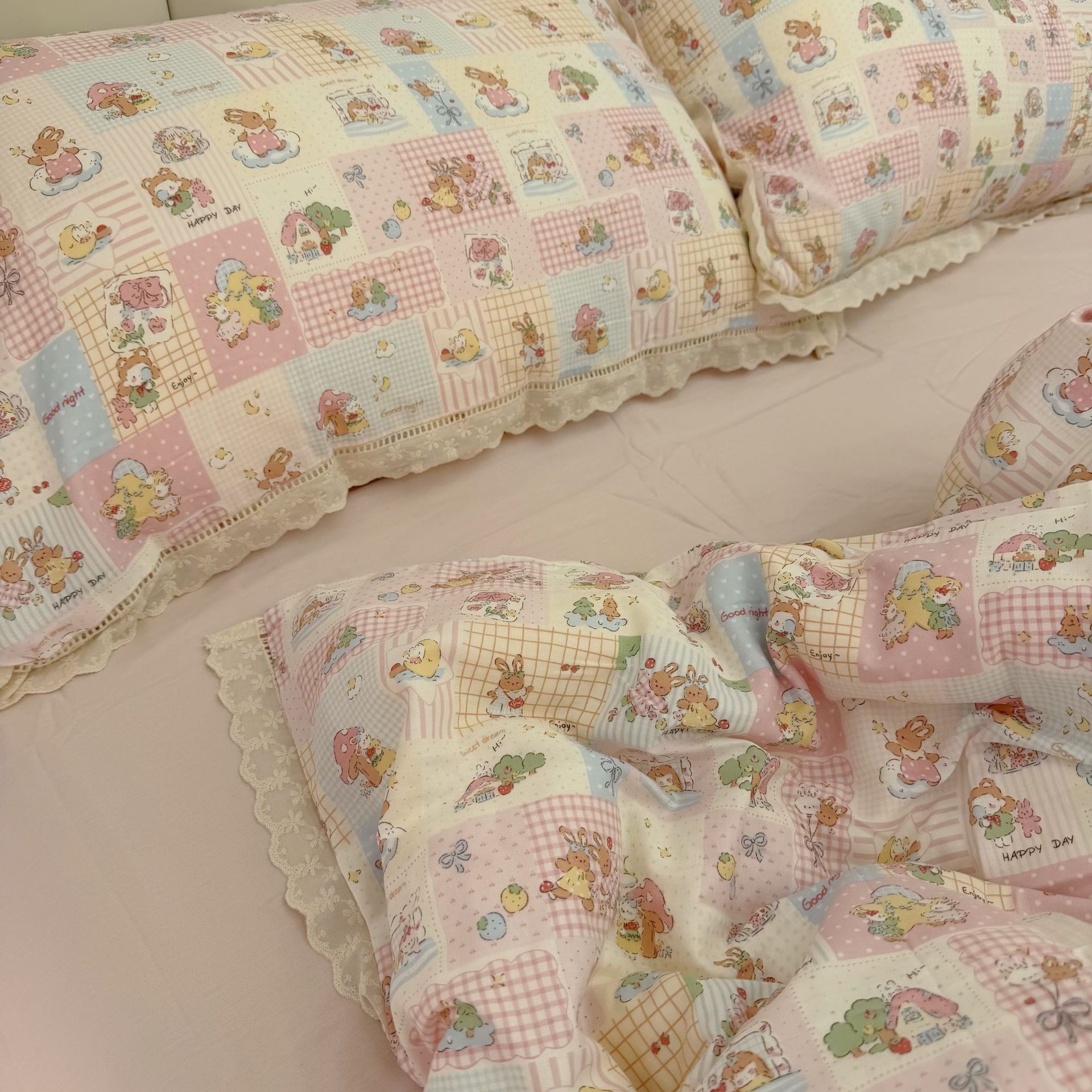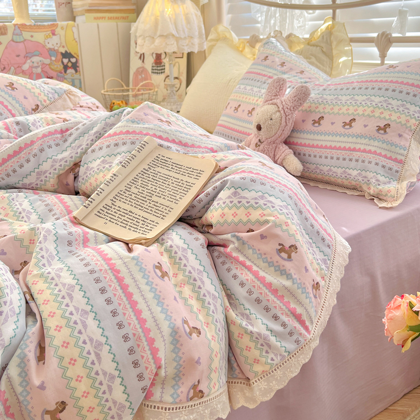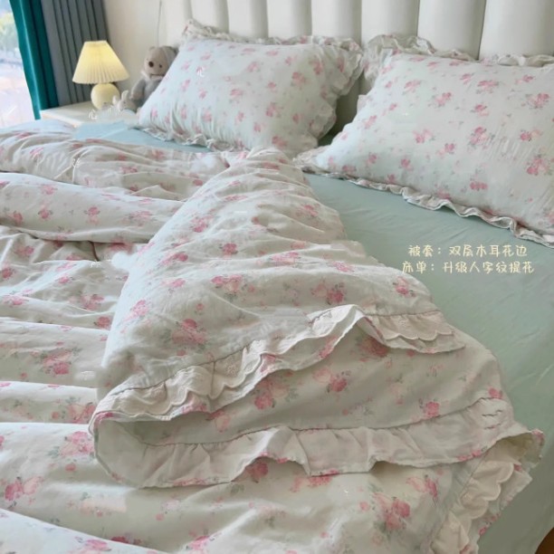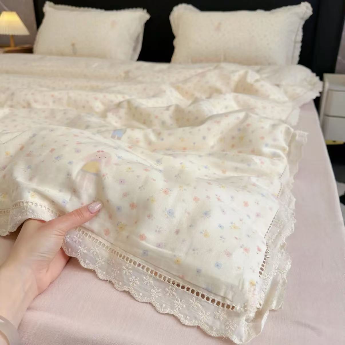 Двухслойный хлопковый комплект из четырех предметов категории A для матерей и младенцев, подходящий для кроватей размером 1,5 и 1,8 м, включая простыню, пододеяльник и пододеяльник, а также трехпредметный комплект для общежития.
