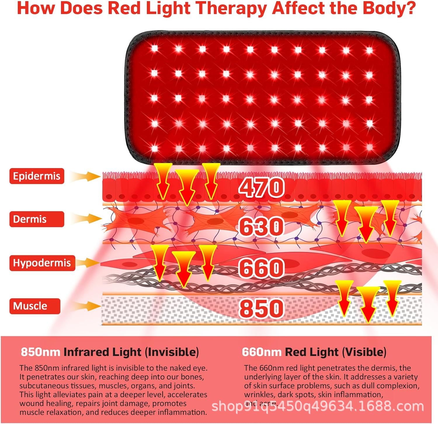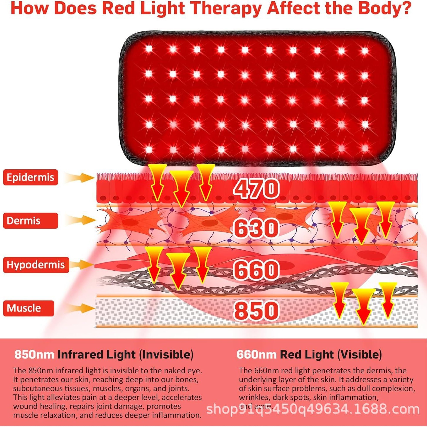 Amazon красный свет физиотерапевтический коврик 660850nm LED красный свет пояс инфракрасный свет пояс для светотерапии теплый дворец горячий компресс