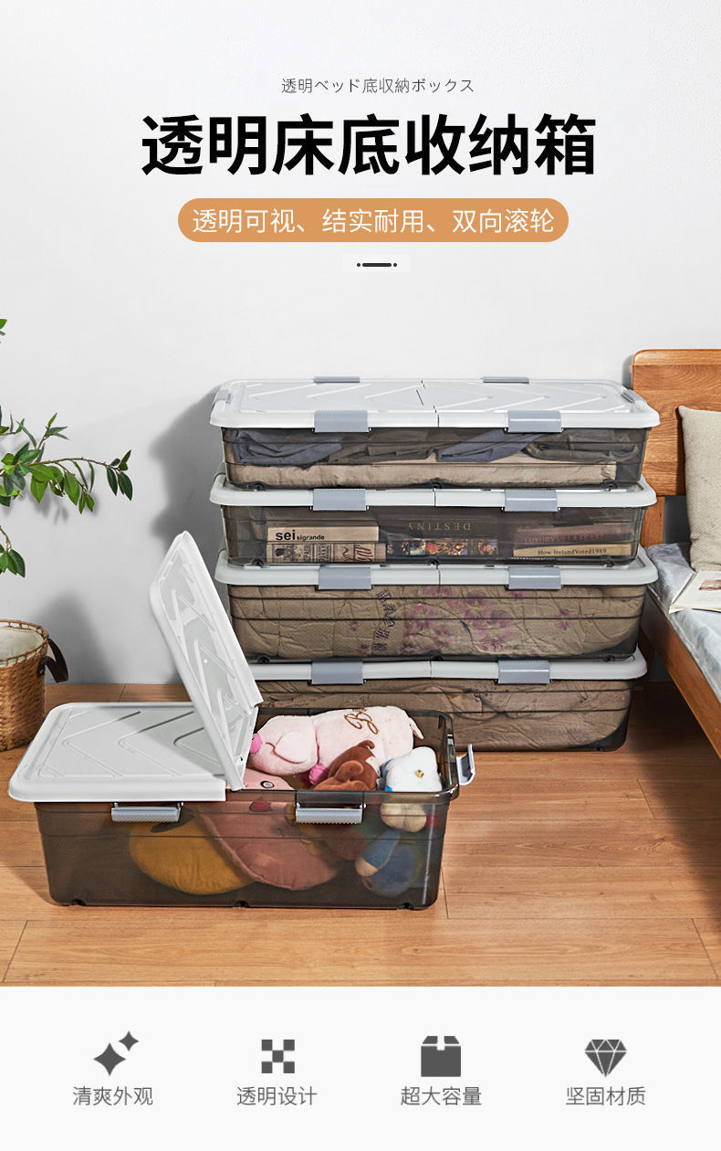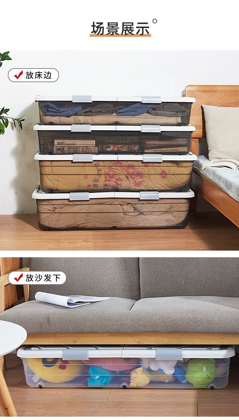 Коробка для хранения под кроватью с колесом пластиковая большая коробка для одежды