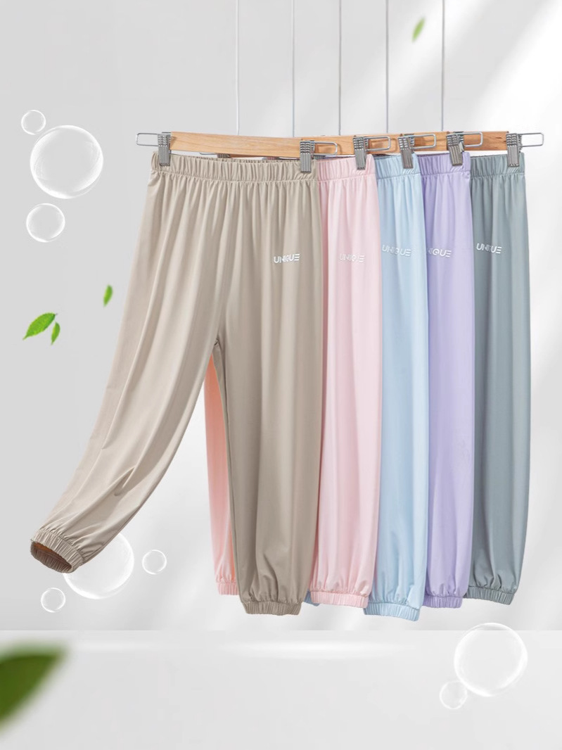 2025 детские солнцезащитные брюки летние новые женские спортивные брюки нейлоновые повседневные свободные ледяные шелки для мальчиков против комаров и влаги