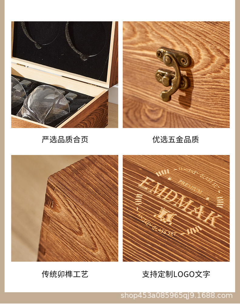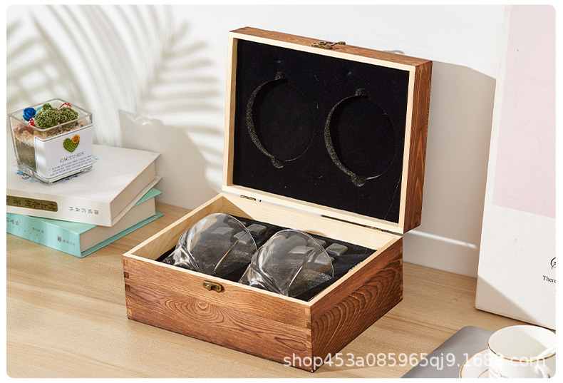 Новый стиль виски бокал упаковки деревянная коробка ледяное вино камень деревянная подарочная коробка виски набор подарочная коробка для хранения бокала вина