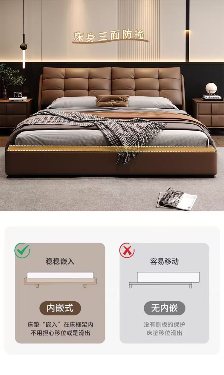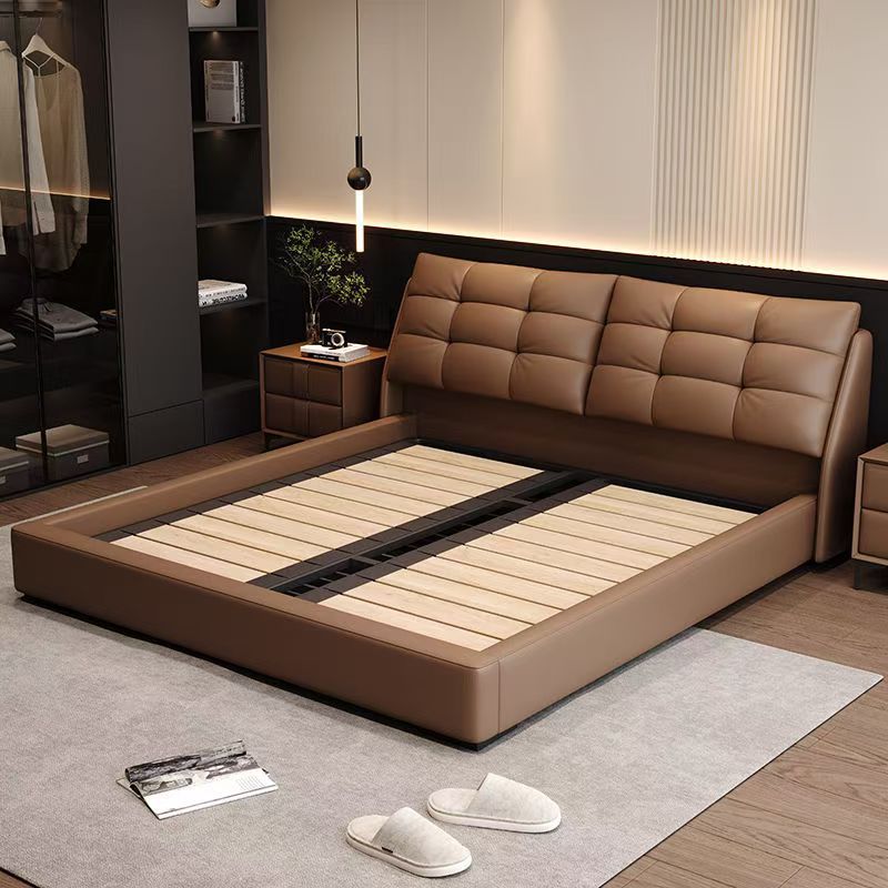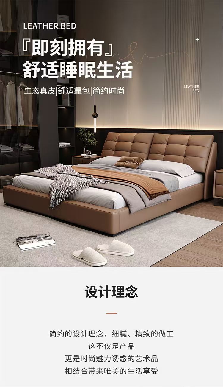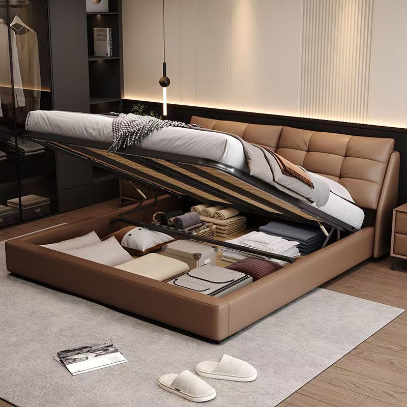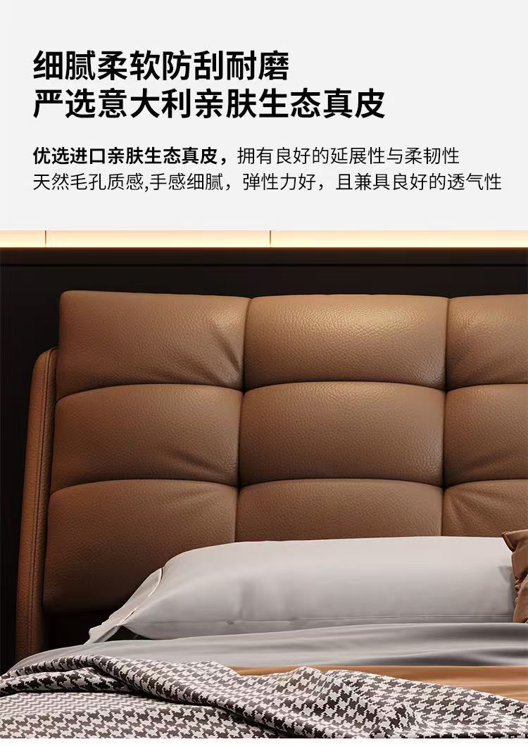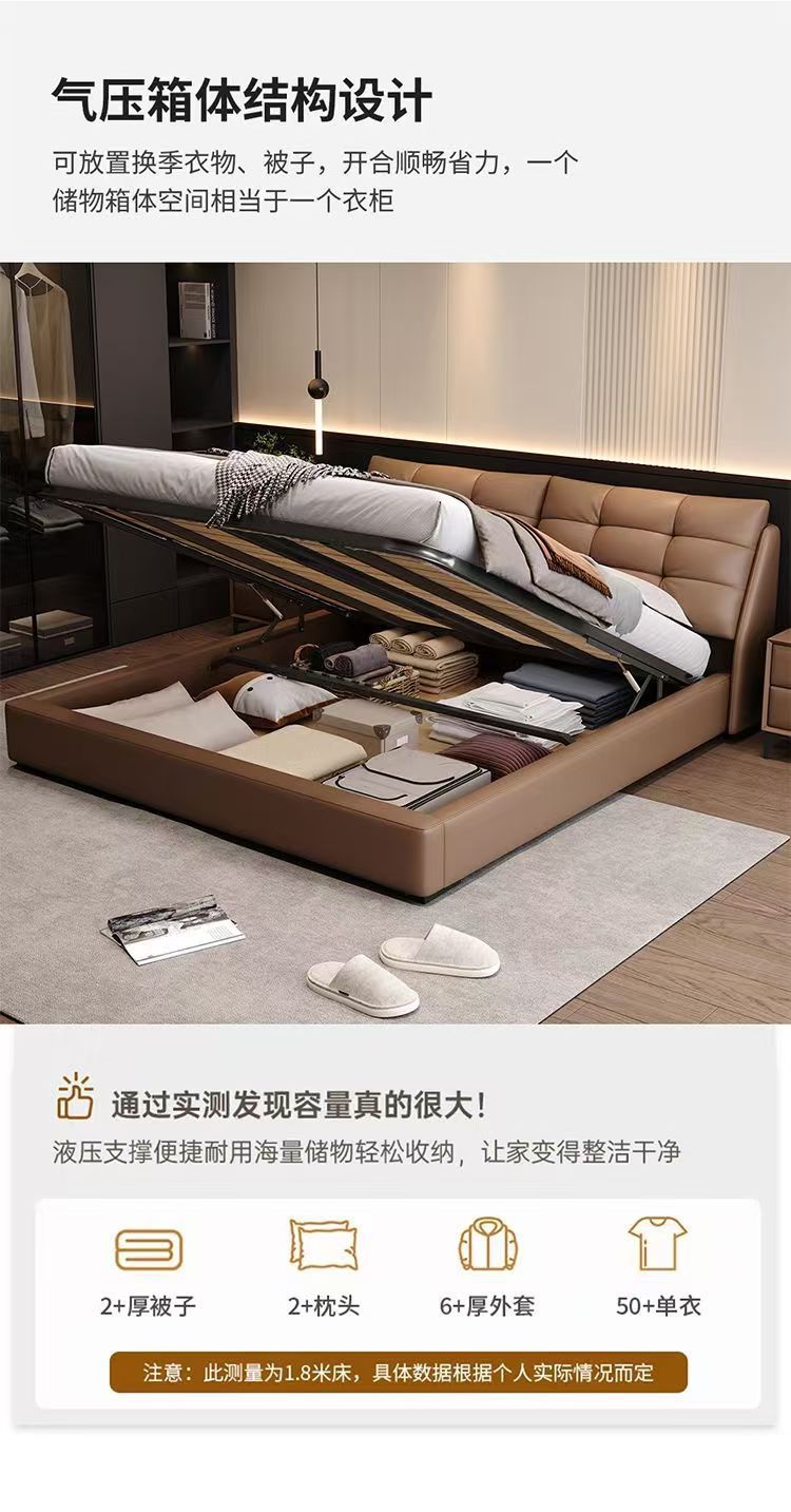Свежая роскошная кожаная кровать в итальянском стиле 2 м двуспальная кровать Современная минималистская главная спальня двуспальная кровать 1,8 м небольшая кровать для хранения свадебная кровать