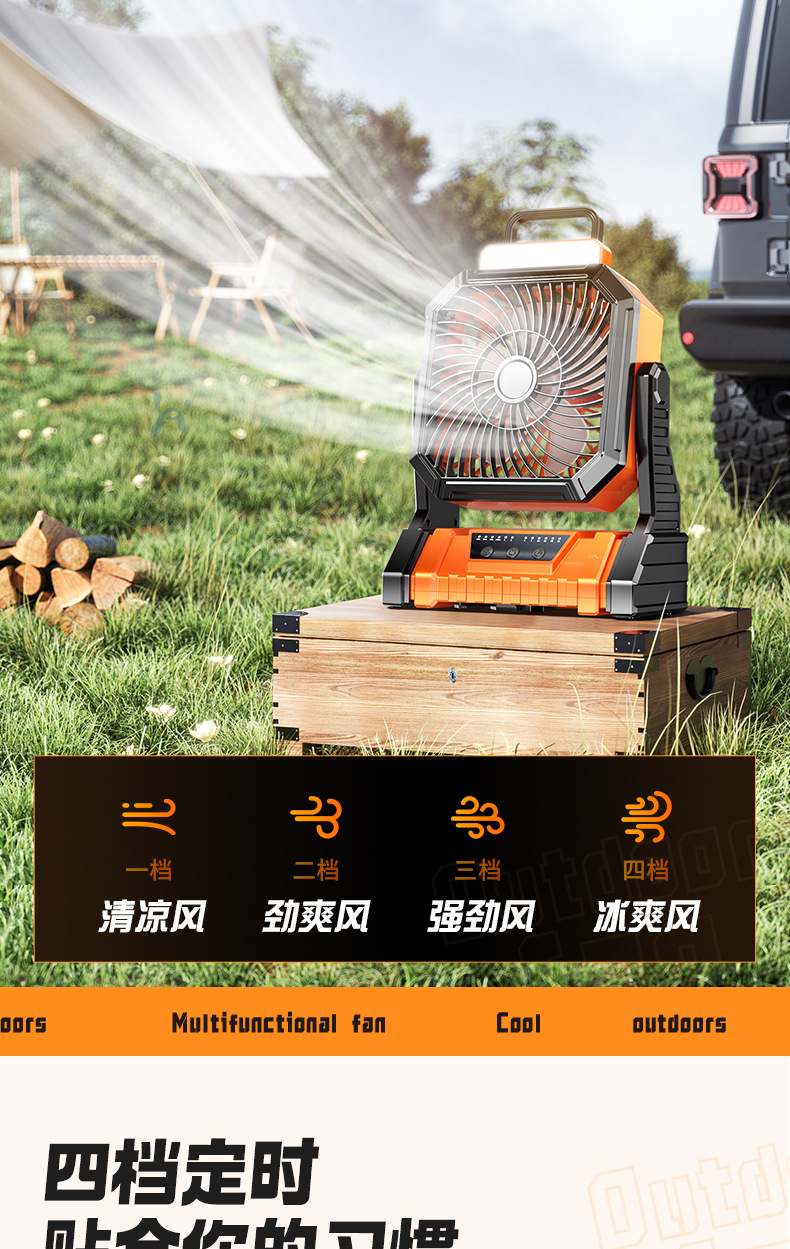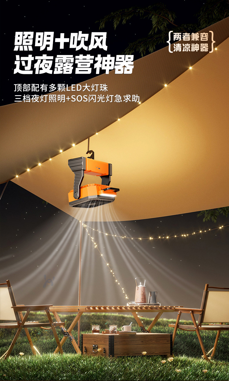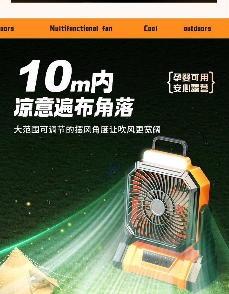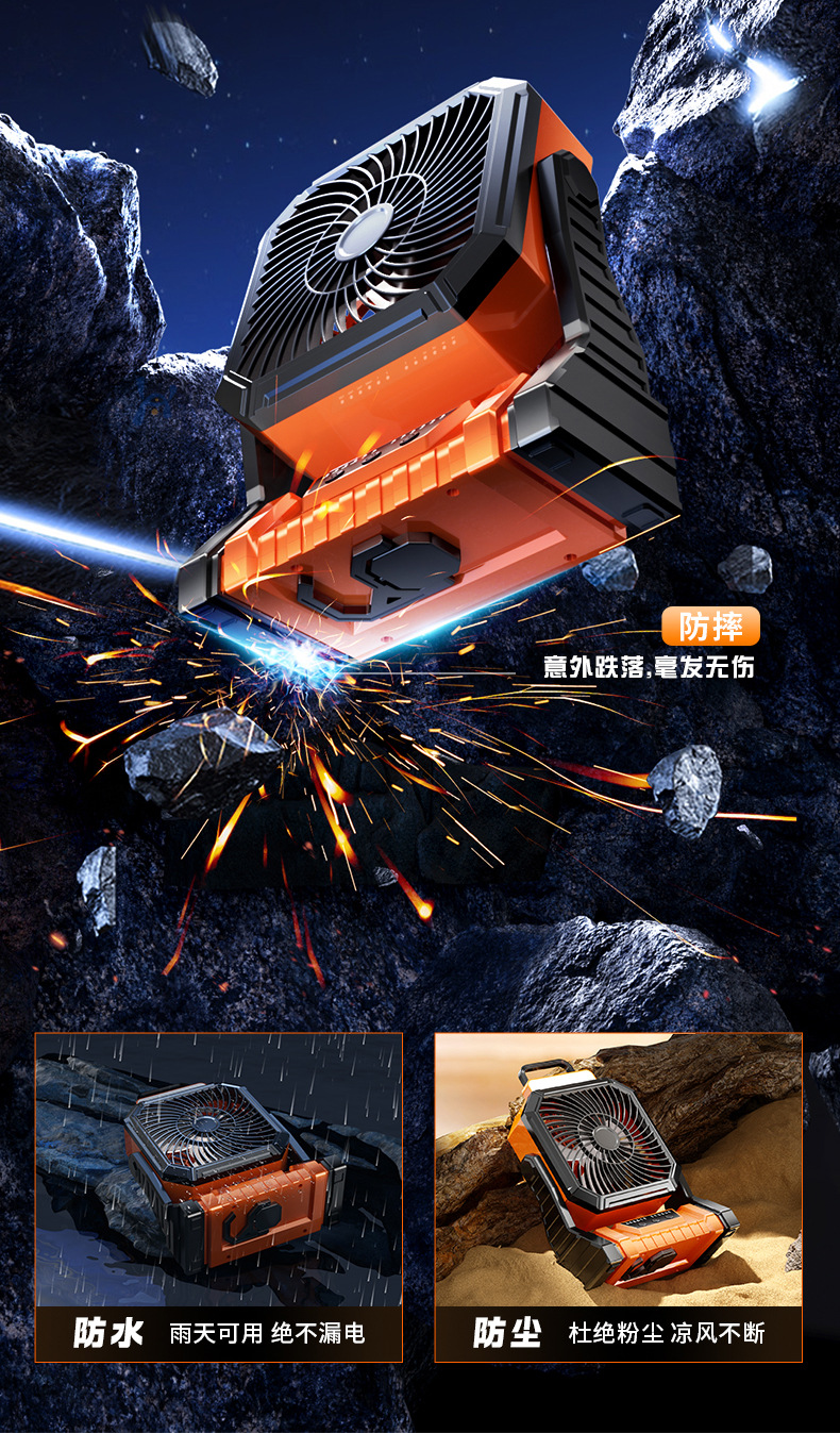 Открытый кемпинг вентилятор usb перезаряжаемый качай портативный рабочий стол большой ветер пульт дистанционного управления освещением полевой вентилятор