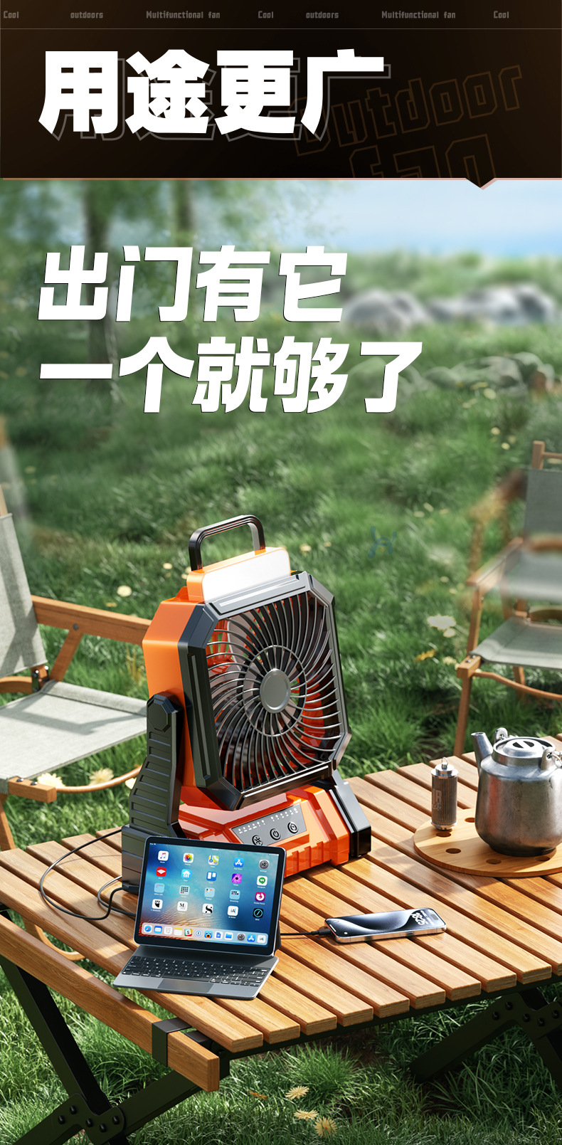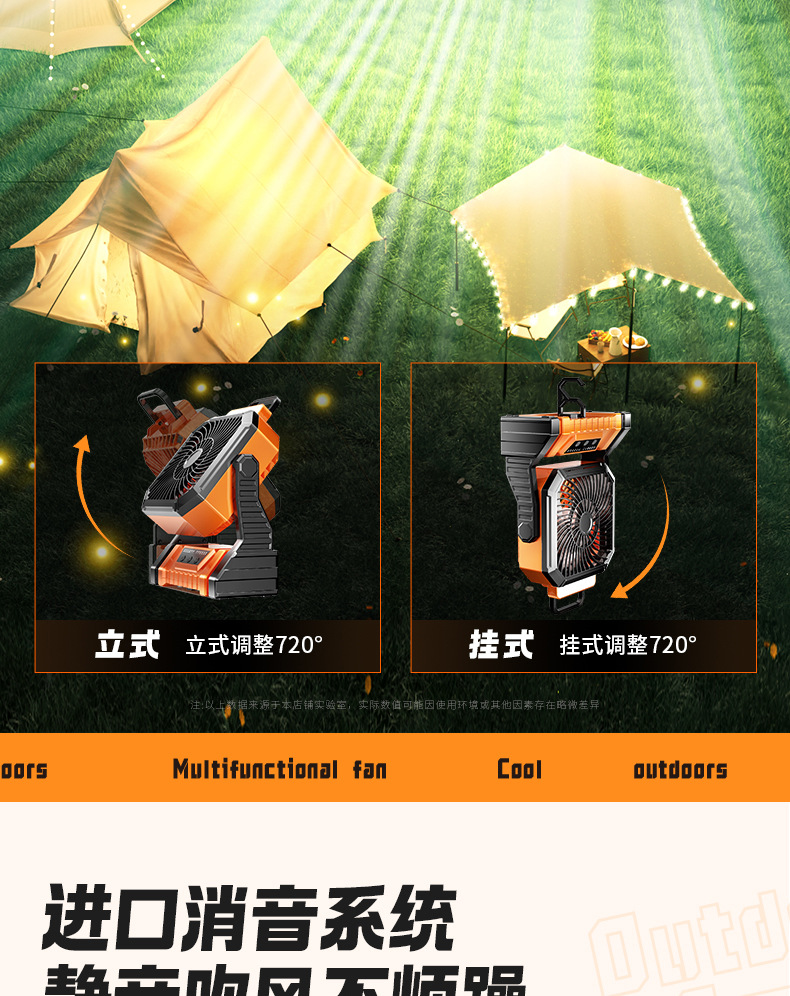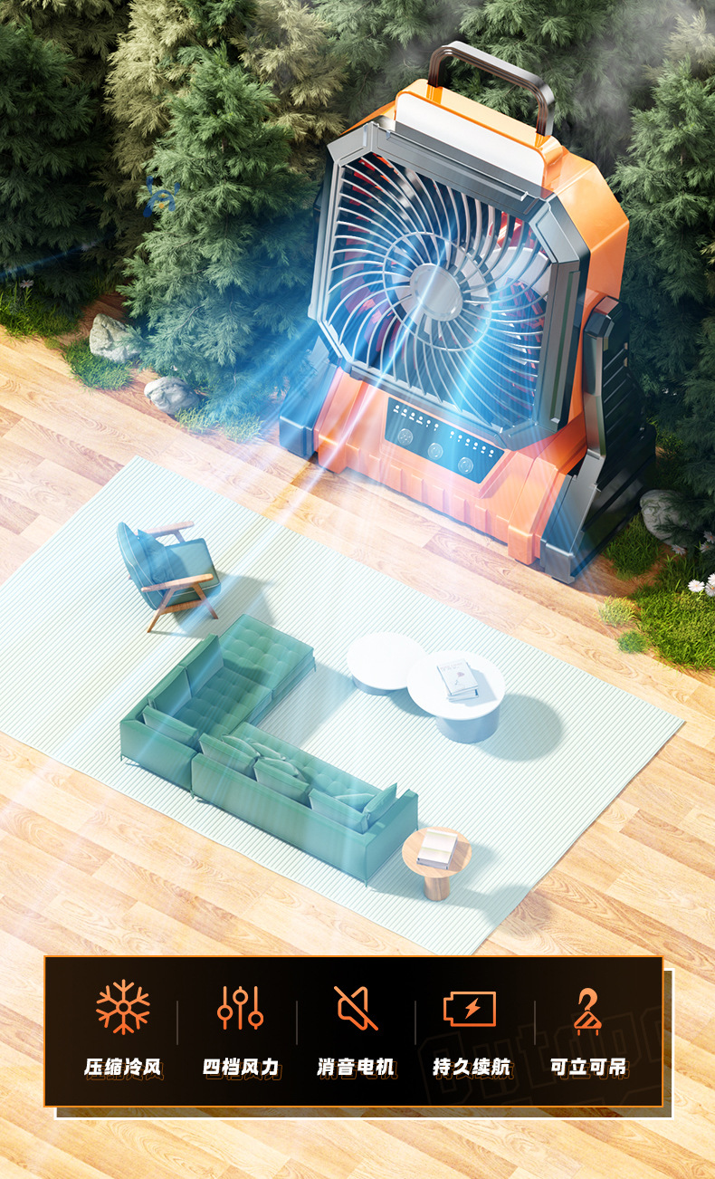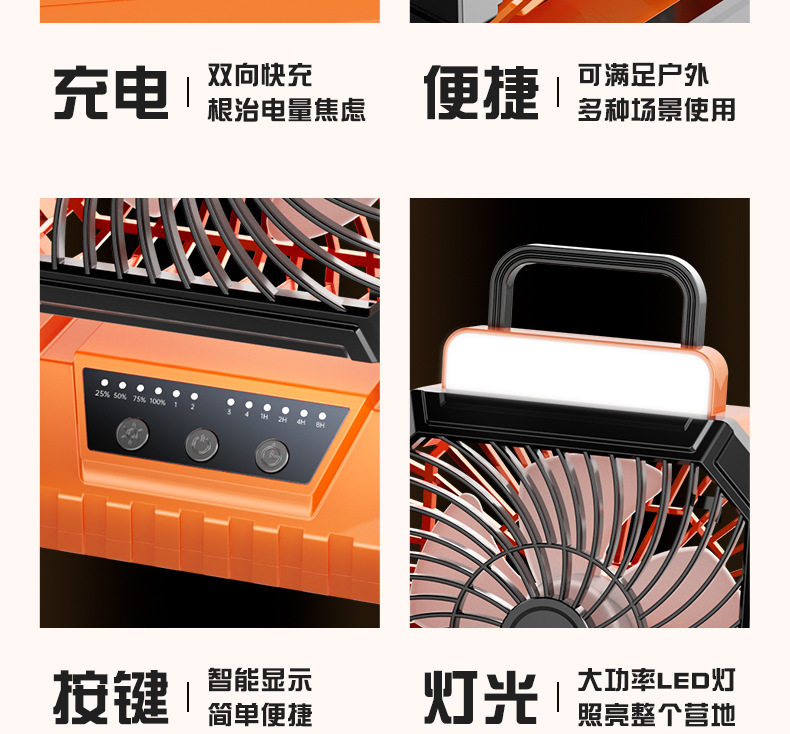 Открытый кемпинг вентилятор usb перезаряжаемый качай портативный рабочий стол большой ветер пульт дистанционного управления освещением полевой вентилятор