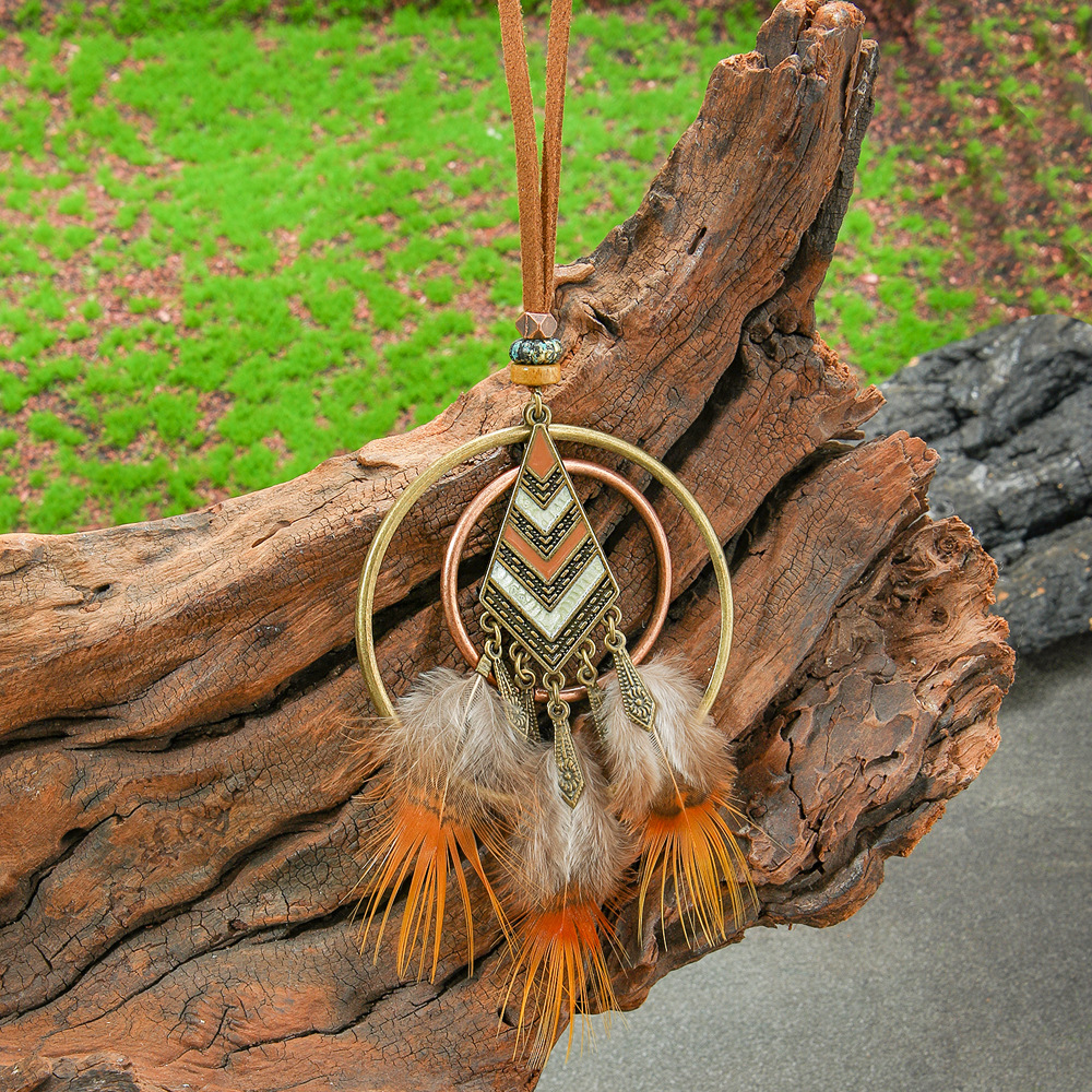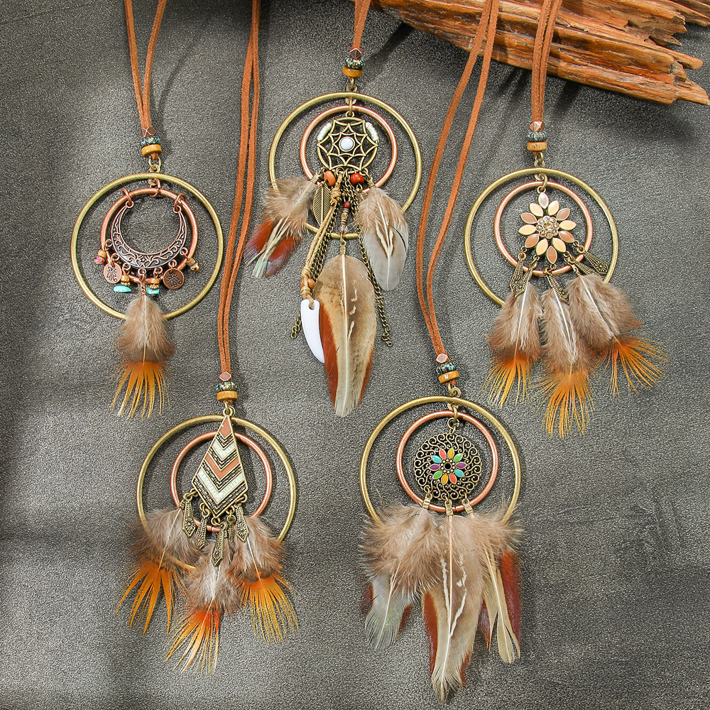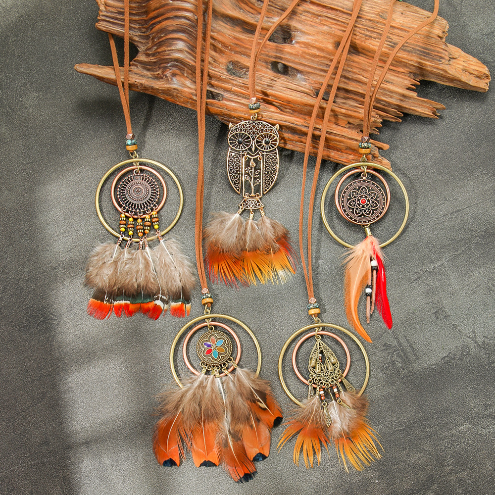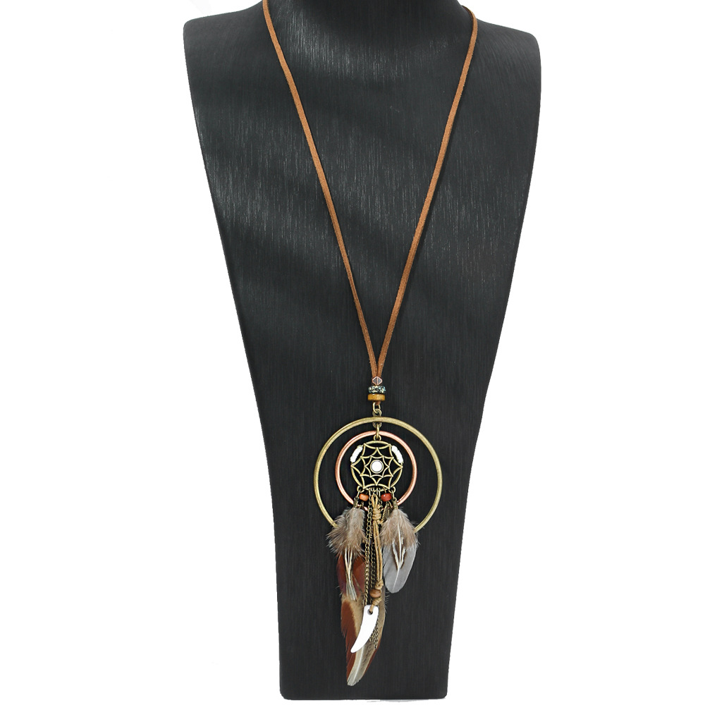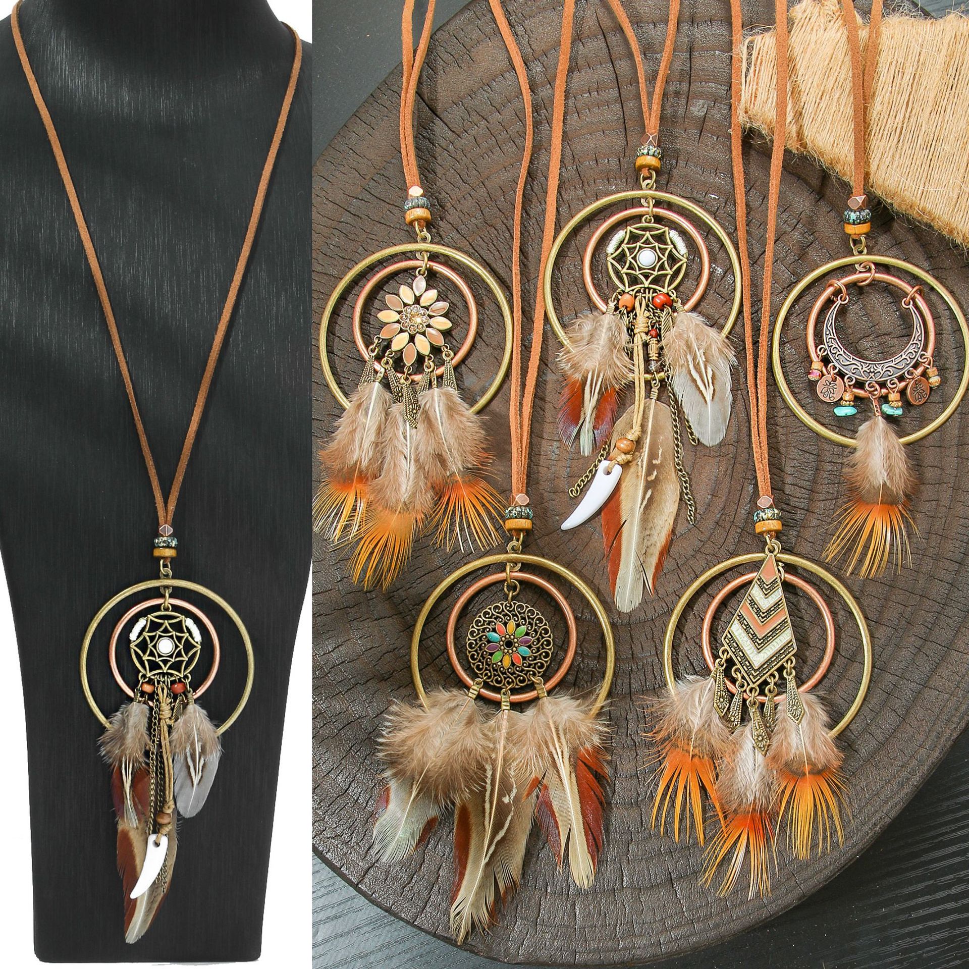 Богемский ретро европейский и американский стиль индивидуальность длинный кулон ручной работы с цветным настоящим кольцом из перьев