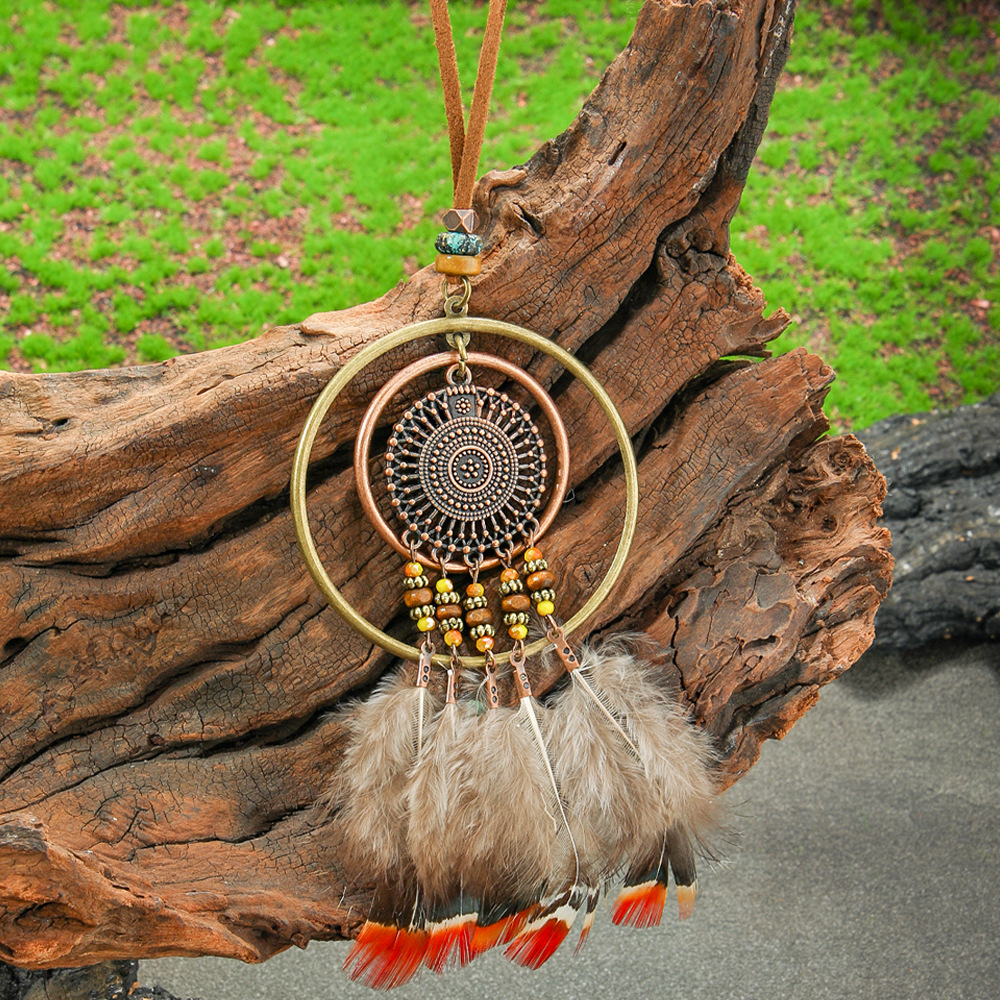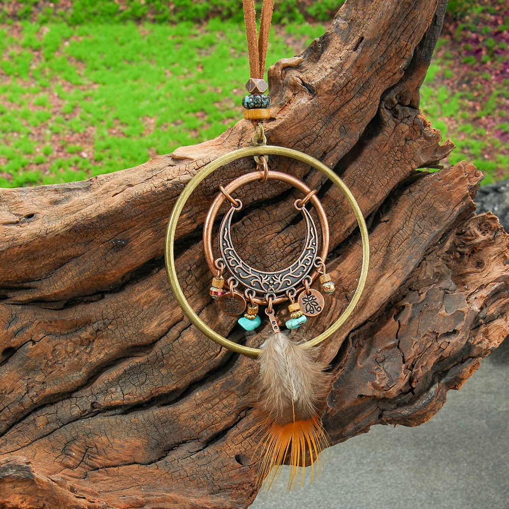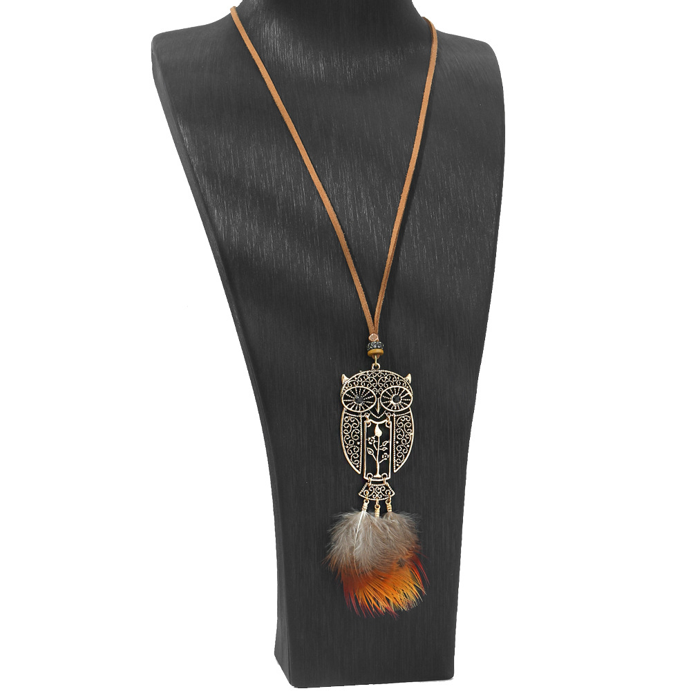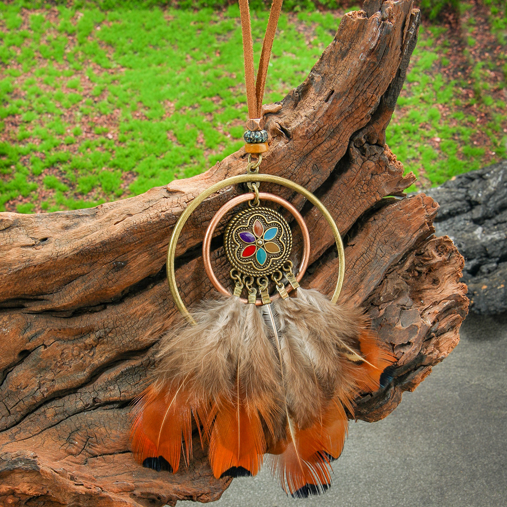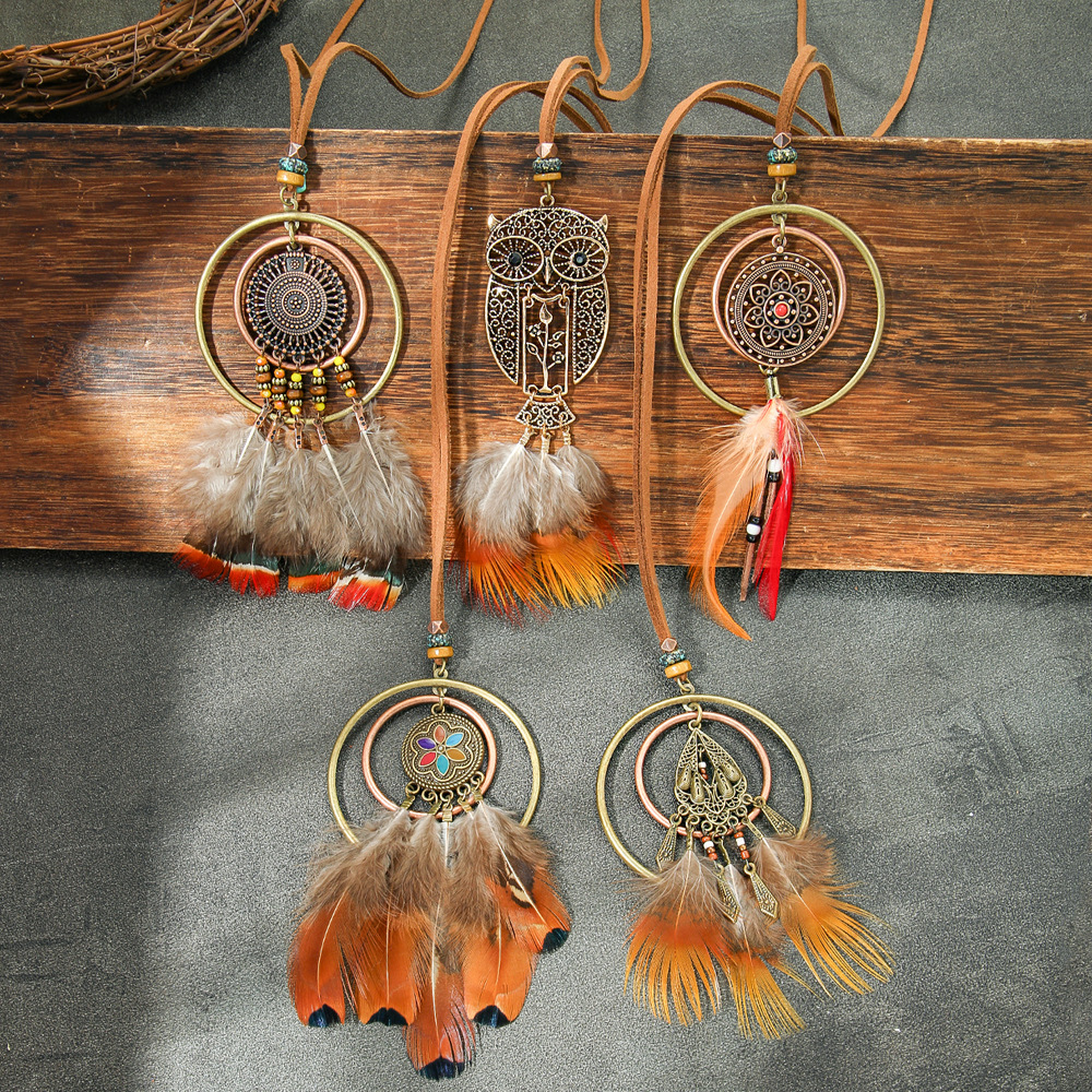 Богемский ретро европейский и американский стиль индивидуальность длинный кулон ручной работы с цветным настоящим кольцом из перьев