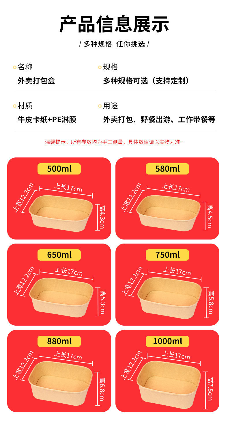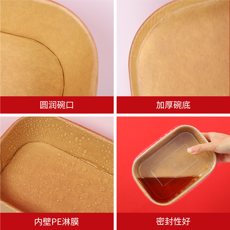 Одноразовая бумажная чаша квадратная упаковка на вынос бумажная чаша крафт-бумага ланч коробка может быть напечатана упаковочная коробка для упаковки пищевых продуктов оптом