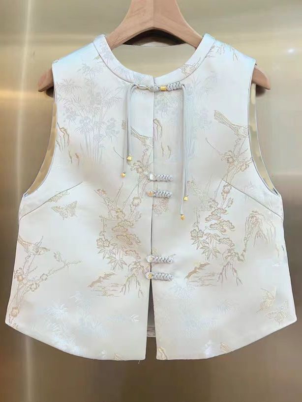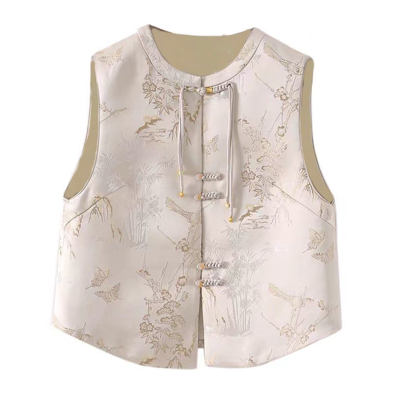Коллекция Весна 2026: Новая жилетка в китайском стиле с эффектом похудения, элегантная модная верхняя одежда на пуговицах, высококачественный трендовый топ.