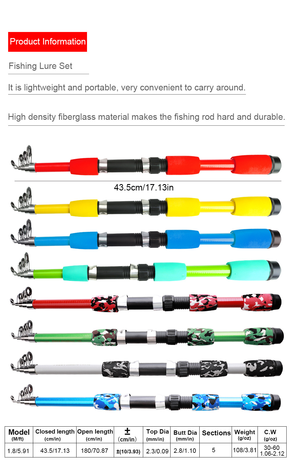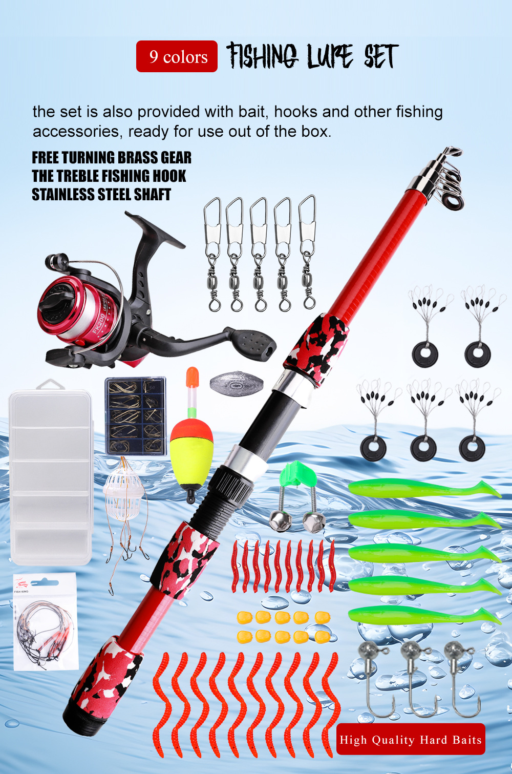 Набор удочек FTK, 1.8m телескопических портативных наборов приманок, кастинговая удочка для начинающих, комбинированная мягкая наживка для ловли карпа, трансграничная оптовая продажа