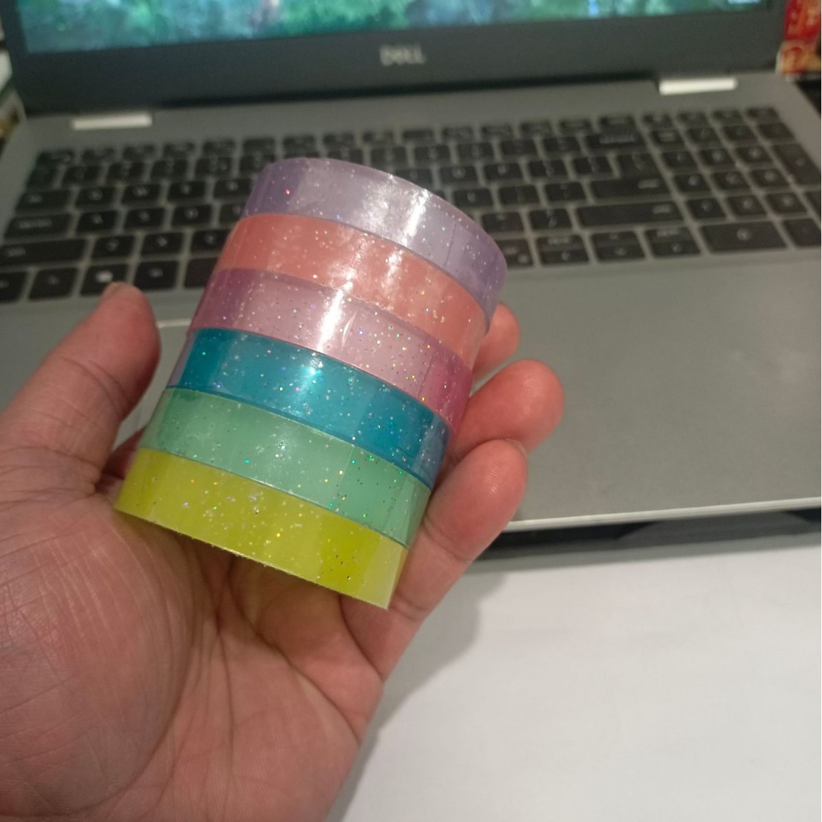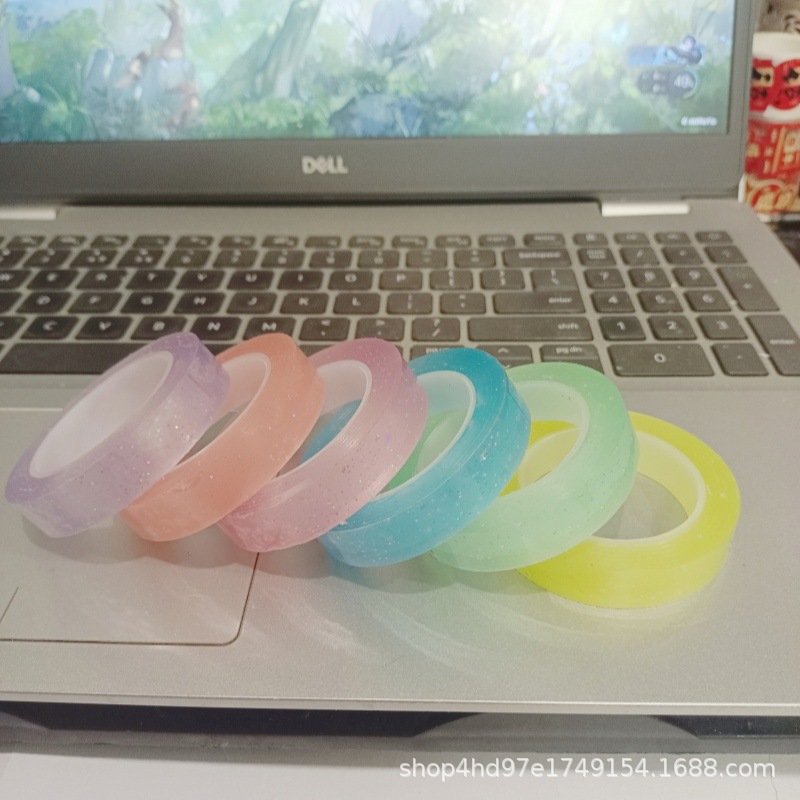 Лента-скотч Ice Flash Sticky Ball с блестками, прозрачная, 6-цветная серия, высоковязкая, для DIY-творчества и декорирования, прозрачный клей для дневников.