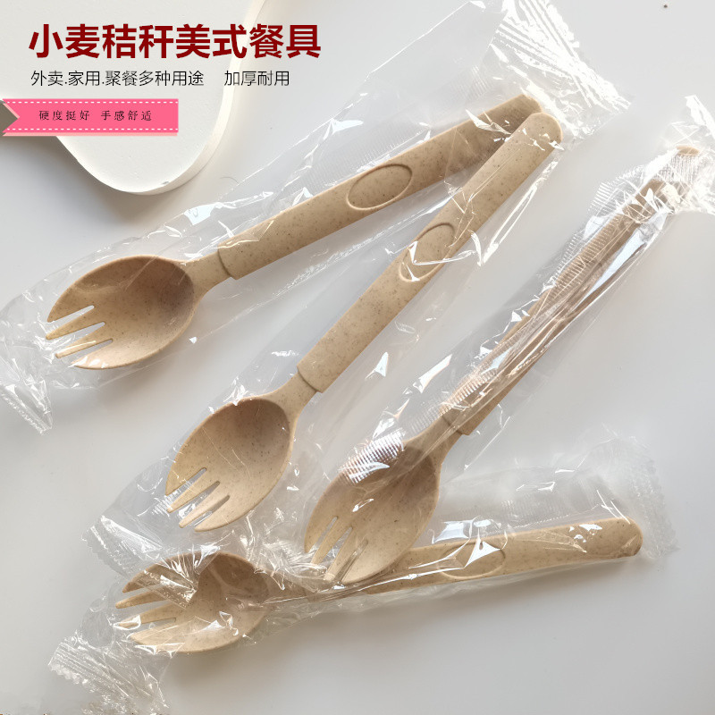 Одноразовая ложка одна упаковка пшеничная солома ложка вилка пластиковая ложка ложка торт десерт ложка вилка пшеничного волокна вилка B &