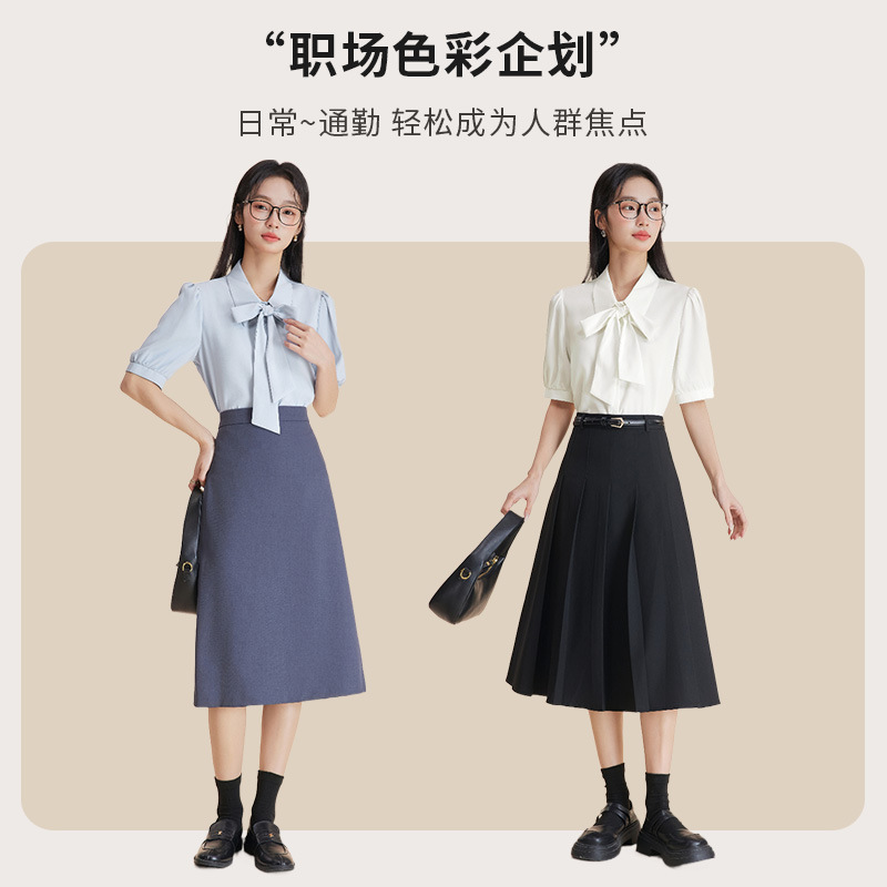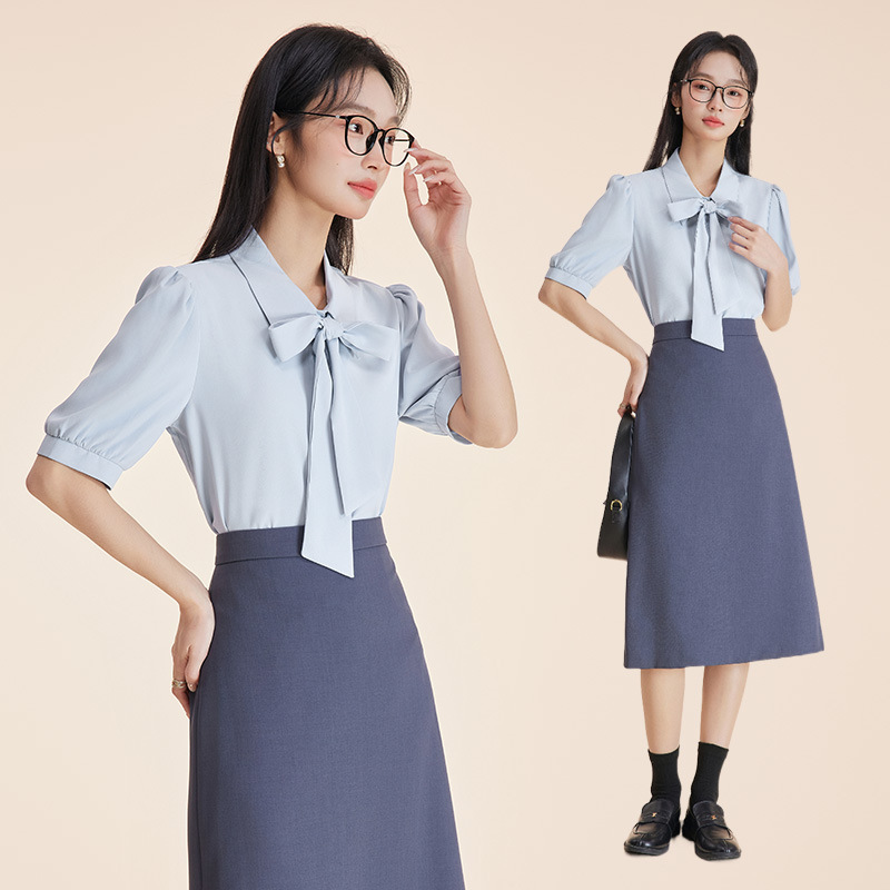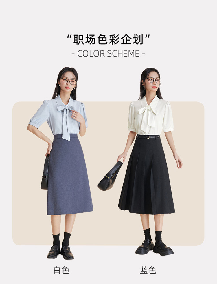 белая рубашка; Белая рубашка + юбка; синяя рубашка; Синяя рубашка + юбка