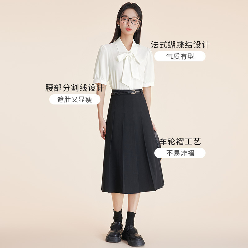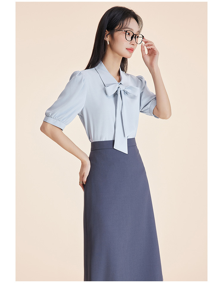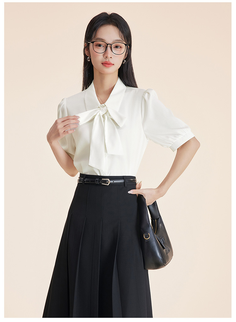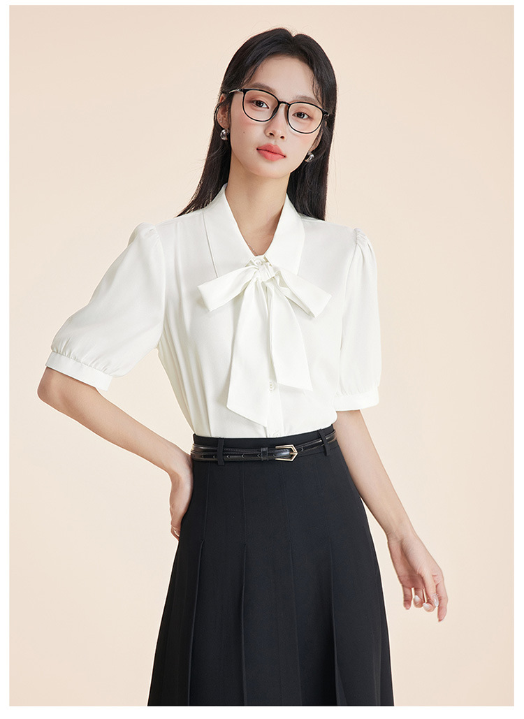 Французская шнуровка весна и лето новая белая рубашка женский дизайн чувство бабочки воротник маленький человек леди шифоновая рубашка юбка