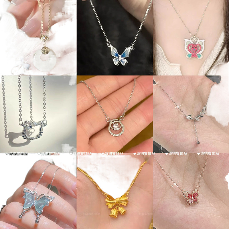 #102【9 самых продаваемых ожерелий】; M1074 [Ожерелье с пряжкой мира Fu word]; M576 [Ожерелье с градиентной синей бабочкой]; M60 [Трансформер Розовый]; M47 [Ожерелье с изображением кота Pearl KT]; M582 [Ожерелье со стразами и кольцом]; M772【Ожерелье Sui Sui Ping An с пшеничными ушками】; M770【Ожерелье-бабочка】; M547 [Ожерелье с филигранной бабочкой]; M278 [Ожерелье с бантом и ландышем]