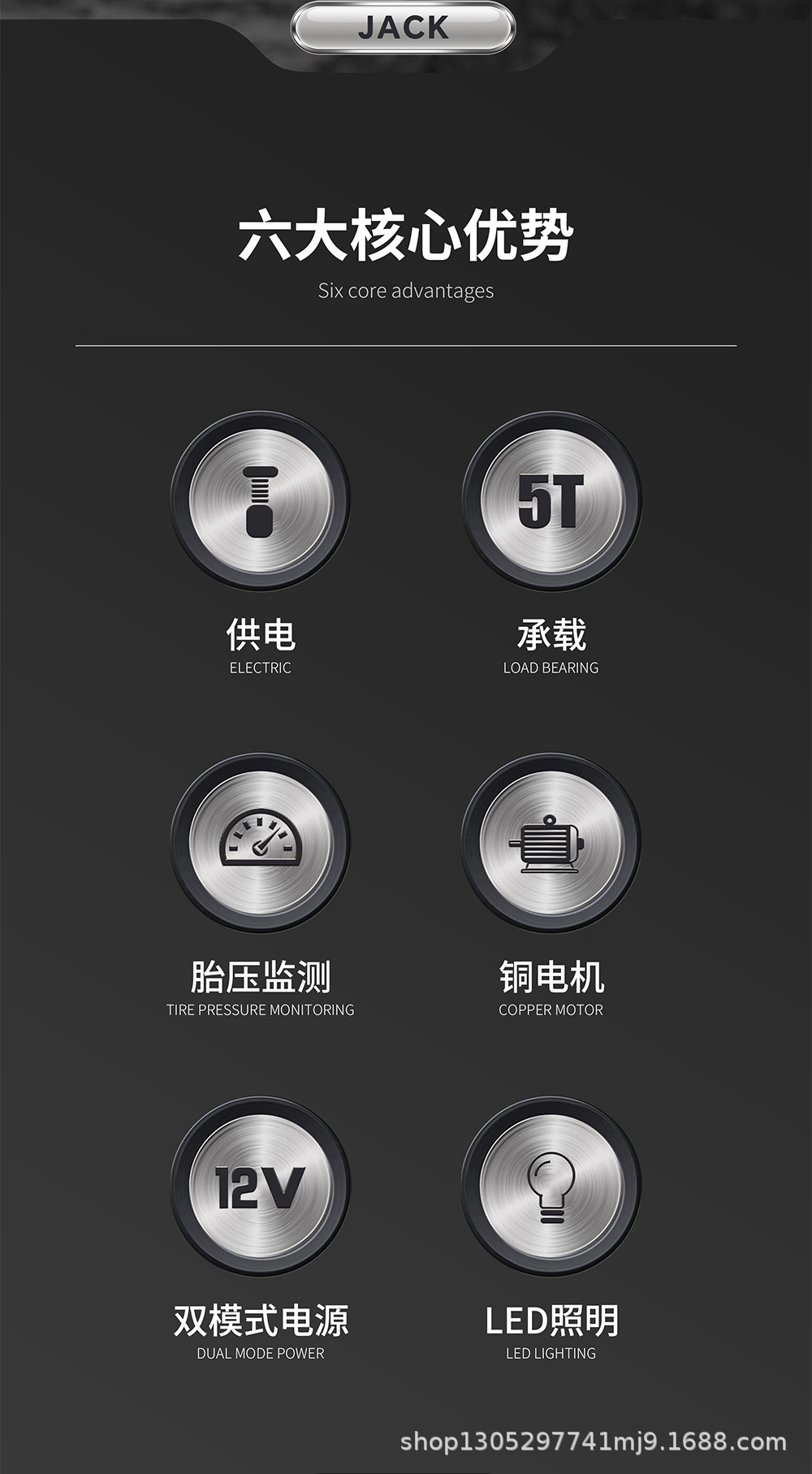 1、电动千斤顶;2、电动冲击扳手;3、电动充气泵;4、安全锤;5、插座适配器;6、电池夹;7、充气针;8、点烟器;9、保险丝;10.手套;11、工具箱 12、遥控器