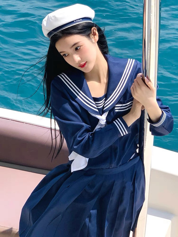 Голубой костюм Three Upgraded с короткими рукавами, 39 см; Синий костюм Three Upgraded с длинными рукавами, 39 см; Голубой улучшенный костюм из трех частей с короткими рукавами 39 см (бордовый прямой шарф); Голубой костюм Three Upgraded с длинными рукавами, 39 см (бордовая прямая полоса); Синий костюм Three Upgraded с короткими рукавами, 42 см; Голубой костюм Three Upgraded с длинными рукавами, 42 см; Синий улучшенный костюм из трех частей с короткими рукавами 42 см (бордовый прямой шарф); Голубой трехсезонный костюм с длинными рукавами 42 см (бордовый прямой шарф); Синий улучшенный короткий рукав из трех частей + белый треугольный шарф + пуговицы-кольца; Синий улучшенный короткий рукав из трех частей + бордовый треугольный шарф + пряжка-кольцо