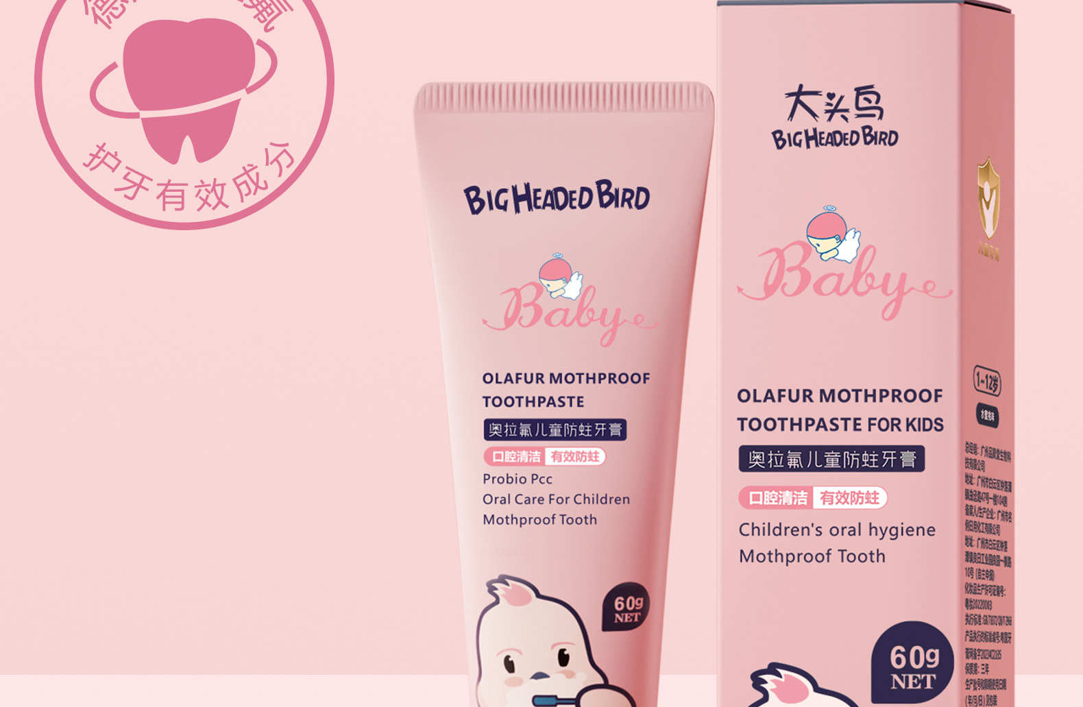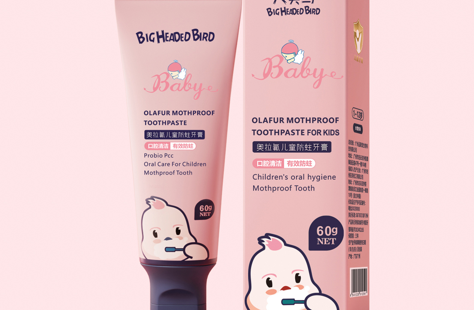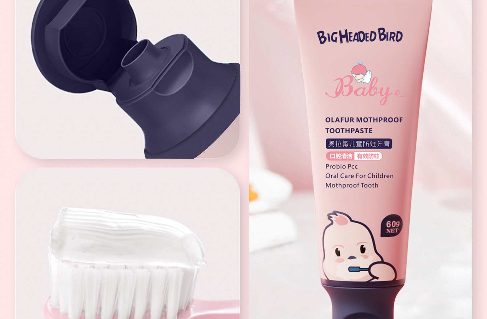 Big Head Bird Детская зубная паста Ола Фтор Чистящие зубы 1-12 лет