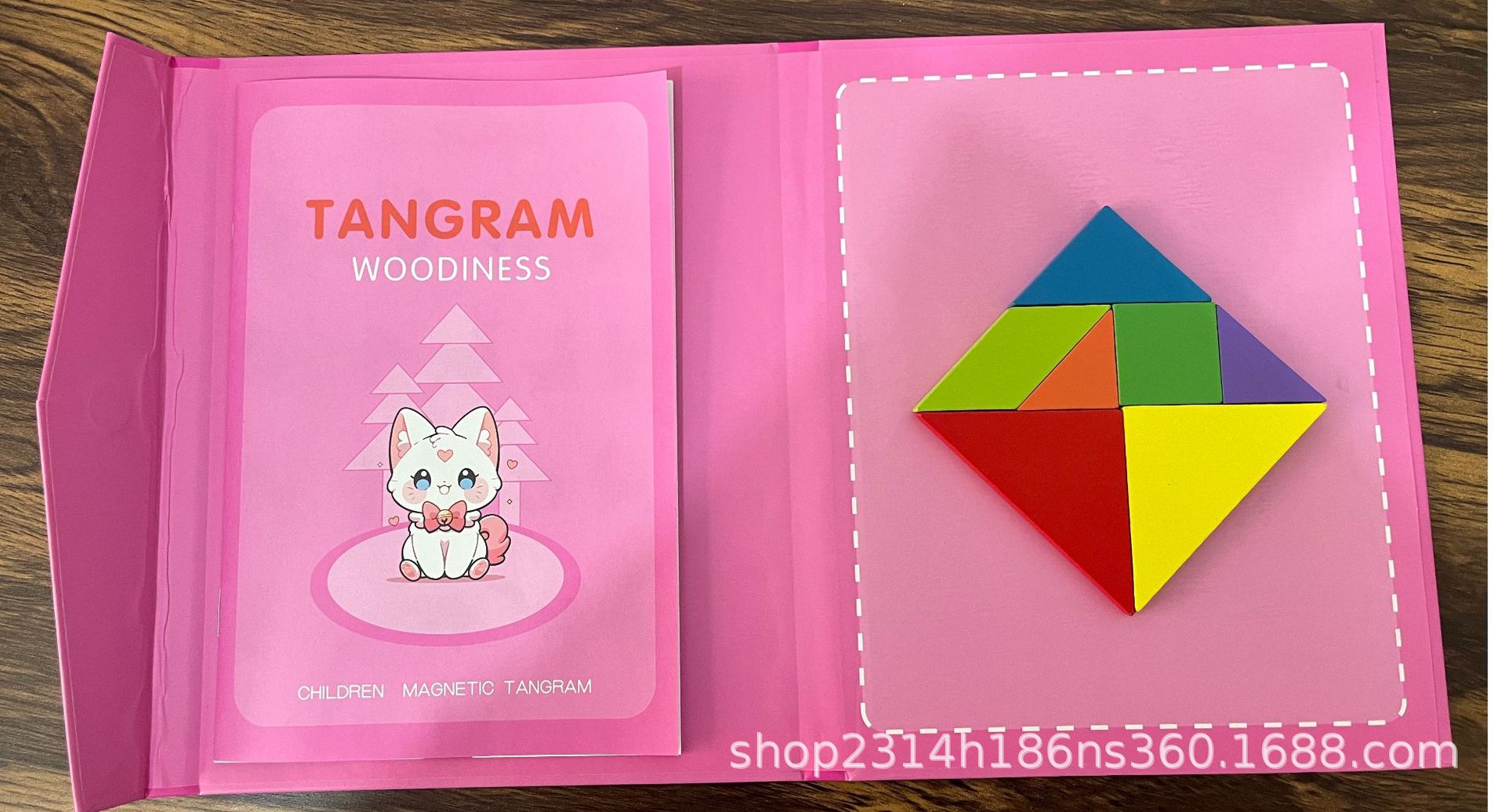 Деревянный танграм синий; Деревянный танграм розовый