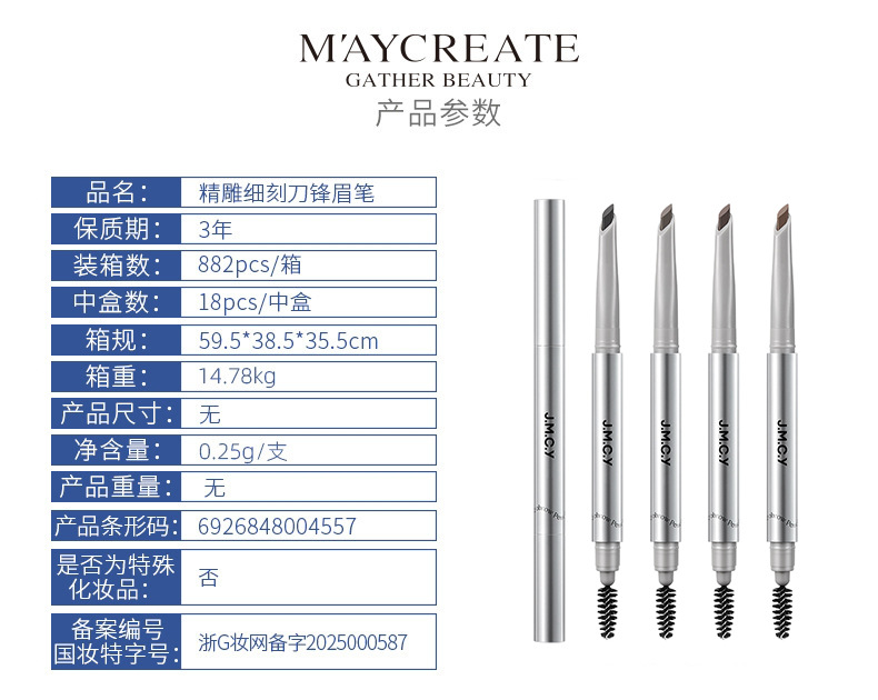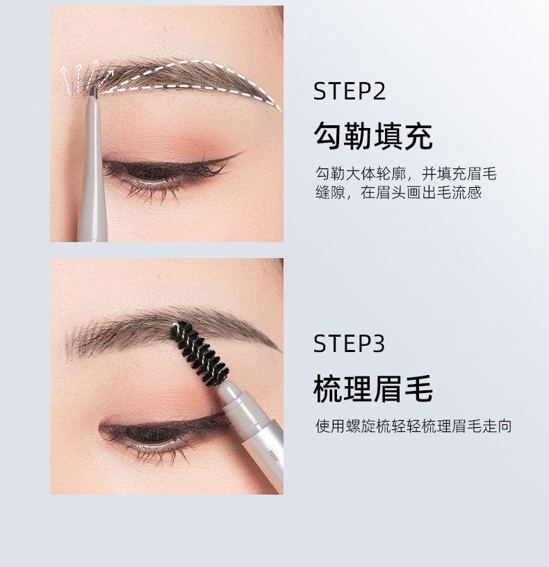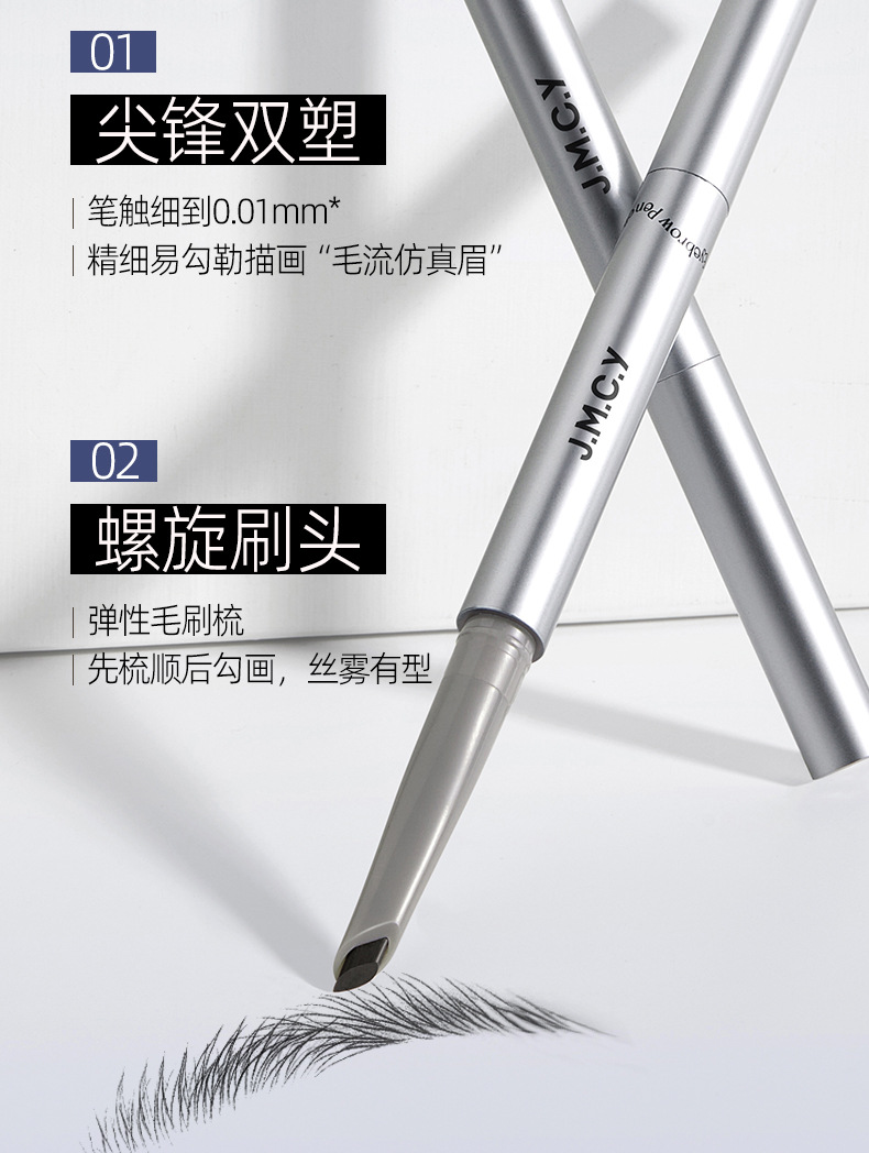 Двусторонний карандаш для бровей Jianmei Chuangyan, стойкий, водостойкий, устойчивый к поту, гладкий, не размазывается, легко наносится, не требует заточки.