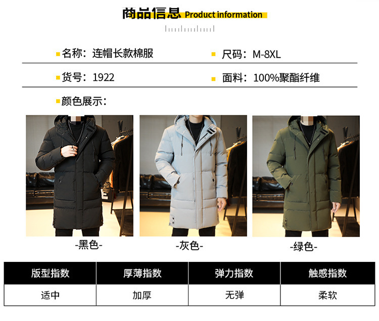 Длинное хлопковое пальто для мужчин зимой