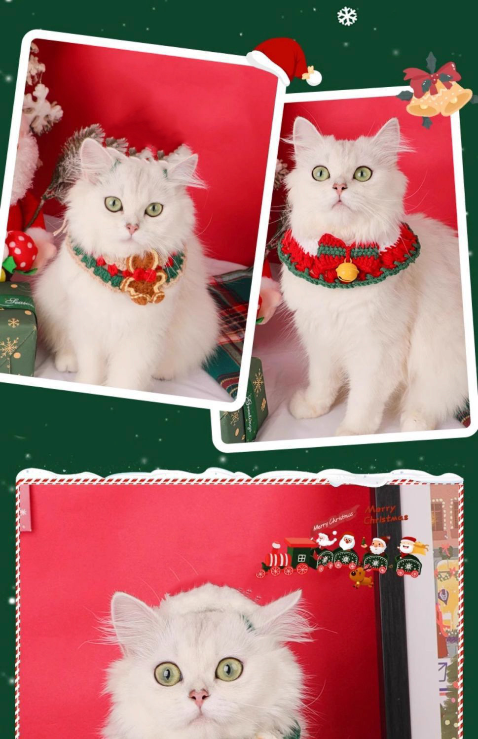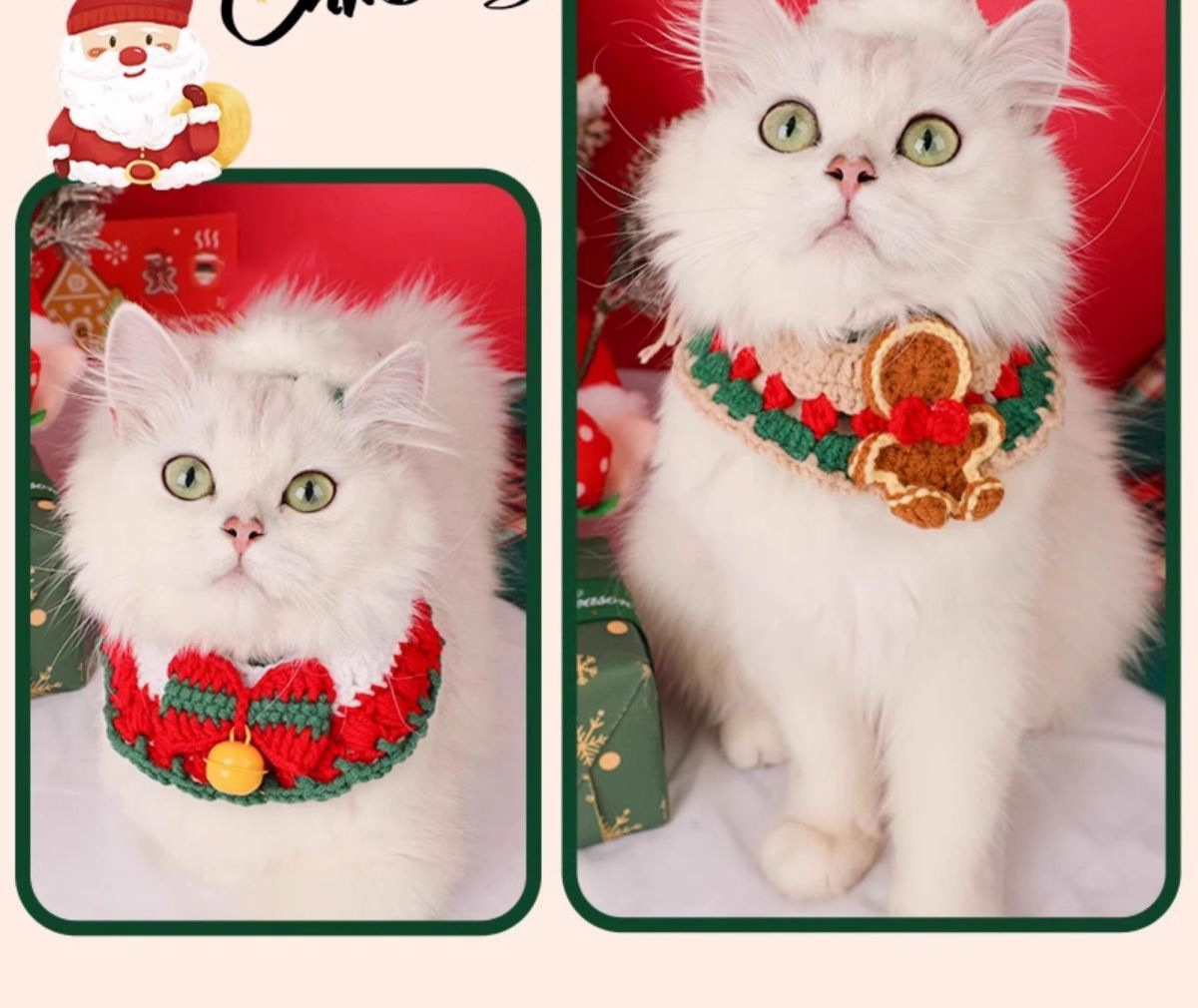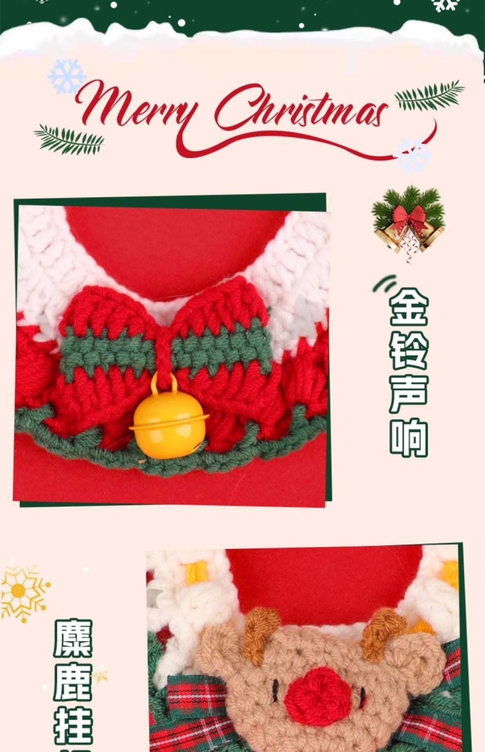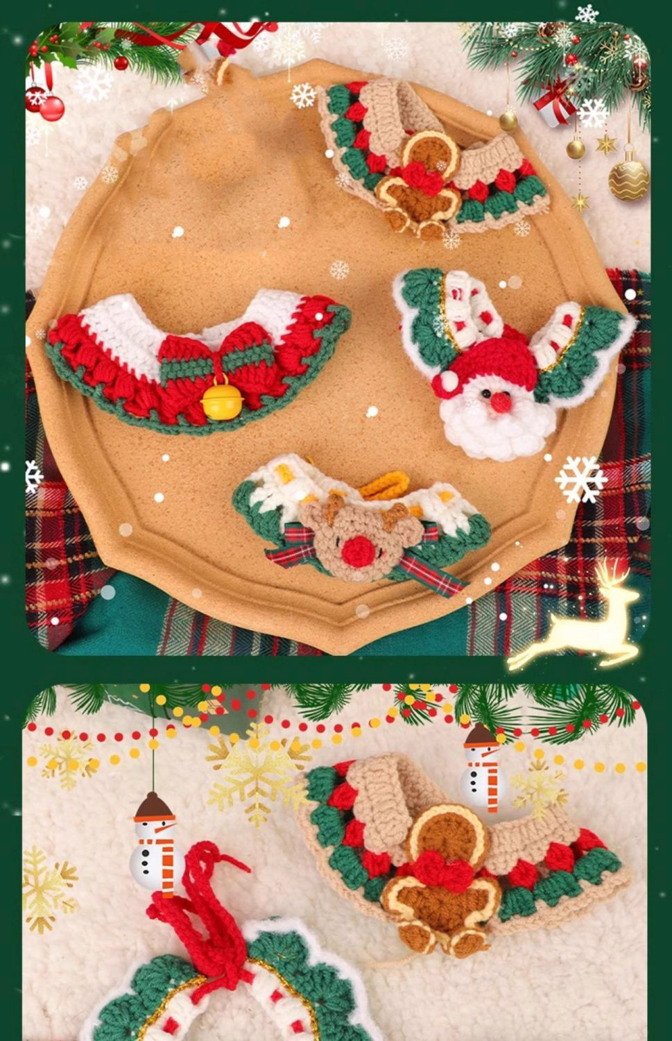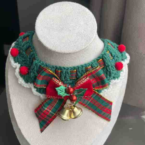 Куликовый колокольчик из меха; новогодний ошейник; Шарф Санты; Рождественский воротник-бантик; воротник пряничного человечка; воротник снеговика; воротник лося; Рождественский воротник из ленты; красный рисовый воротник-лук