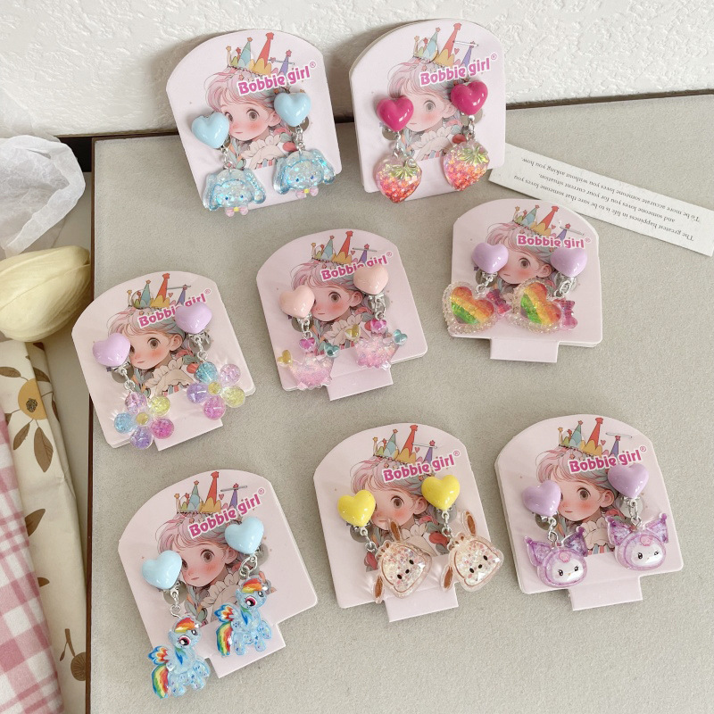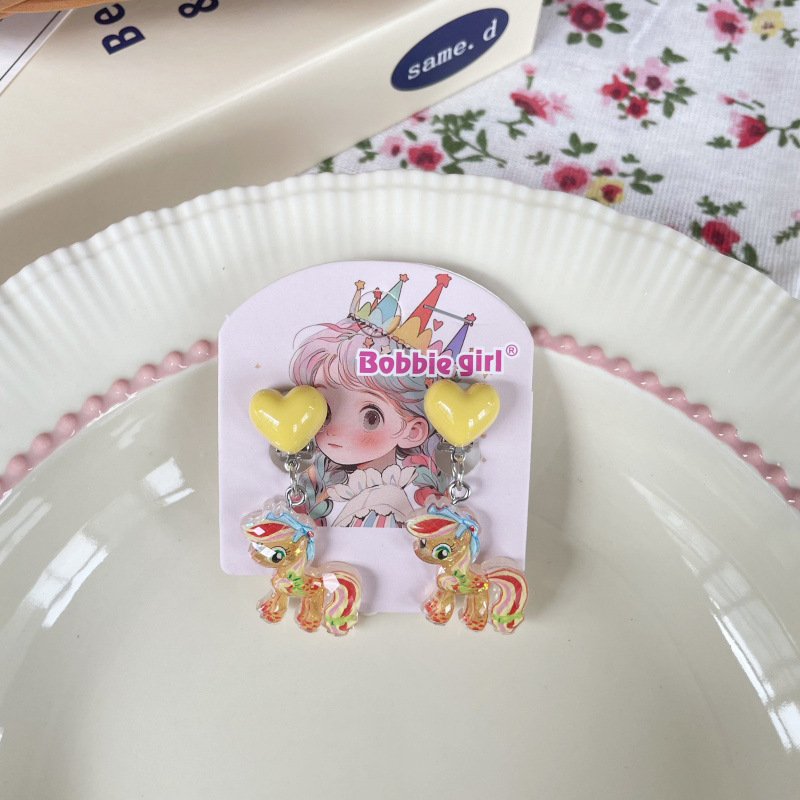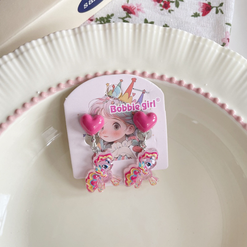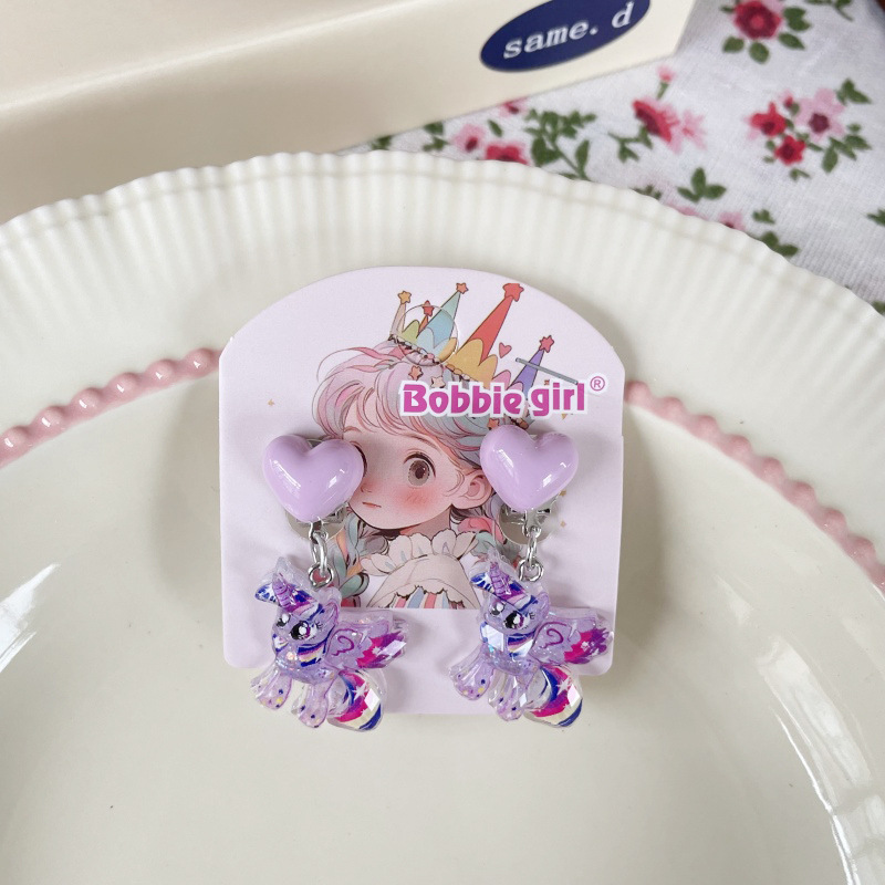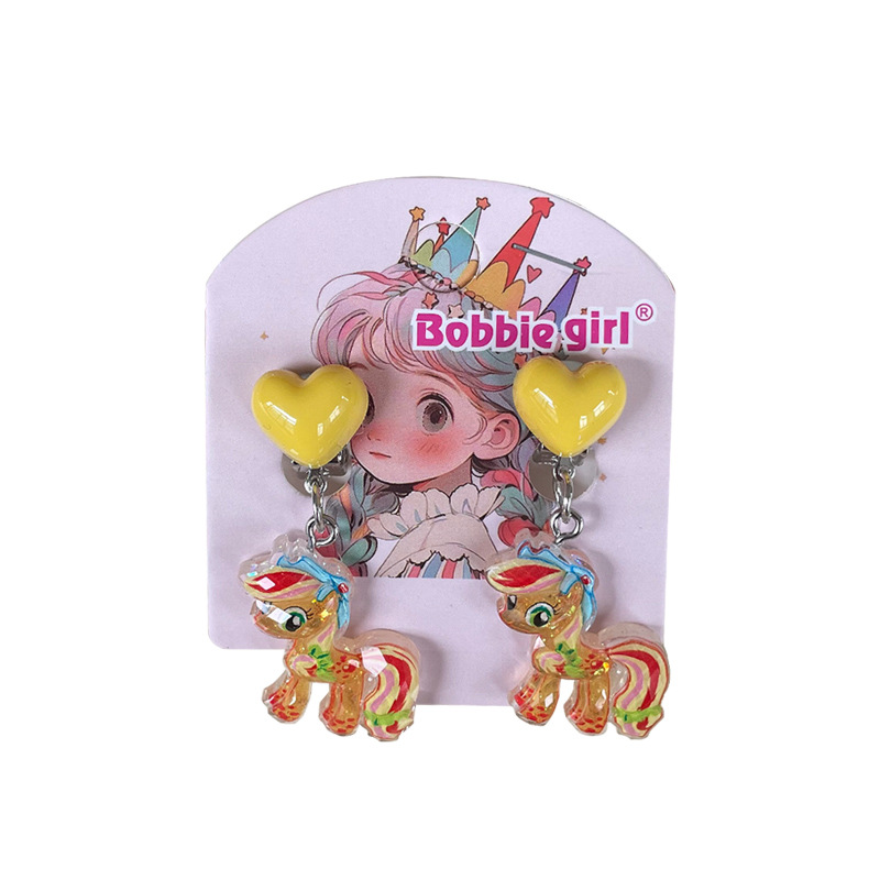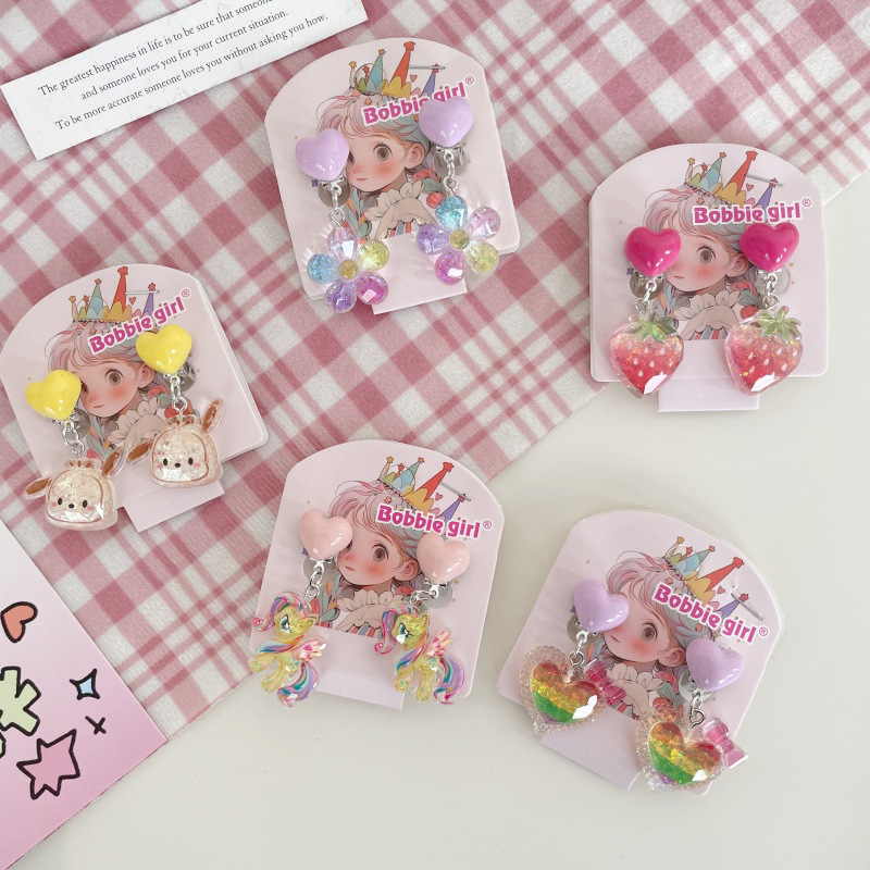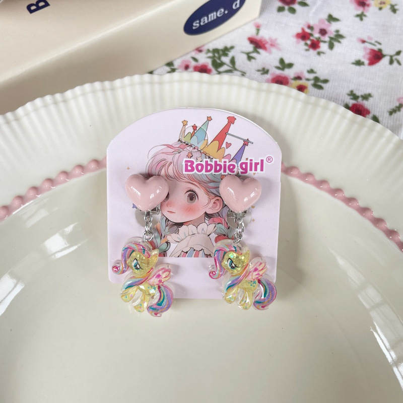 Встряхните ту же детскую пони Поли мультфильм Ушные зажимы для девочек без ушей, чтобы предотвратить боль, поддельные серьги милые сладкие украшения