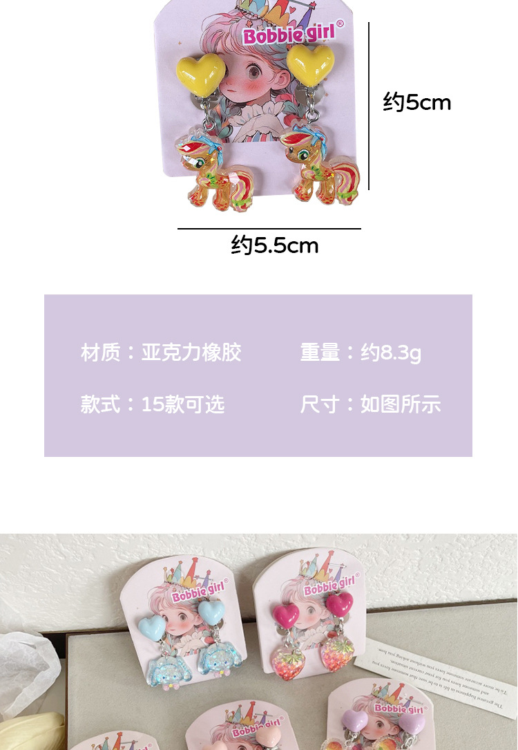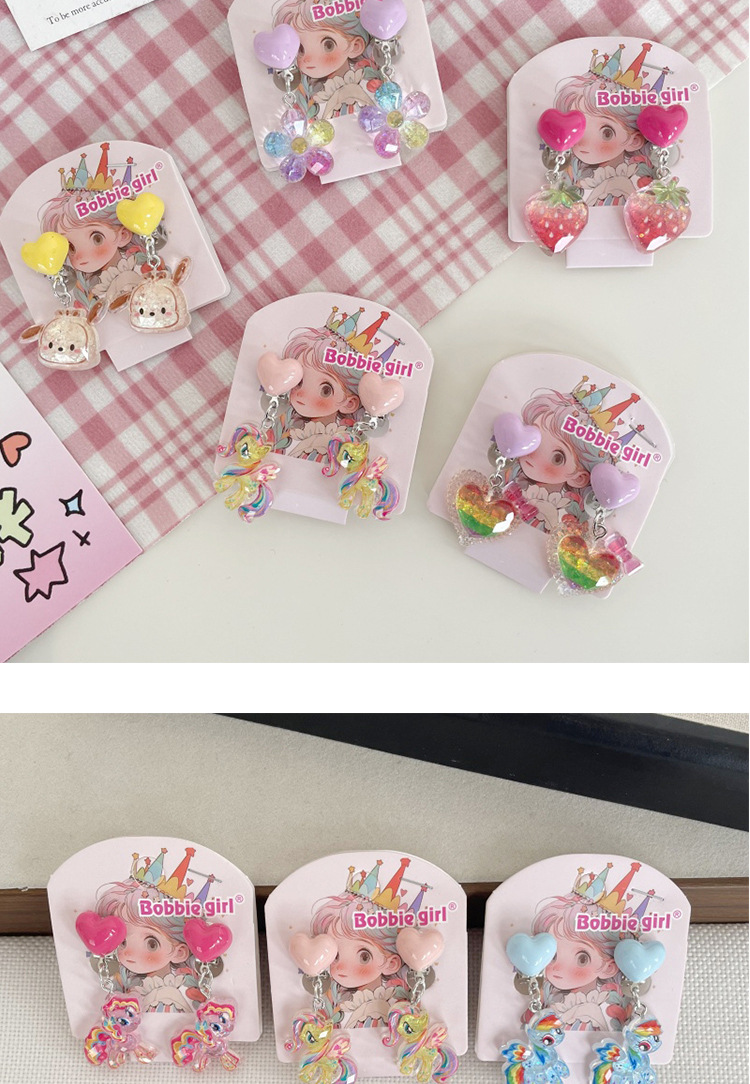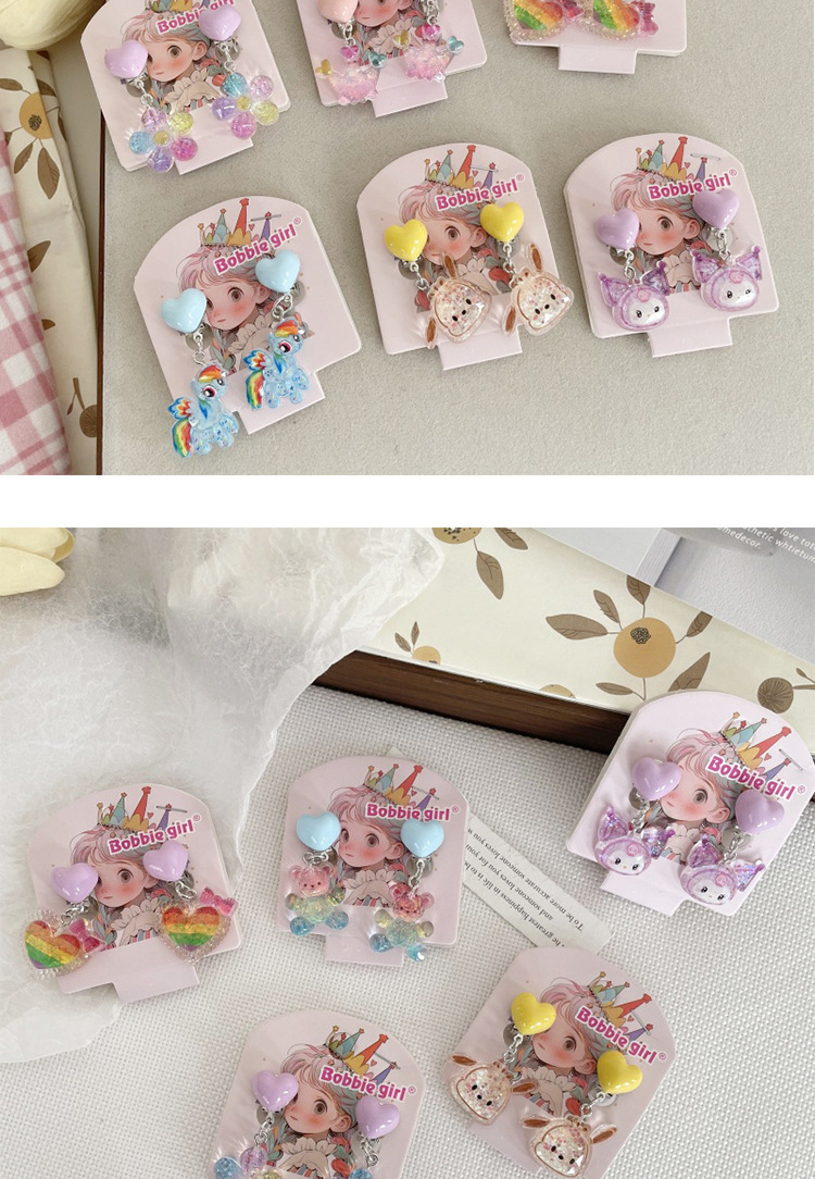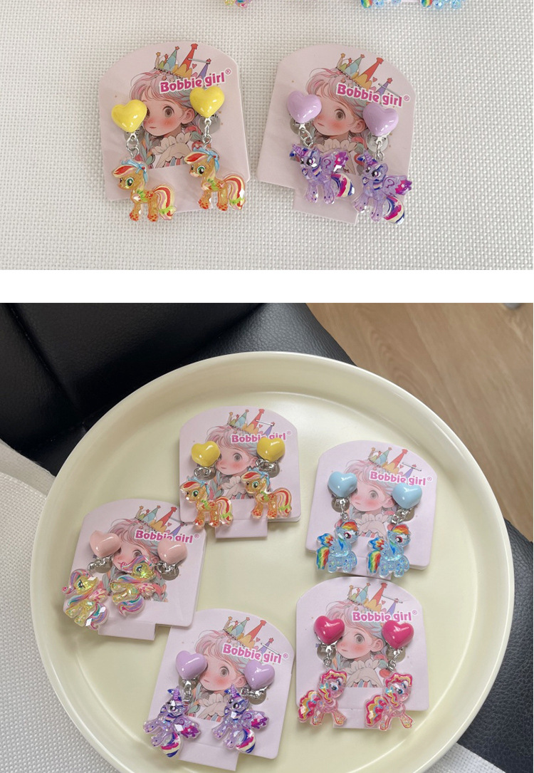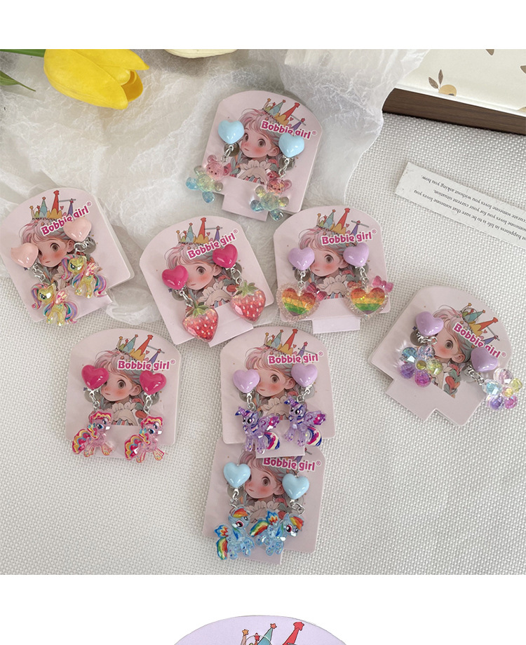 Встряхните ту же детскую пони Поли мультфильм Ушные зажимы для девочек без ушей, чтобы предотвратить боль, поддельные серьги милые сладкие украшения