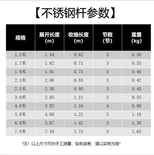 1.5m (три четверти); 1.7m (три четверти); 1.9m (три четверти); 2.1m (три четверти); 2.5m (три четверти); 3m (три четверти); 4m (четыре четверти); 5m (пять фестивалей); 6m (пять фестивалей); 7m (пять фестивалей); 1.2m (две секции); 1.5m (две секции); 2.1m (четыре четверти); 2.5m (четыре четверти); 3m (четыре четверти); 4m (пять фестивалей); 5m (шесть разделов); 6m (шесть разделов); 7m (шесть разделов)