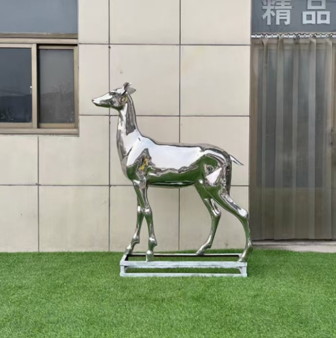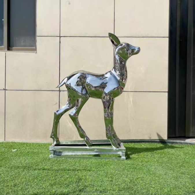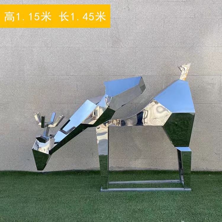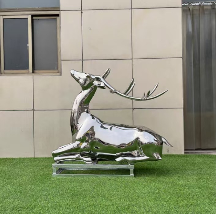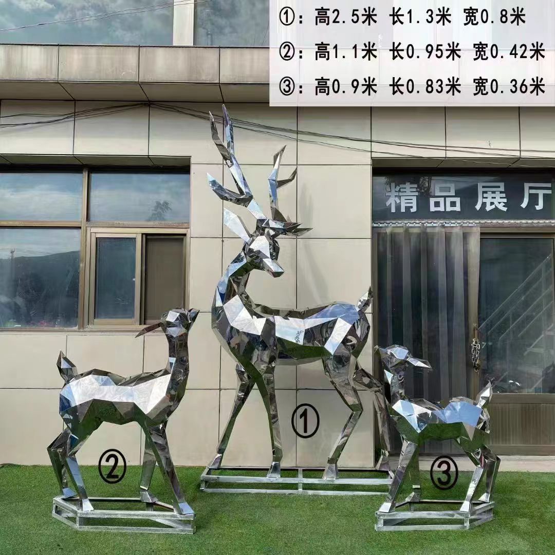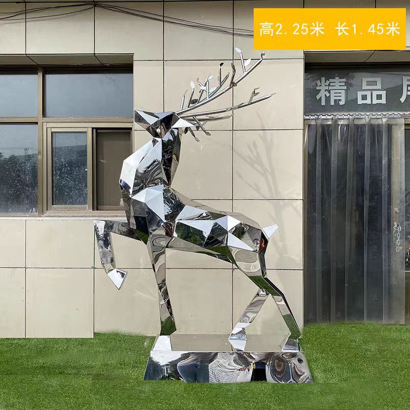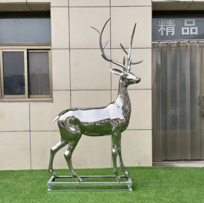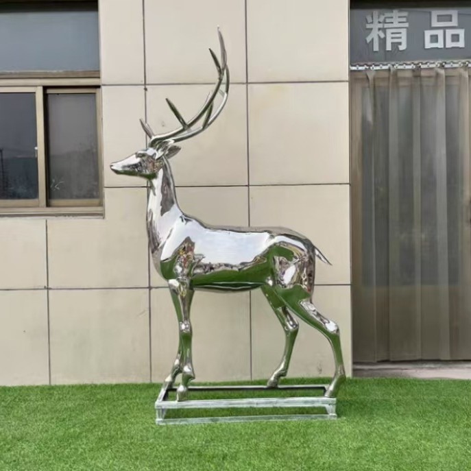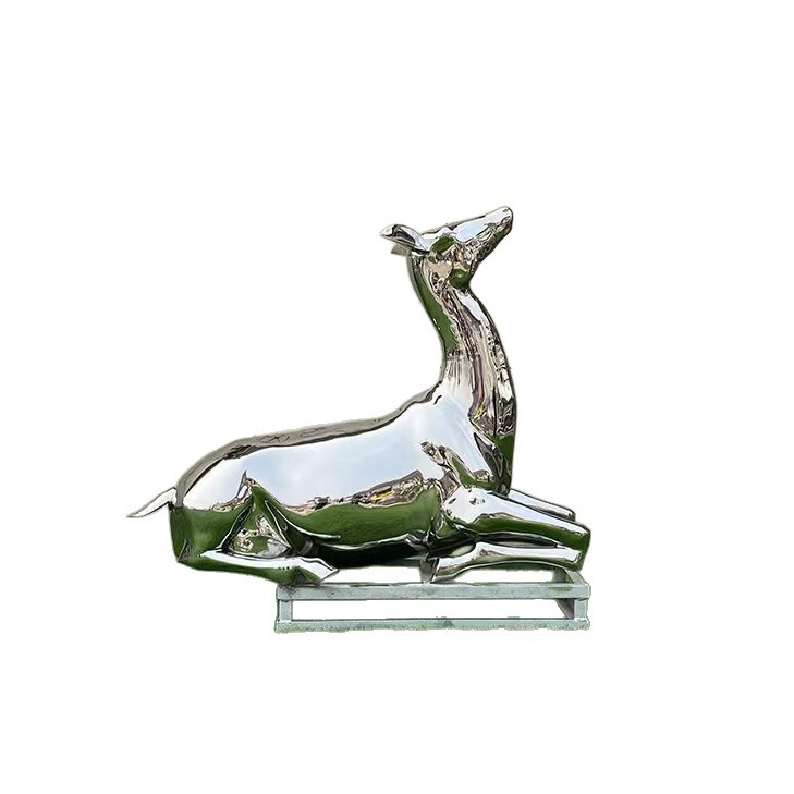 Скульптура оленя из нержавеющей стали для улицы, белая стальная фигура сика, металлическая зеркальная поверхность, украшение для газона, большой ландшафтный декор