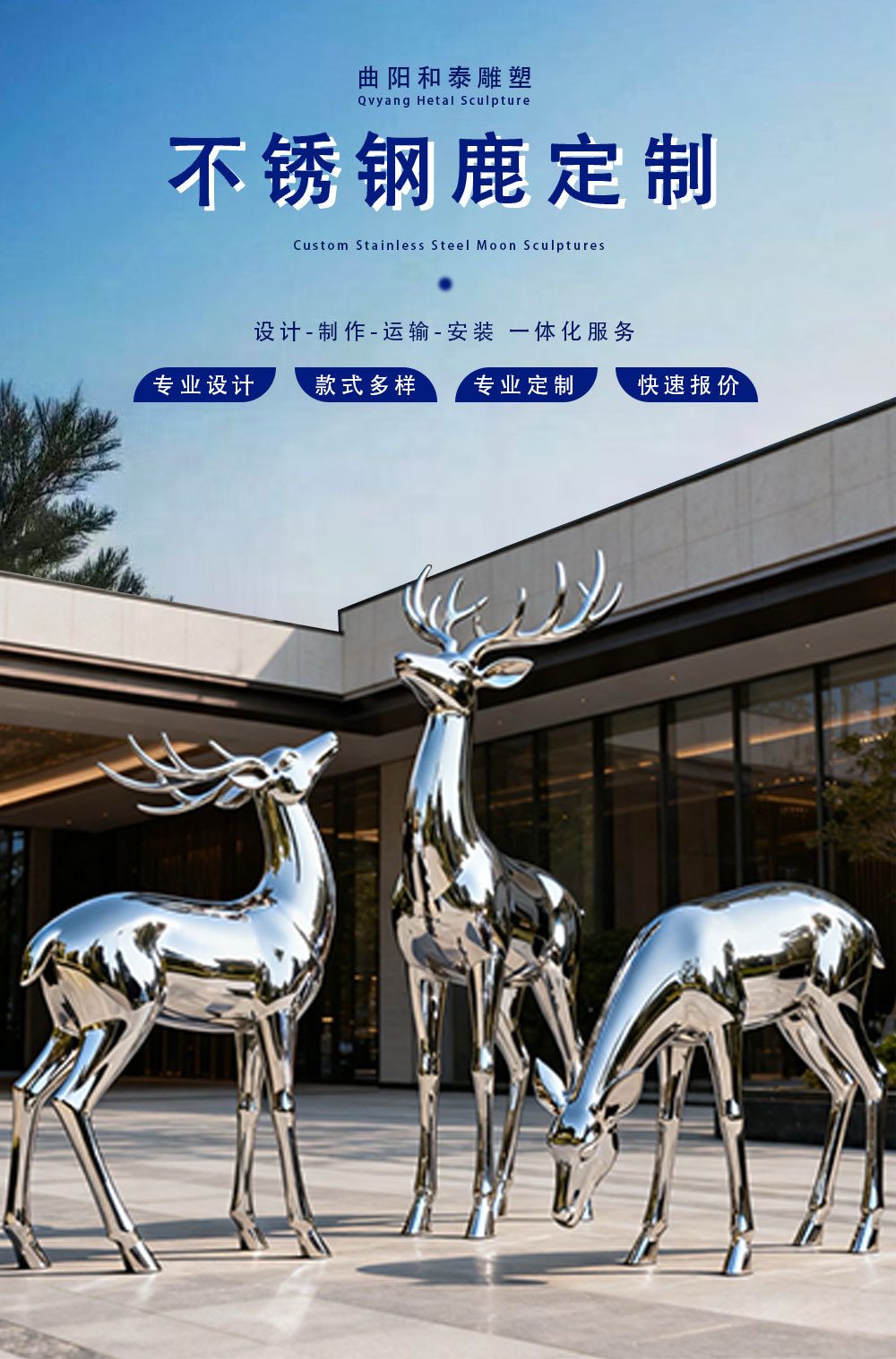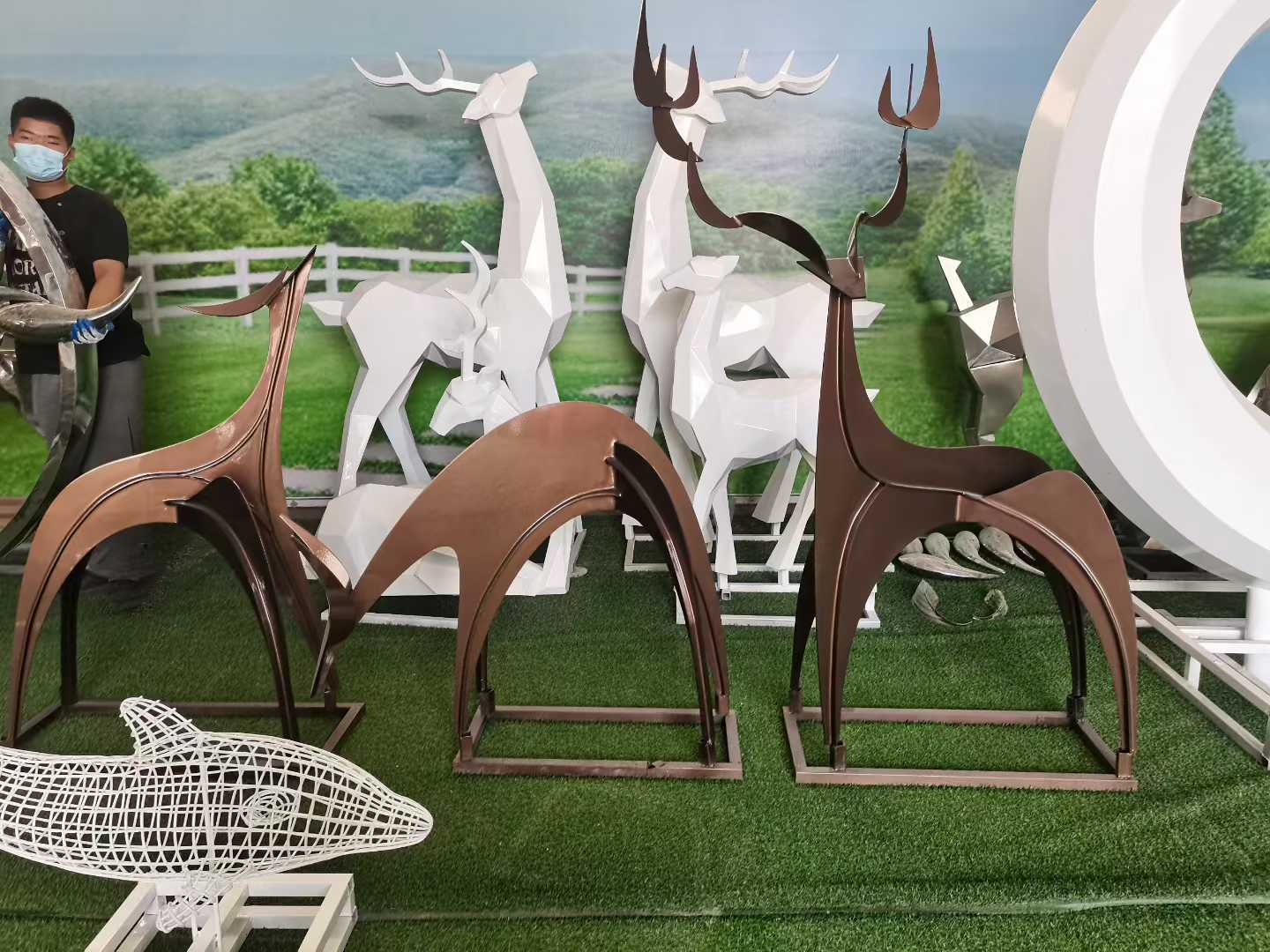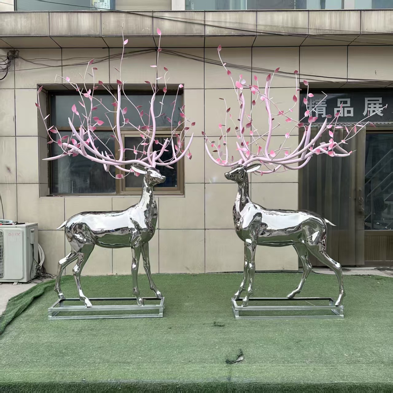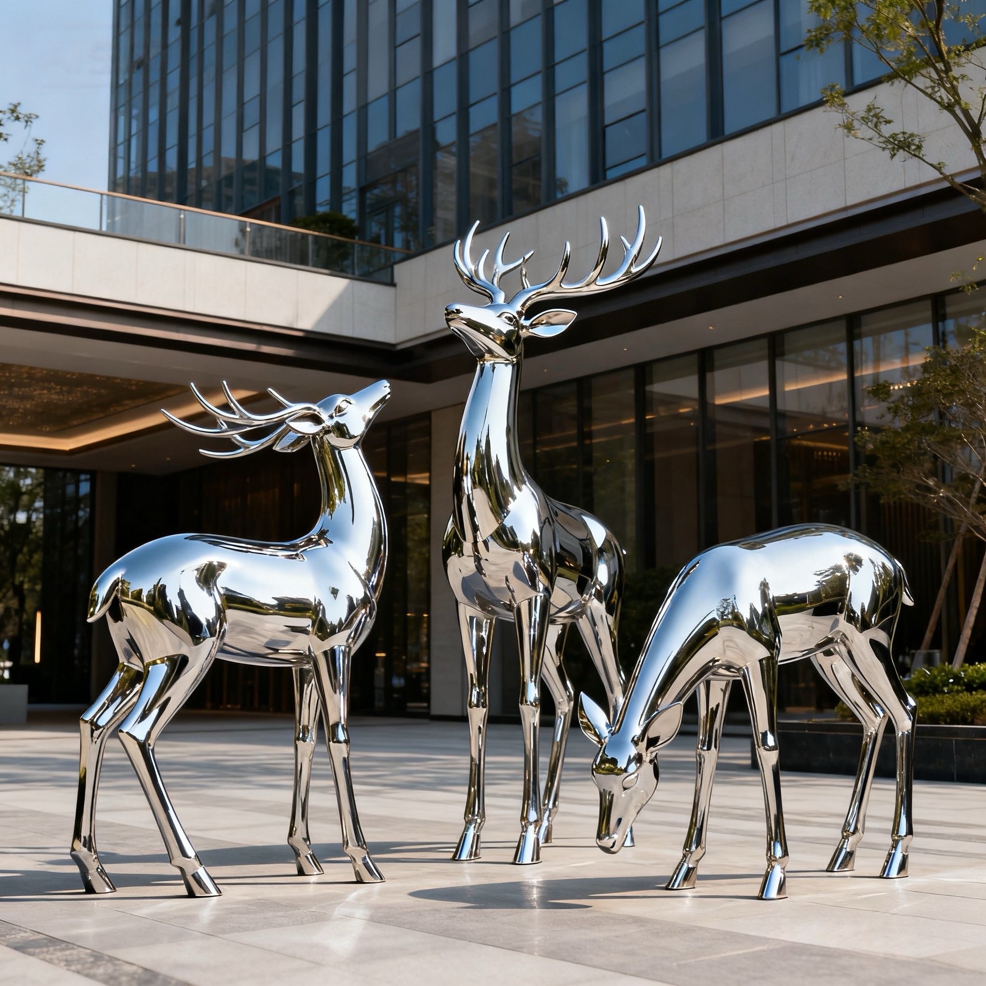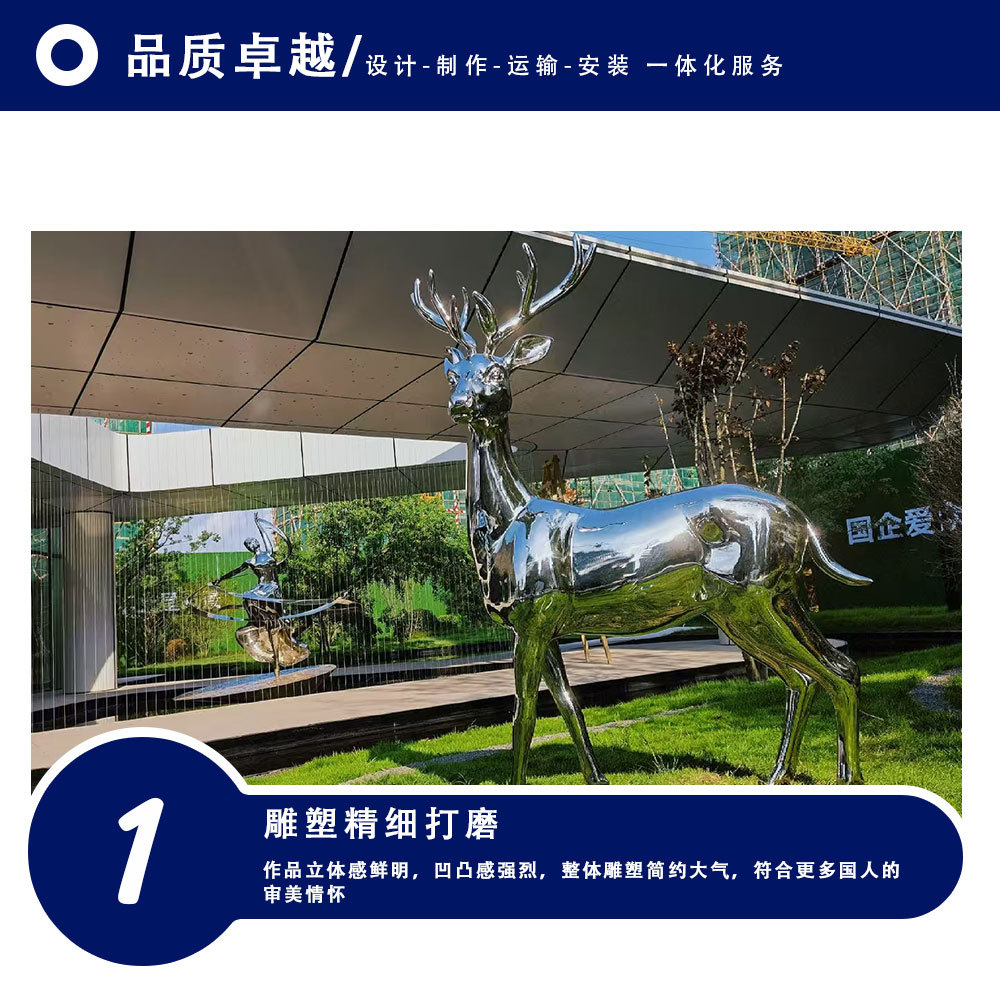 Скульптура оленя из нержавеющей стали для улицы, белая стальная фигура сика, металлическая зеркальная поверхность, украшение для газона, большой ландшафтный декор