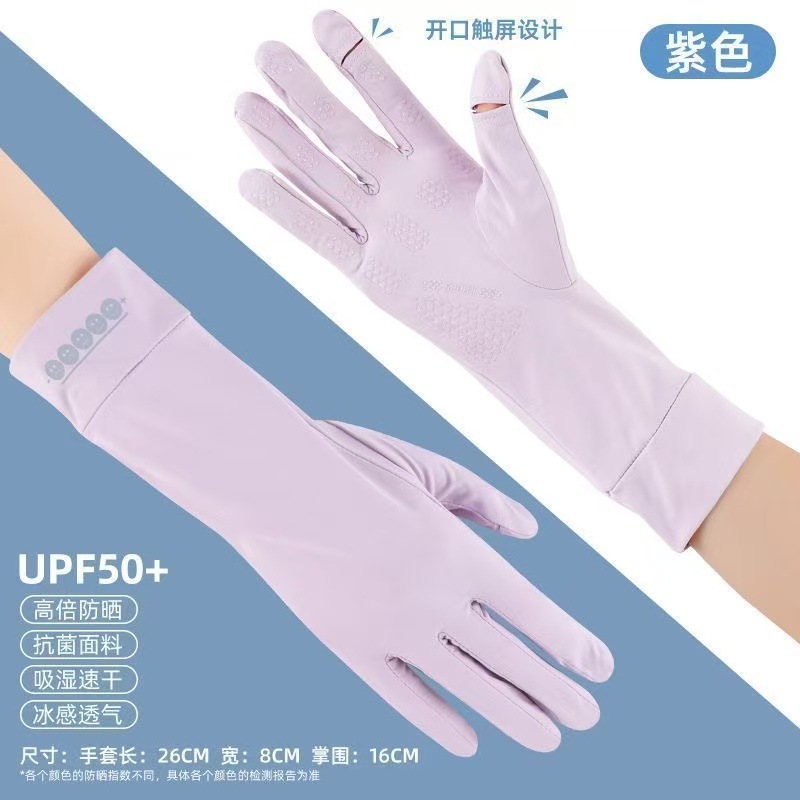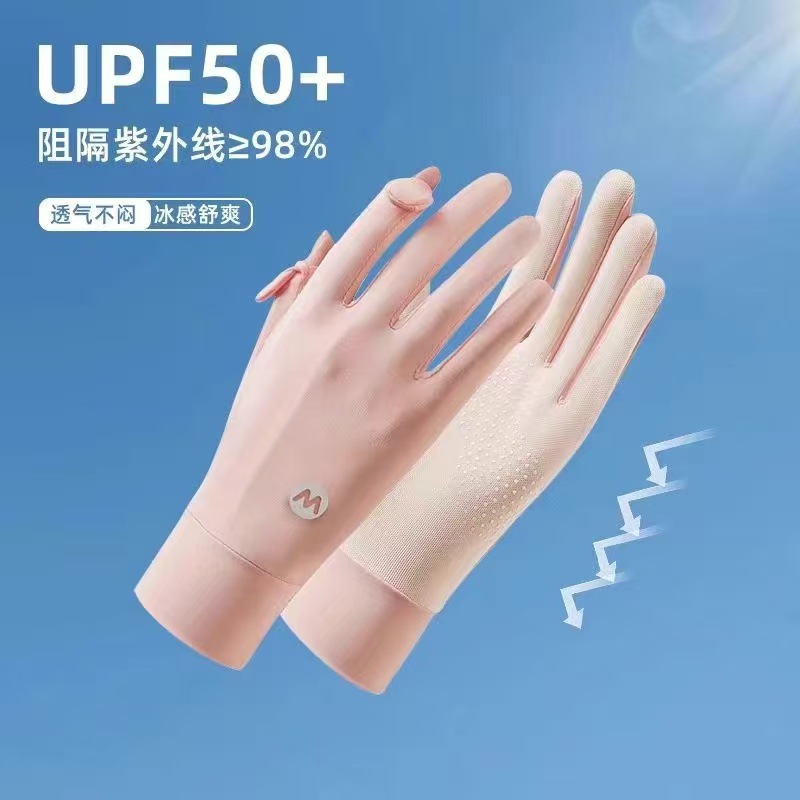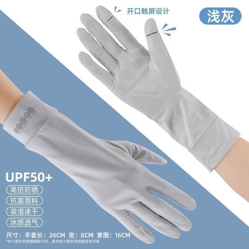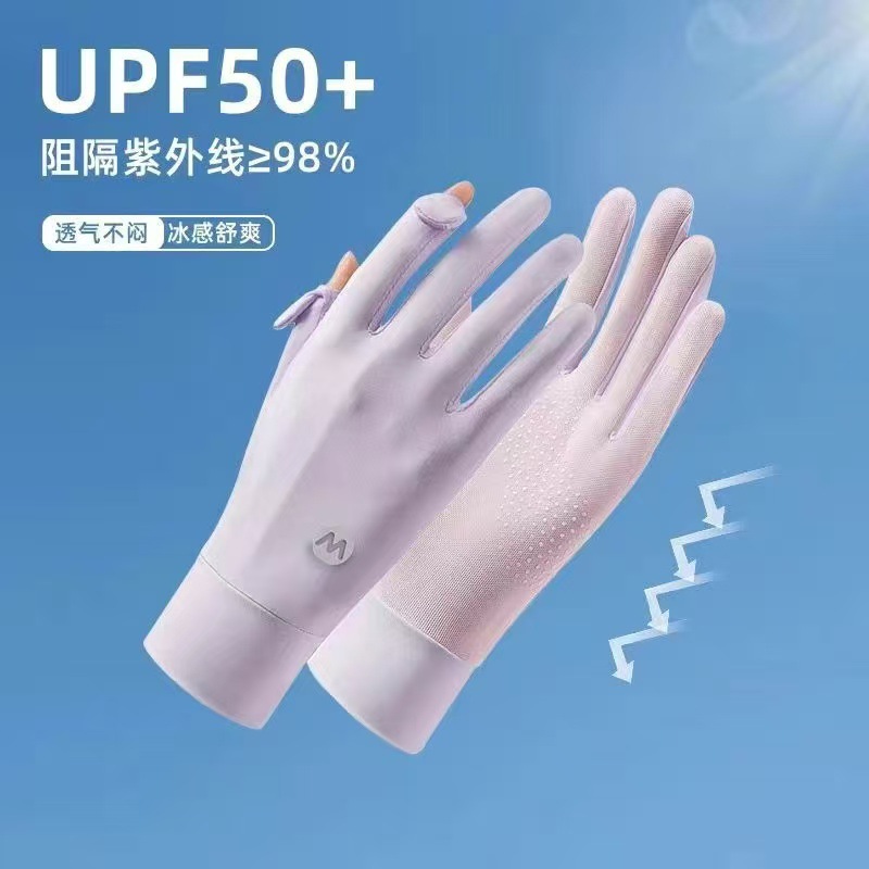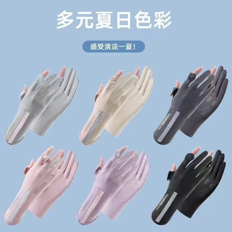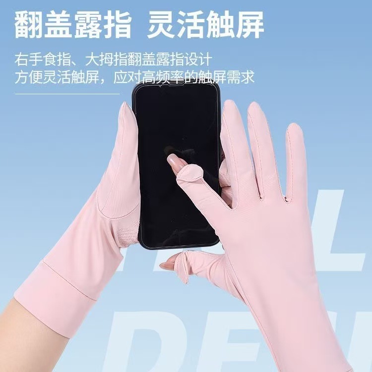 Женские солнцезащитные перчатки из ледяного шелка, тонкие, дышащие, нескользящие, подходят для вождения и использования электромобилей, защита от ультрафиолета, дизайн с открытыми двумя пальцами, совместимы с сенсорными экранами.