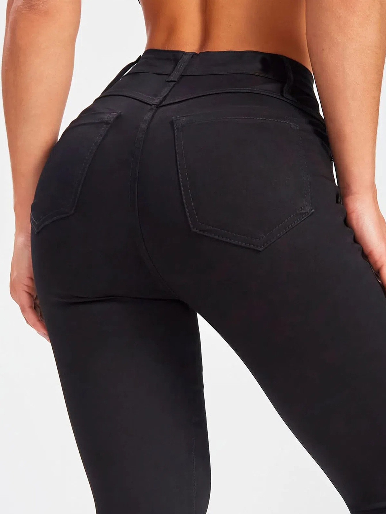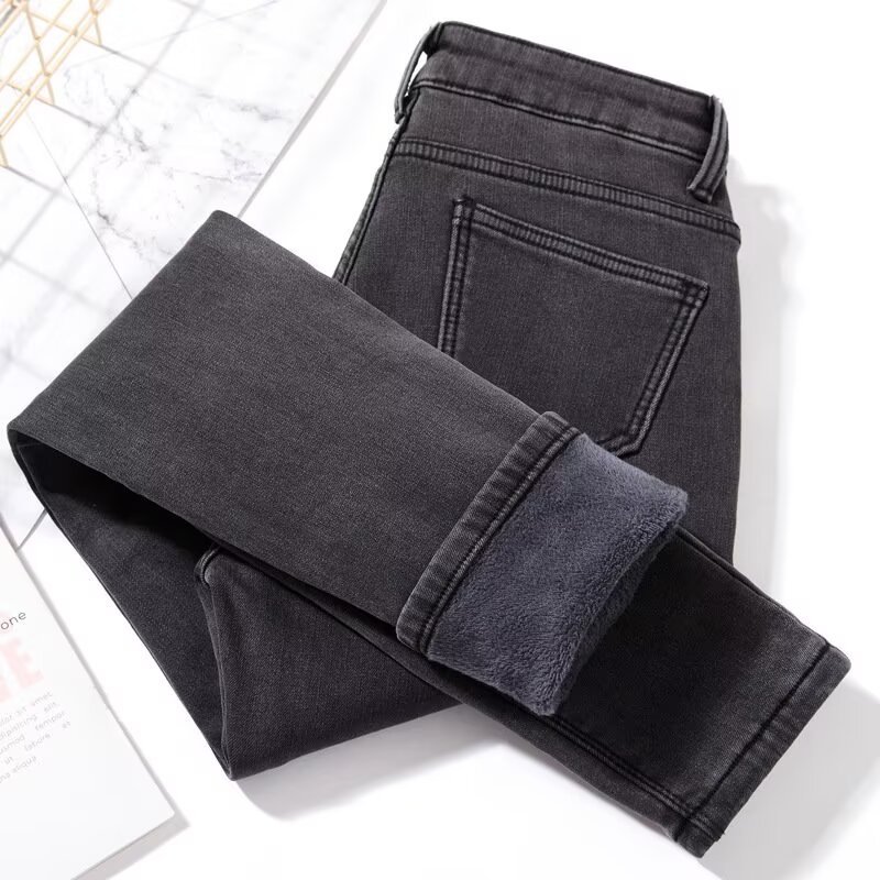 Европейская и американская трансграничная весна и осень новая женская средняя талия стройная эластичные черные узкие джинсы эластичные европейские и американские эластичные