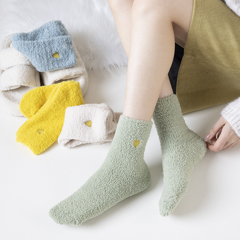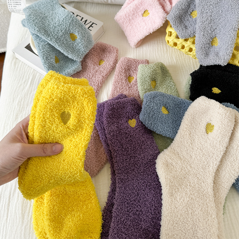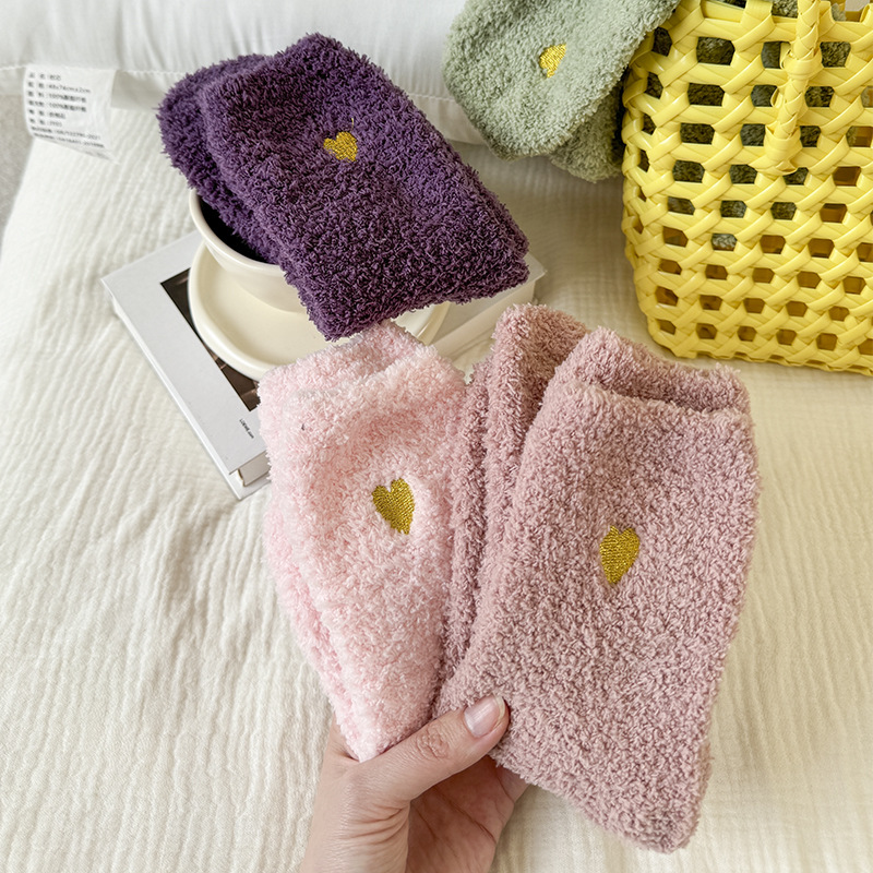 Трансграничный зимний коралловый бархат Японская вышивка любовь утолщенные теплые напоенные носки