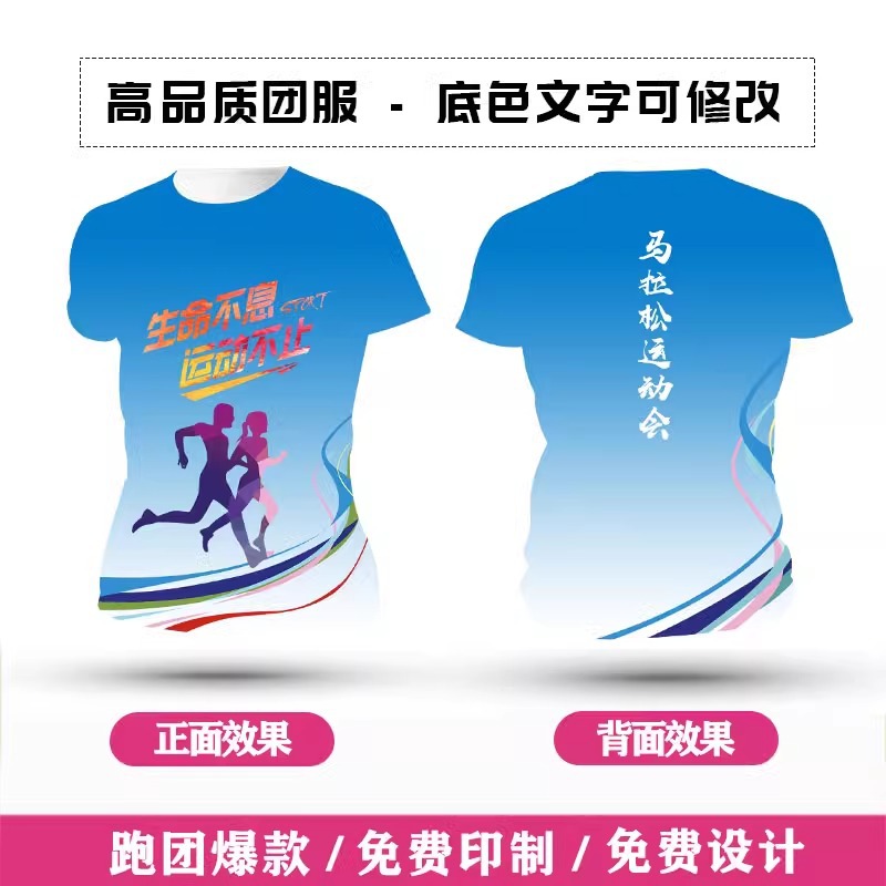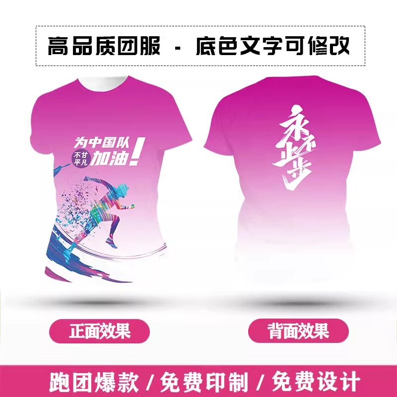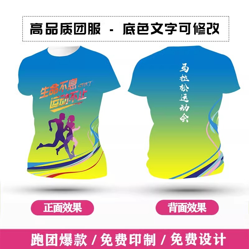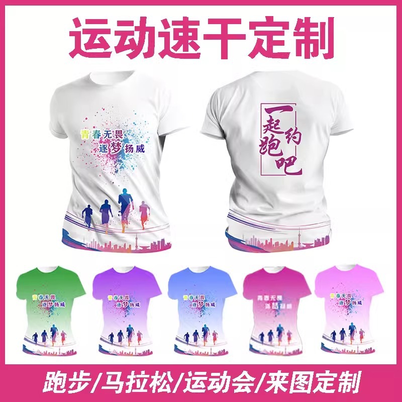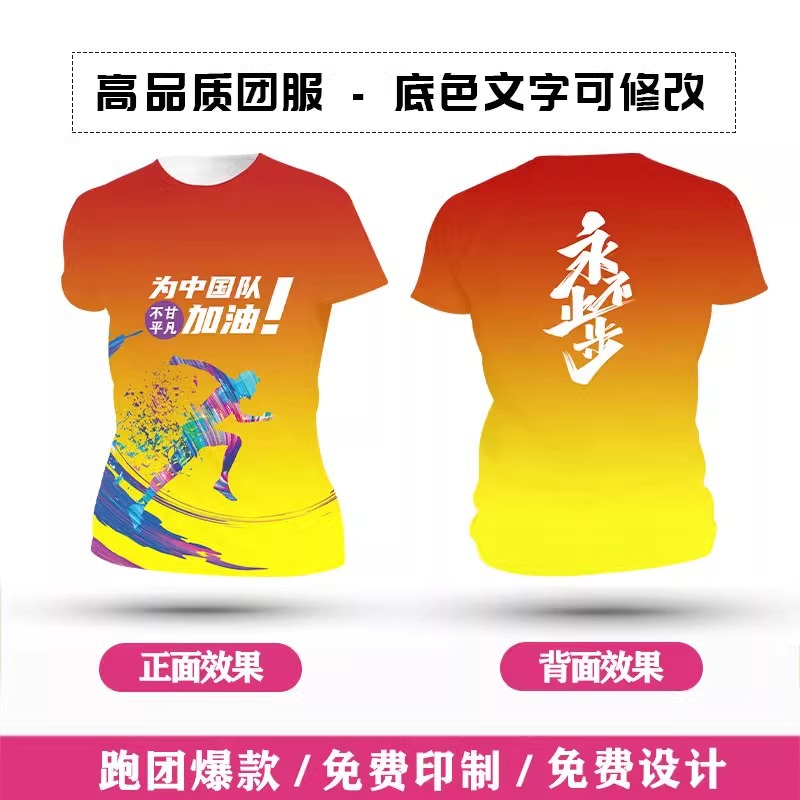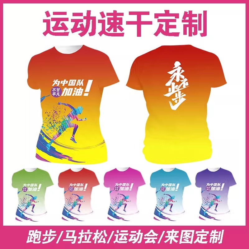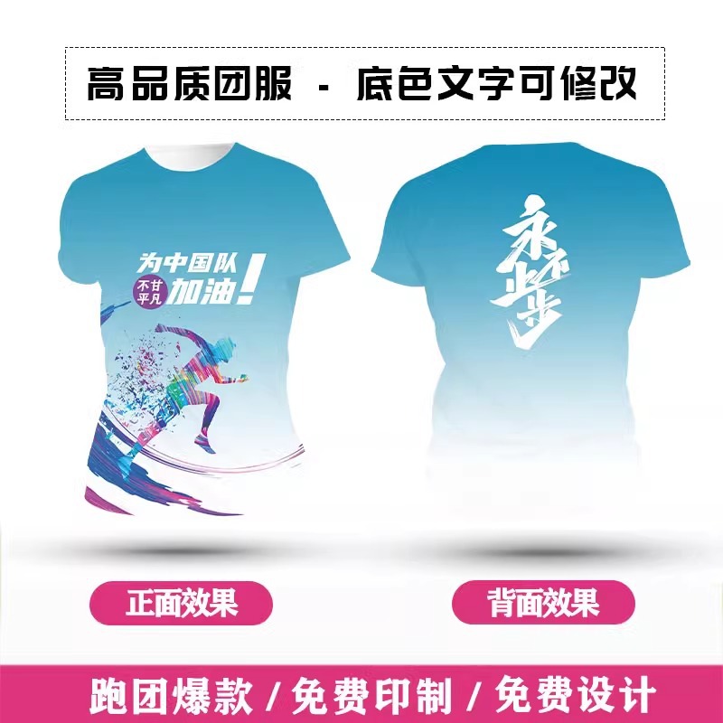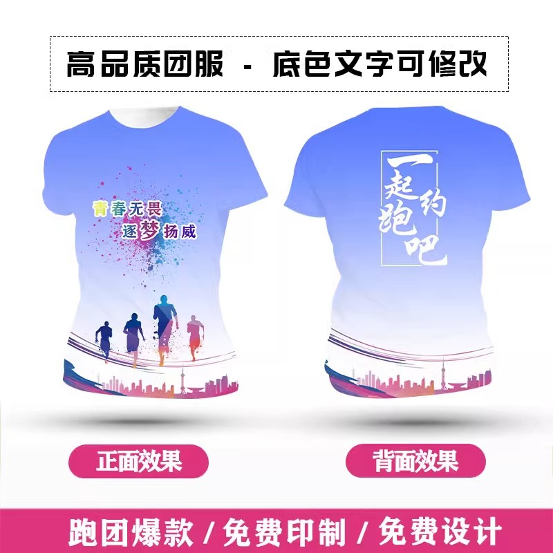 Футболка для командной формы с принтом по всей поверхности, спортивная футболка с круглым вырезом и коротким рукавом для марафона, быстросохнущая, с логотипом и модным принтом.