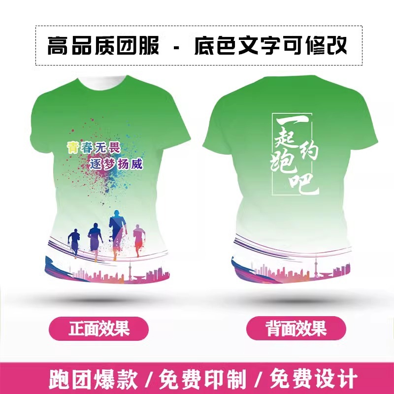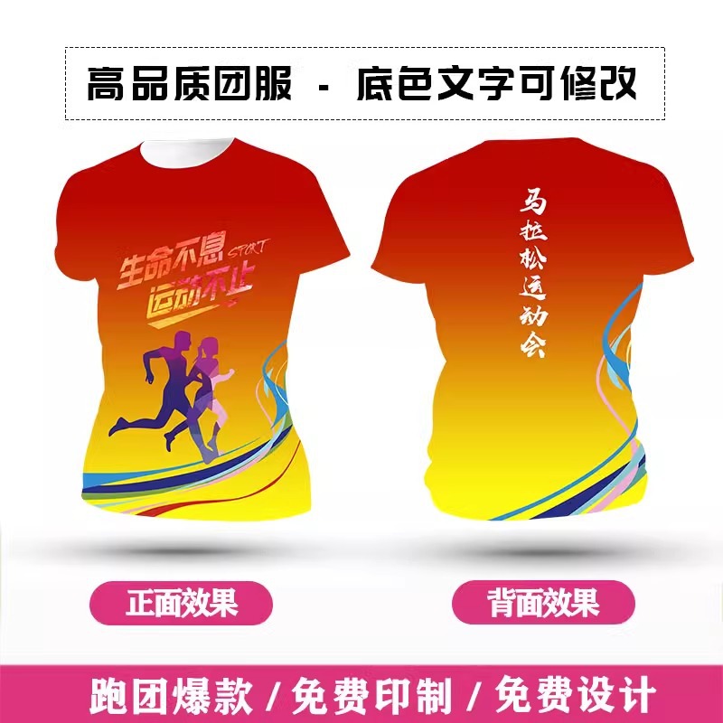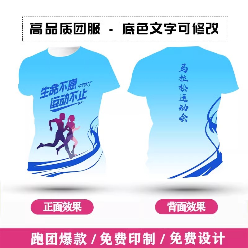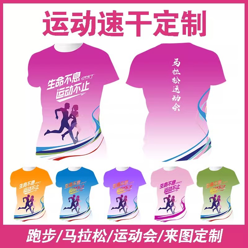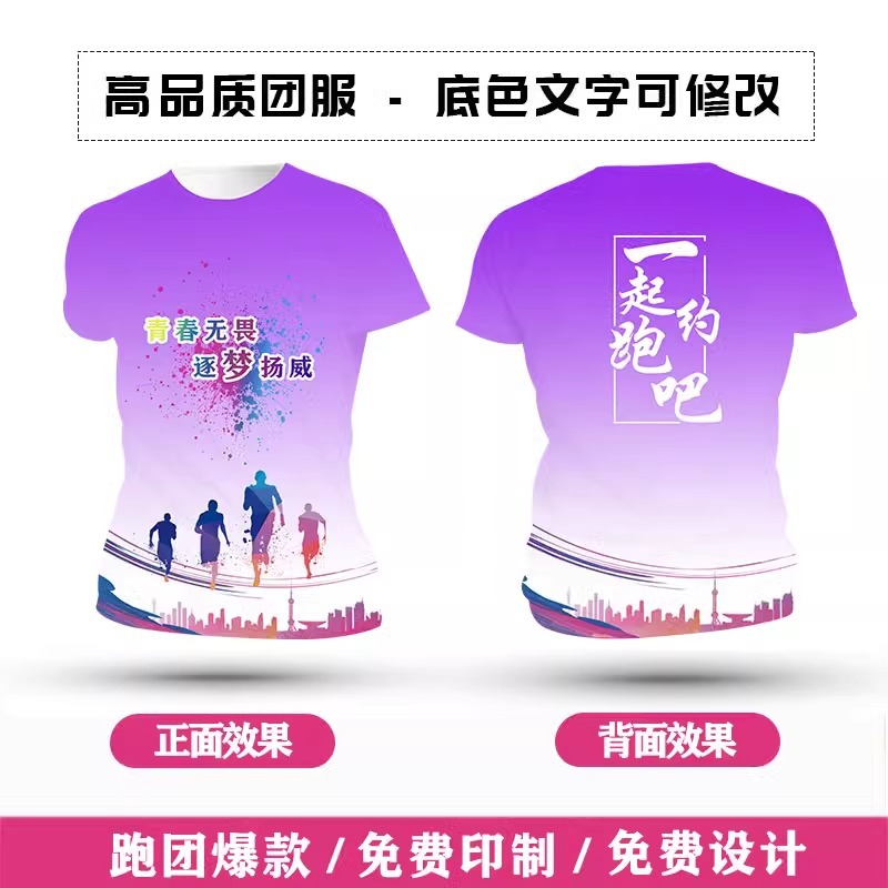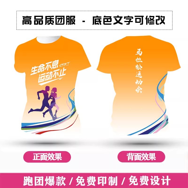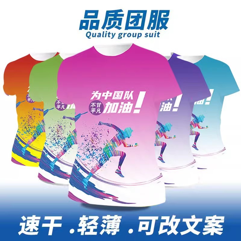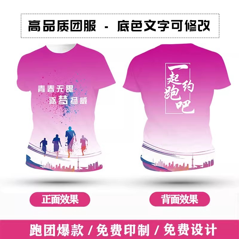 Футболка для командной формы с принтом по всей поверхности, спортивная футболка с круглым вырезом и коротким рукавом для марафона, быстросохнущая, с логотипом и модным принтом.