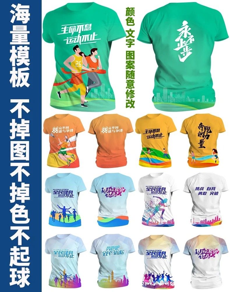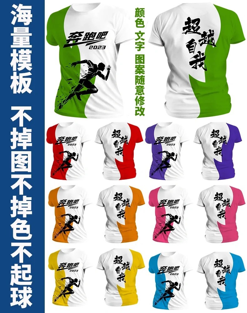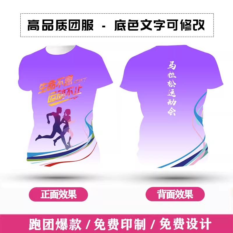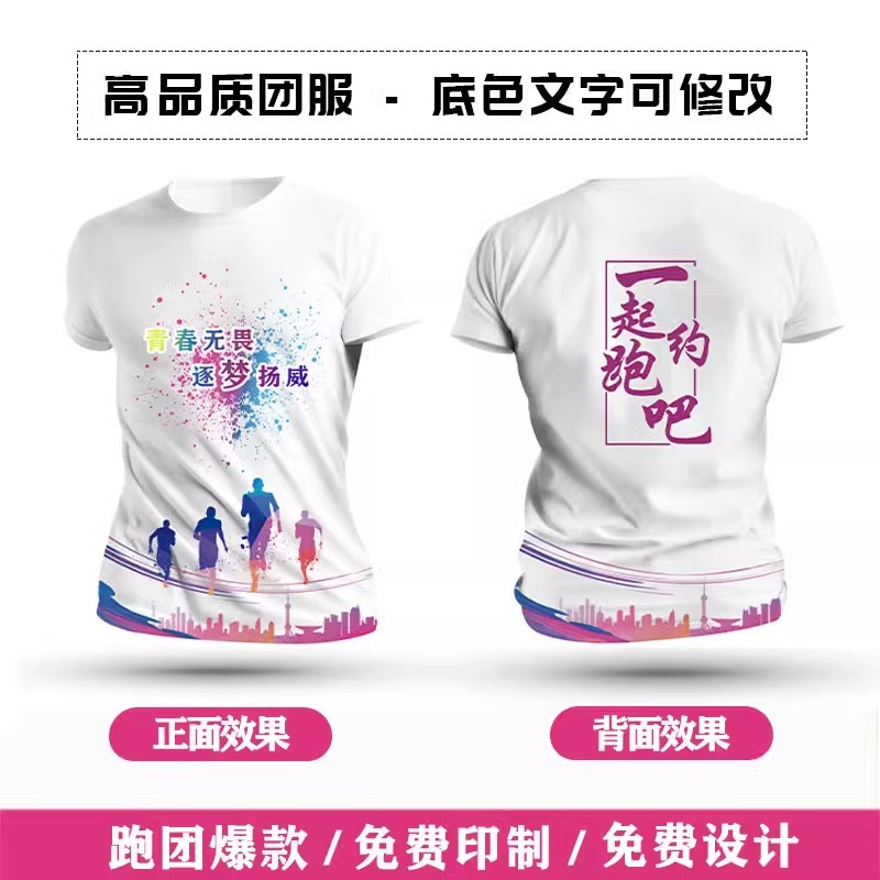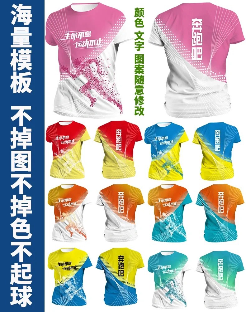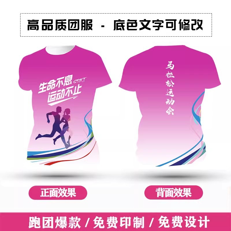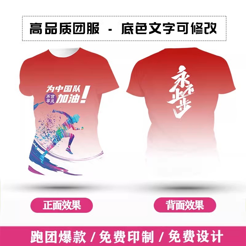 Футболка для командной формы с принтом по всей поверхности, спортивная футболка с круглым вырезом и коротким рукавом для марафона, быстросохнущая, с логотипом и модным принтом.