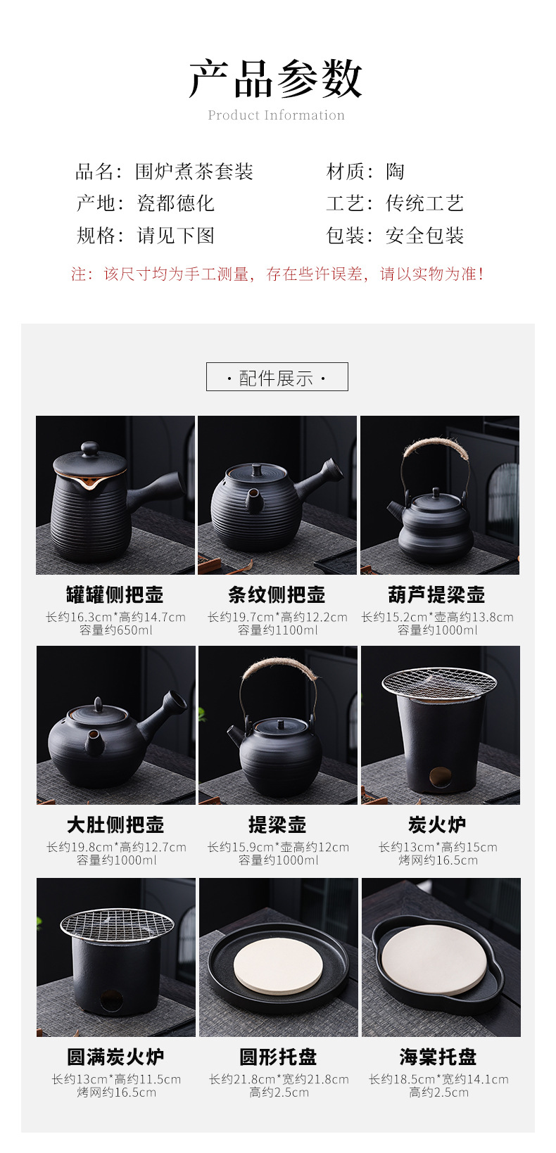 Черный гончарный горшок с крышкой 650IL + высокая угольная печь; Черный гончарный горшок с крышкой 650 мл + низкоуглеродистая плита; Чайник Fulu Liang из черной керамики + короткая угольная плита 1000 мл; Чайник Fulu Liang из черной керамики, 1000 мл + высокая угольная плита; Чайник с боковой ручкой из черной керамики, 1000 мл + печь с низким содержанием углерода; Чайник из черной керамики с боковой ручкой, 1100 мл + высокая угольная плита; Чайник с черной керамической резьбой и боковой ручкой, 1100 мл + низкоуглеродистая плита; Чайник с черной керамической резьбой и боковой ручкой, 1100 мл + высокая угольная плита; Чайник Yuanrong из черной керамики + печь с низким содержанием углерода 1000 мл; Чайник Yuanrong из черной керамики + высокая угольная плита 1000 мл