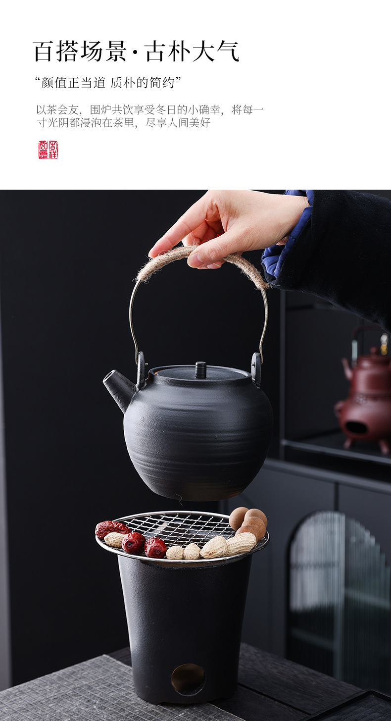 Грубый глиняный горшок, чайная плита, набор открытый кемпинг, чайник, вареный чайник, спирт, теплый чай, чайная печь, угольная печь