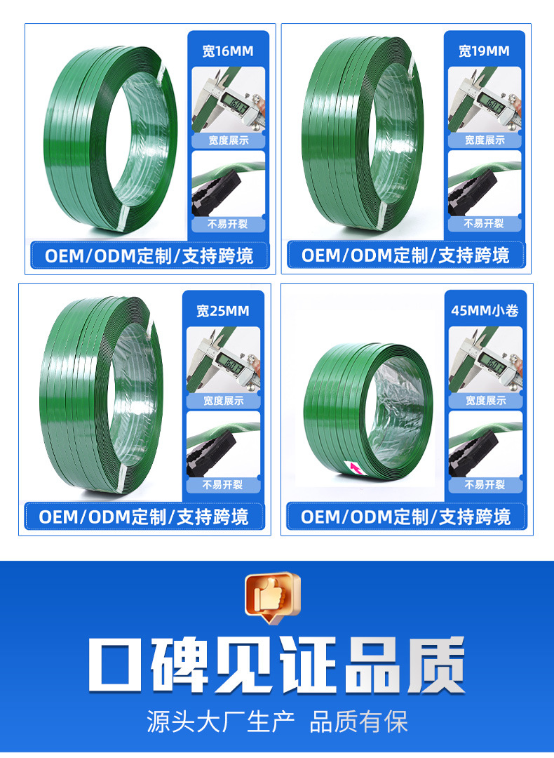 Пластиковая стальная упаковочная лента для логистики, зеленая термоплавкая лента для упаковки PET, ручная упаковка 1608, оптовая продажа пластиковой стальной упаковочной ленты